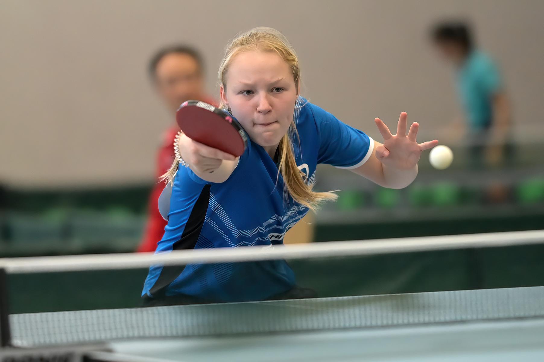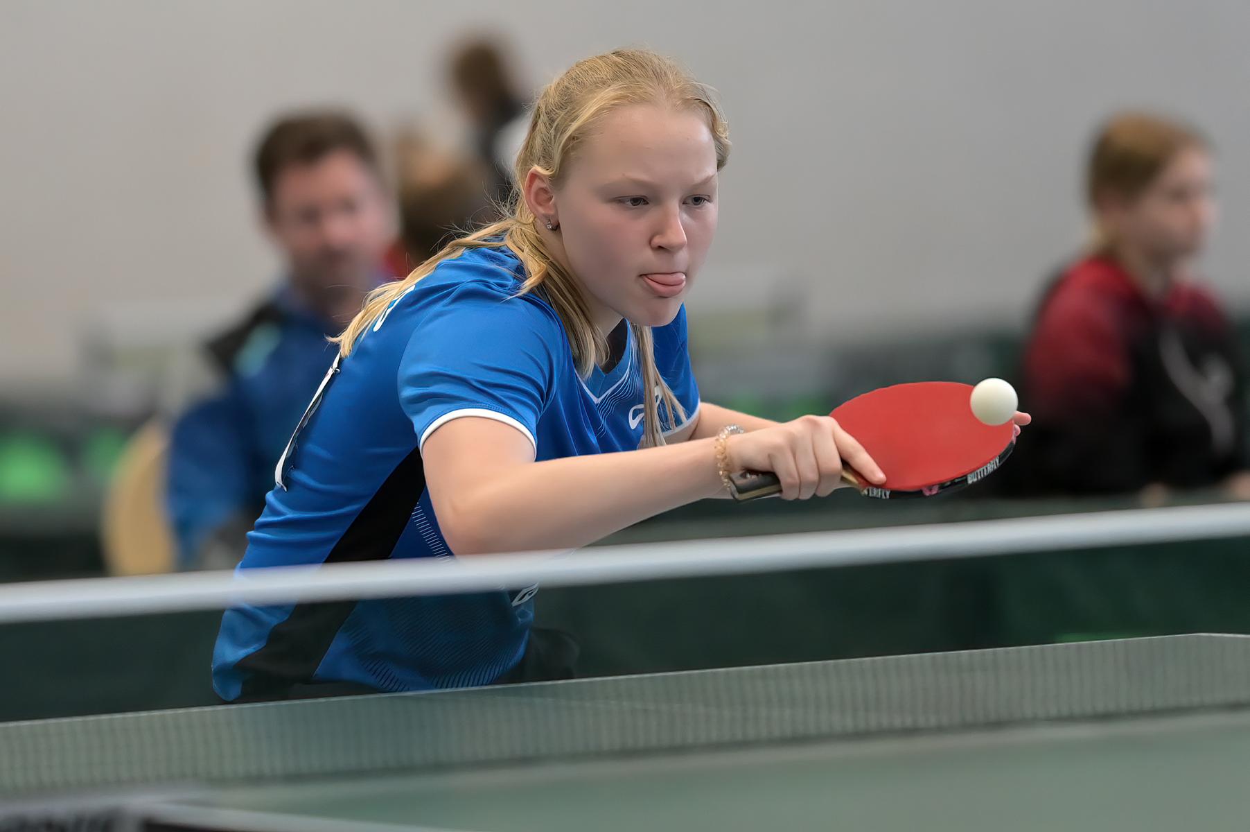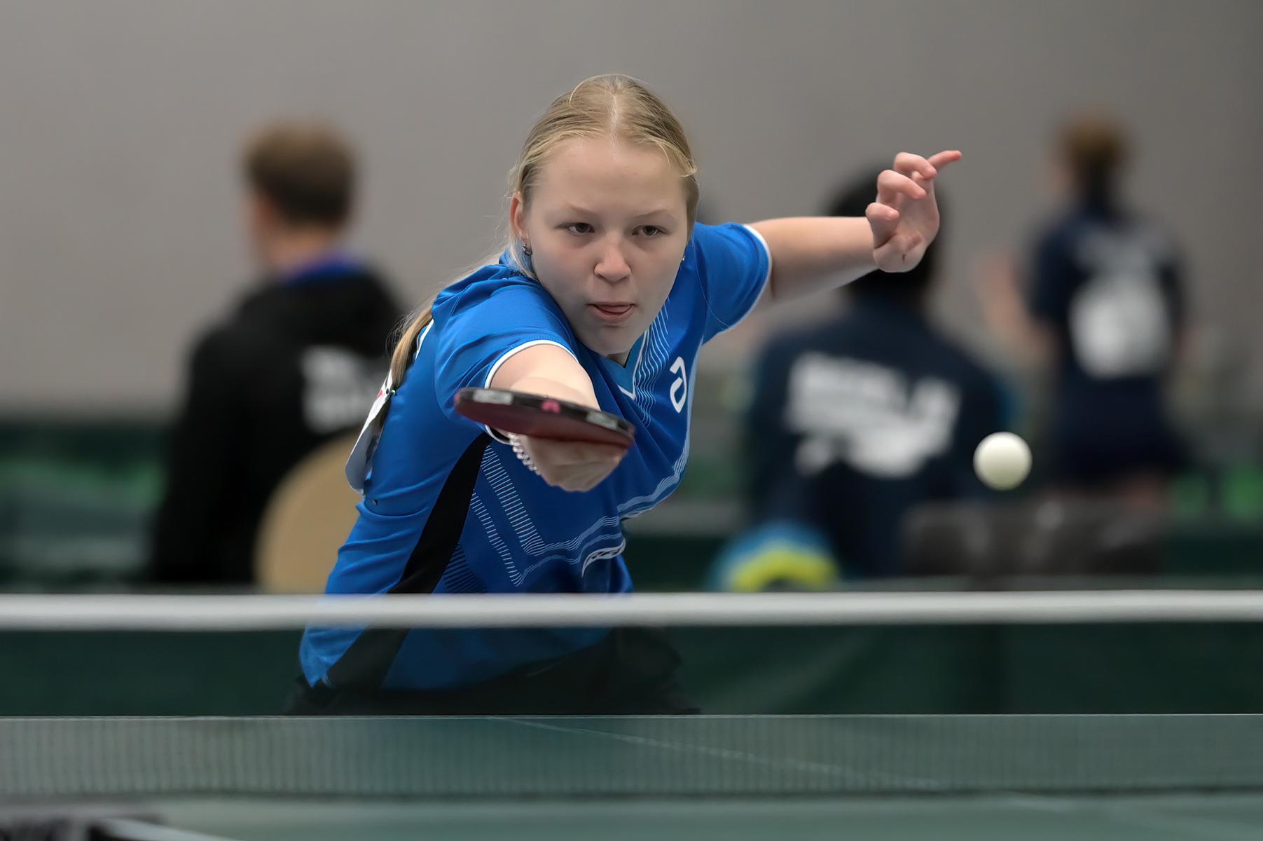 Sofiia erspielte sich am Samstag mit einer 4:3-Bilanz den vierten Platz in ihrer Vorrundengruppe. Am Sonntag hatte Sofiia dann noch vier Spiele. Das erste Spiel ging im Entscheidungssatz gegen Leni Rothfuß (Baden-Württemberg) verloren. Dann folgte ein deutlicher 3:0-Sieg gegen Nika Matsour (Berlin) und die Plätze 13-16 waren noch möglich. Leider fehlten am Ende die Kraft und die Ausdauer und es wurde der 16. Platz. Aber auch Sofiia kann mit ihrer erbrachten Leistung und Platzierung zufrieden sein.