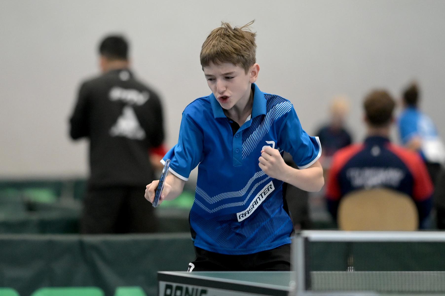 Für Matthias Jax war es auch eine gelungene Veranstaltung. Auch Matthias hatte eine harte 8er-Gruppe erwischt. Er konnte sich aber mit zwei Siegen gegen Koki Püschel (Sachsen) und Julius Werner (Bayern) den sechsten Platz in der Gruppe sichern. Am Sonntag war dann die Luft etwas raus und Matthias musste sich Timo Westphal (Bayern), Bence Sabo (Baden-Württemberg) und Koki Püschel (Sachsen) geschlagen geben. Die letzten beiden Partien wurden im Entscheidungssatz entschieden und dementsprechend war es dann am Ende der Veranstaltung Platz 27/28 für Matthias. Aber spielerisch war es eine gute Leistung des Abwehrspielers.