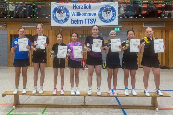 Bei den Mädchen blieben Sofiia Zhmudenko und Emily He (beide Borussia Düsseldorf) in der Vorrunde ungeschlagen. In der Endrunde setzte sich schließlich Sofiia gegen Emily durch und gewann die Rangliste – trotz einer Niederlage gegen Emilia Höller (DJK Franz-Sales-Haus) – dank eines Satzvorsprungs.