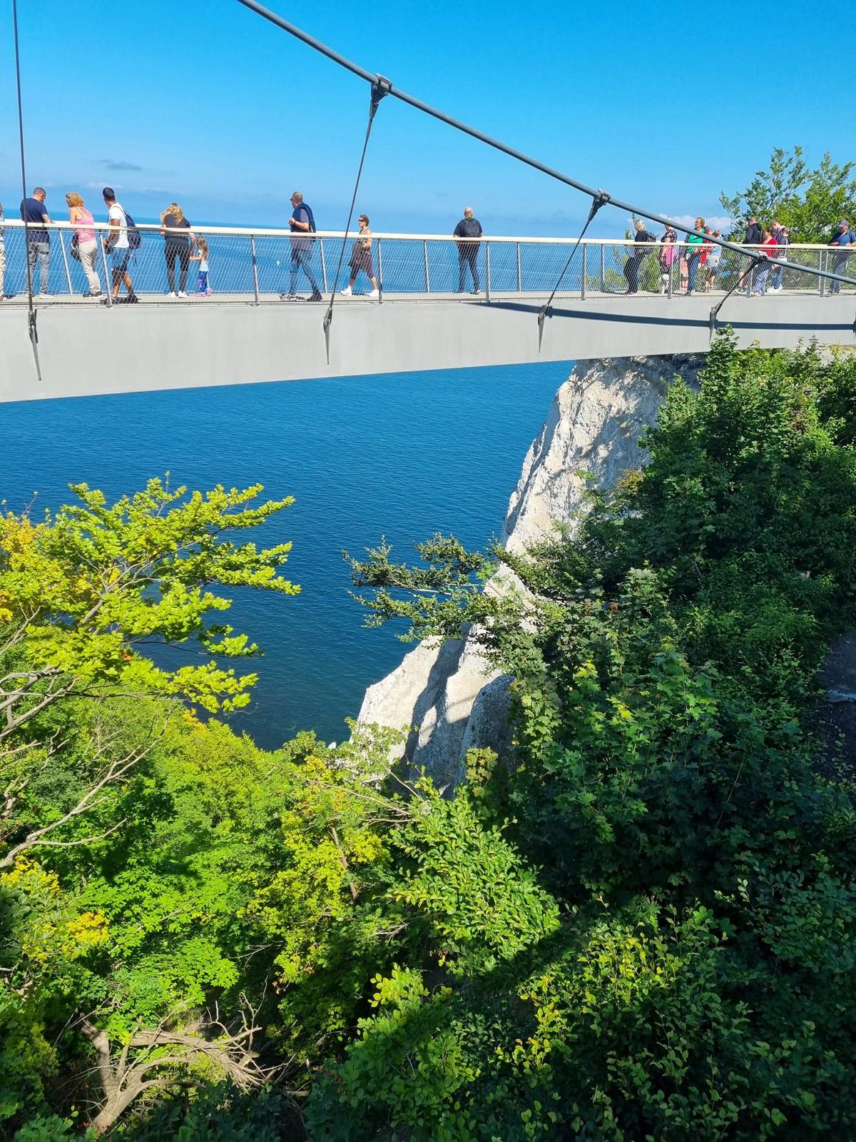 Auf Sand ging es abends weiter, und zwar mit einem Boule-Turnier. Danach wuchs bei den Teilnehmenden die Vorfreude auf den nächsten Tag. An diesem ging es nämlich zu den berühmten Kreidefelsen auf Rügen. Auf dem Weg durch den schönen Buchenwald wurden einige schöne Fotos gemacht, und erfreulicherweise war die Stimmung (Dank sei dem PUR-Hitmix) so gut, dass niemand sich an den steilen Felswänden verirrte – ein voller Erfolg. Oben angekommen wurden wir von James Bond und Schwester Marie-Clarens/Guinan durch die Geschichte Rügens und die Entstehung der Kreidefelsen geführt.