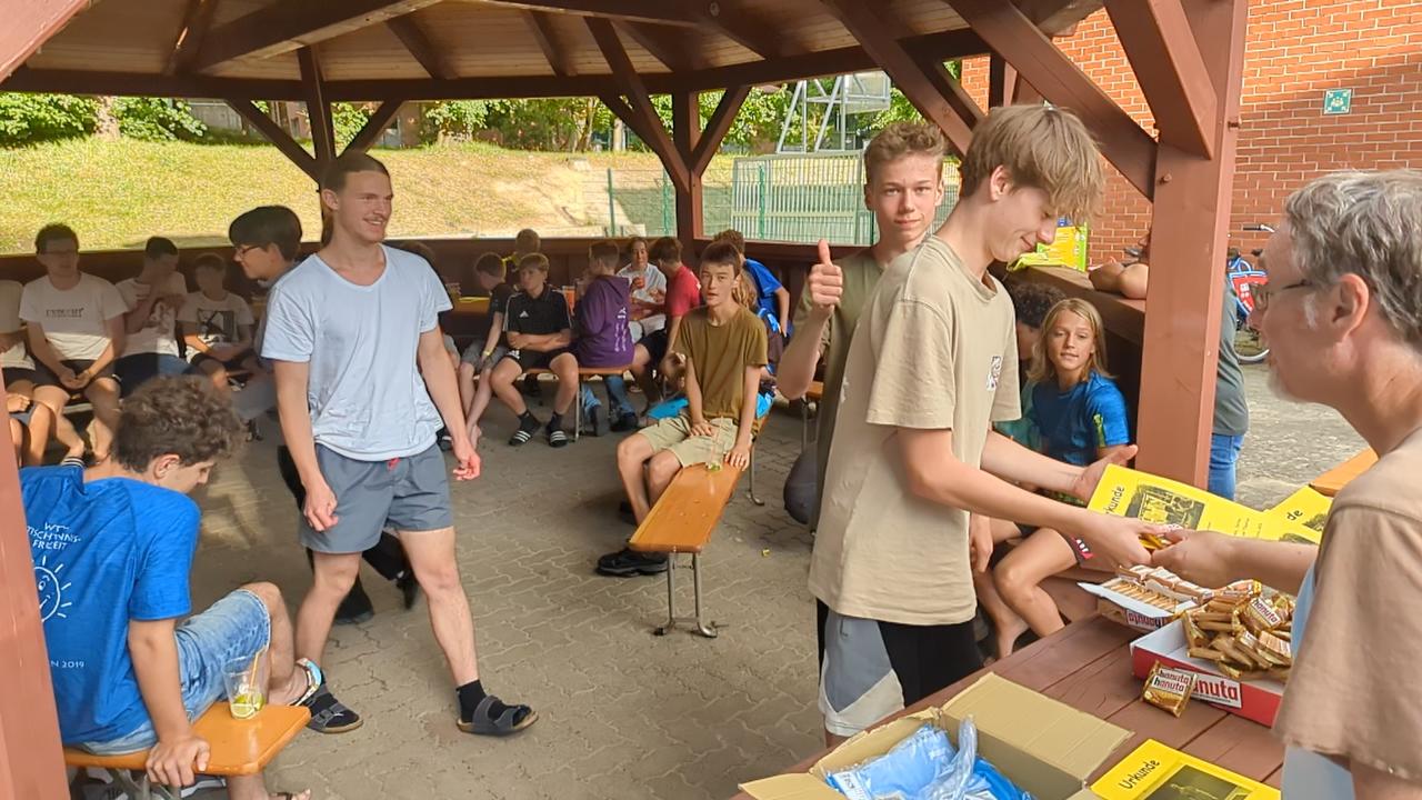 Also war es Zeit für das Jux-Tischtennis-Turnier in Form eines 7-Punkte-Ablösespiels. Einige Teilnehmende haben dabei offensichtlich das Wort „Jux“ nicht ganz verstanden. Zumindest zeigten sie nie geahnten Ehrgeiz und spielten so, als ob ihre weitere Teilnahme an der Ferienfreizeit davon abhinge.