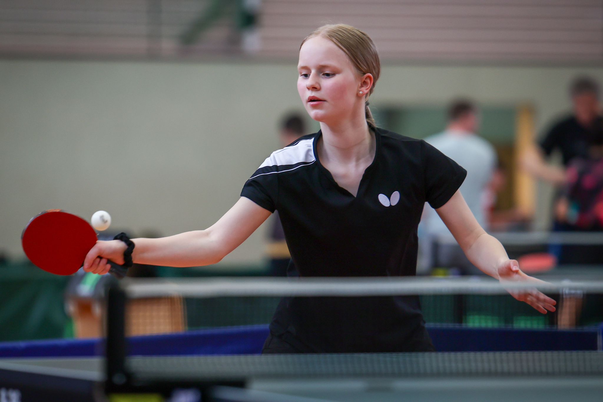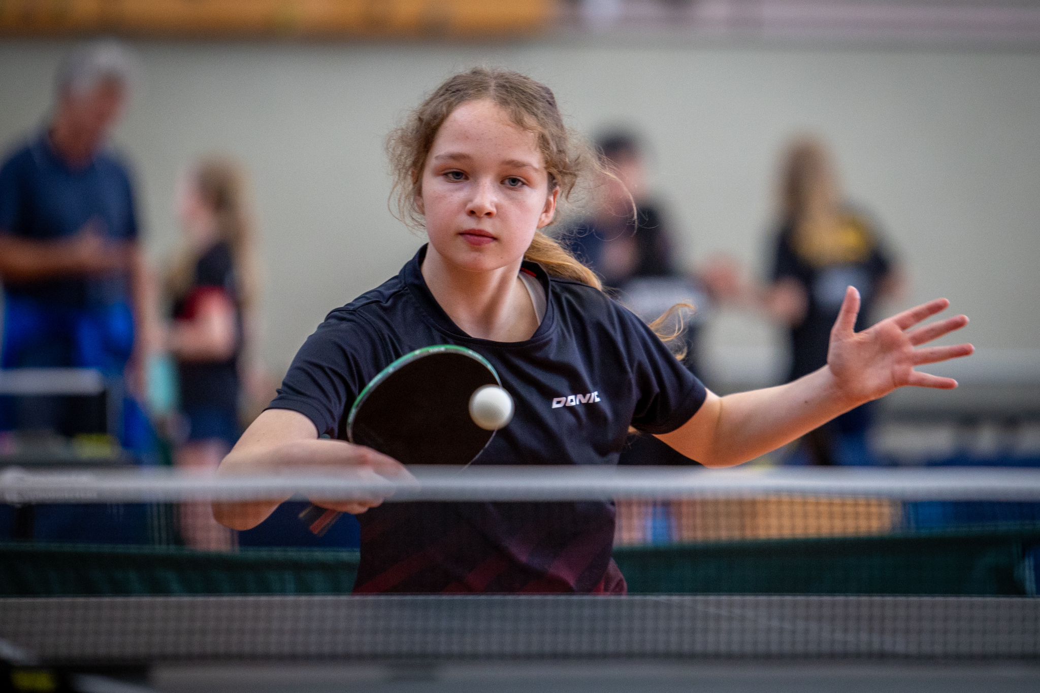 Bei den Mädchen wurden vier Sechsergruppen gespielt, und direkt in der ersten Runde sollte es eine große Überraschung geben. Die in der Gruppe A an sechs gesetzte Luisa Niebiossa (TTF Bönen) gewann mit 18:16 im fünften Satz gegen die Turnierfavoritin Sofiia Zhmudenko (Borussia Düsseldorf). Schlussendlich schaffte es Sofiia noch, die Gruppe zu gewinnen. Für Luisa sprang allerdings der zweite Platz in der Gruppe heraus. In Gruppe B setzte sich Sahra Osmani (TuS Haltern) im fünften Satz gegen die an eins gesetzte Milena Specka (TV Büren) durch und konnte sich so den Gruppensieg sichern. Die Gruppe C war besonders spannend. Am Ende hatten drei Mädchen eine Bilanz von 4:1 Spielen. Mit +9 Sätzen sicherte sich Sophia Biskoping (TV Fredeburg) den ersten Platz vor Emily He (Borussia Düsseldorf) und Juli Elisabeth Baranowsky (DJK Roland Rauxel). Beide hatten eine Satzbilanz von +8, Emily war allerdings 14 Bälle besser. Auch in der Gruppe D war es bis zuletzt spannend. In der letzten Runde trafen die beiden noch ungeschlagenen Viona Hadi (Borussia Düsseldorf) und Satu Loeliger (TTF Bönen) aufeinander. Auch hier sollte es dann wieder über die volle Distanz von fünf Sätzen gehen. Satu konnte diesen dann mit 11:8 für sich entscheiden und stand somit in der Finalrunde.