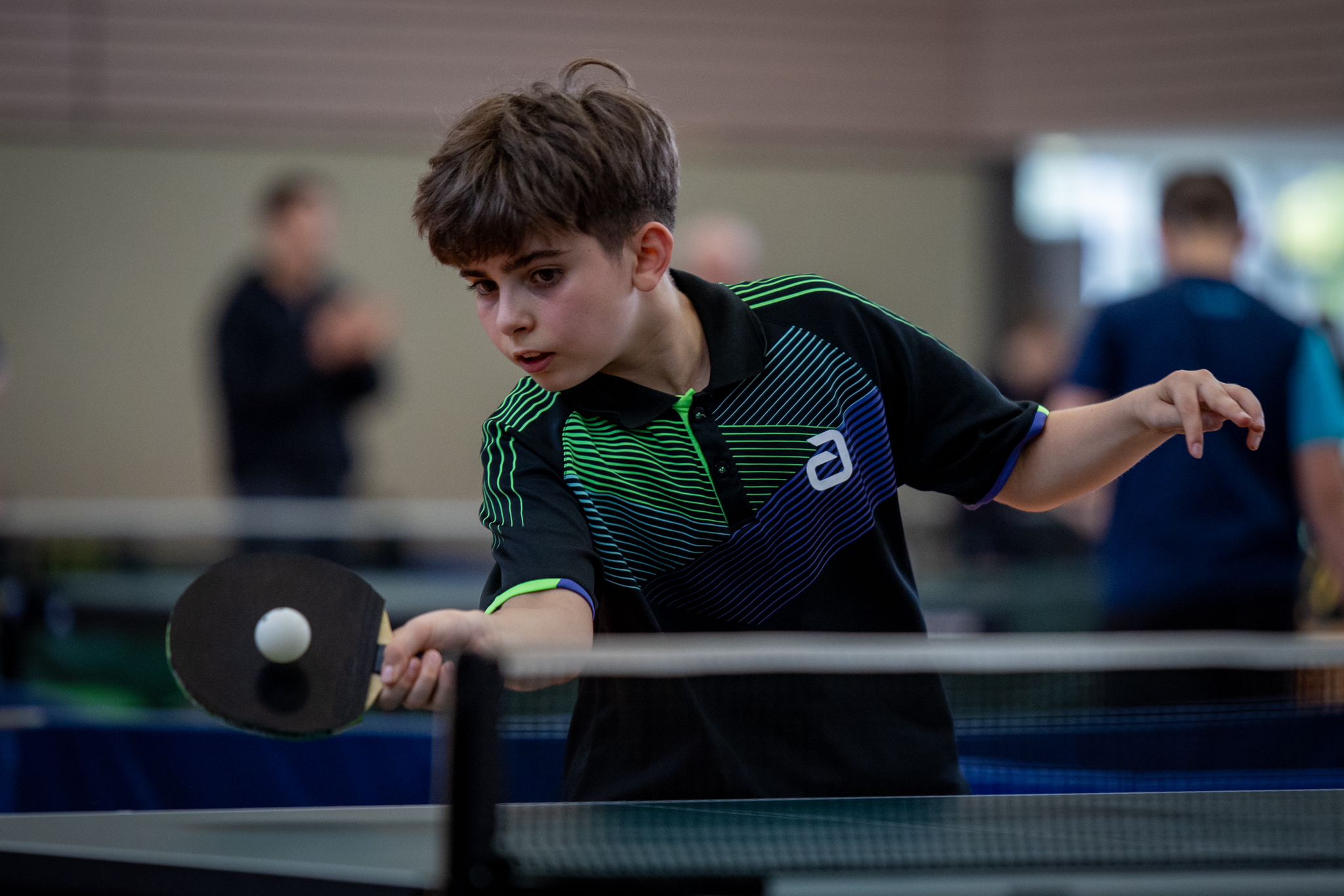 Die Jungen U15 spielten zunächst in acht Vierergruppen, wobei die ersten beiden anschließend um die Plätze 1-16, die dritten und vierten um die Plätze 17-32 spielten. Lediglich zwei Athleten, die nicht auf Position eins oder zwei gesetzt waren, gelang es, sich in ihren Gruppen für die obere Hälfte zu qualifizieren: Jan Krause (TTF Bönen) und Eitan Yordanov (TTV Letmathe). Umso überraschender war, dass man Eitan einige Zeit später im Halbfinale wiederfand. Dort lieferte er sich ein spannendes, fünf Sätze andauerndes Spiel gegen den Abwehrspieler Thomas Pohl (SV Westfalia Somborn). Schlussendlich setzte sich Thomas dann aber durch.
