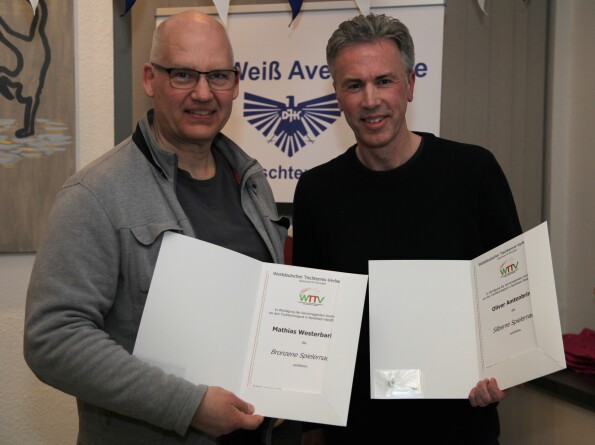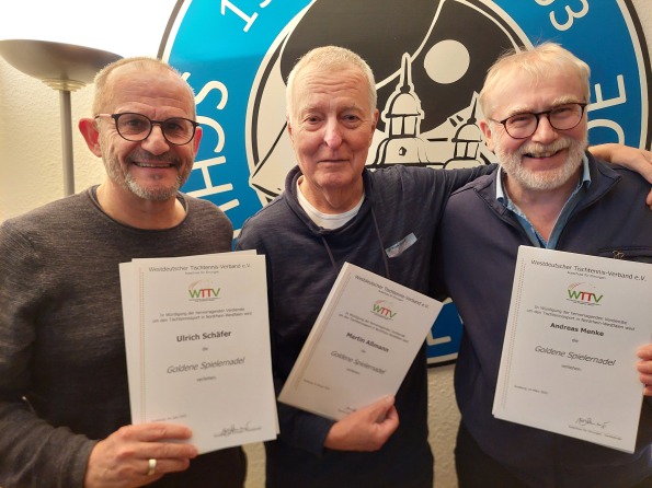 Beim TTSV Schloß Holte-Sende wurden Martin Aßmann, Andreas Menke und Ulrich Schäfer mit der Goldenen und Andre Rabsch mit der Silbernen Spielernadel geehrt, während bei der DJK BW Avenwedde Oliver Amtenbrink mit der Silbernen bzw. Karl-Heinz Teutrine und Mathias Westerbarkei mit der Bronzenen Spielernadel ausgezeichnet wurden.