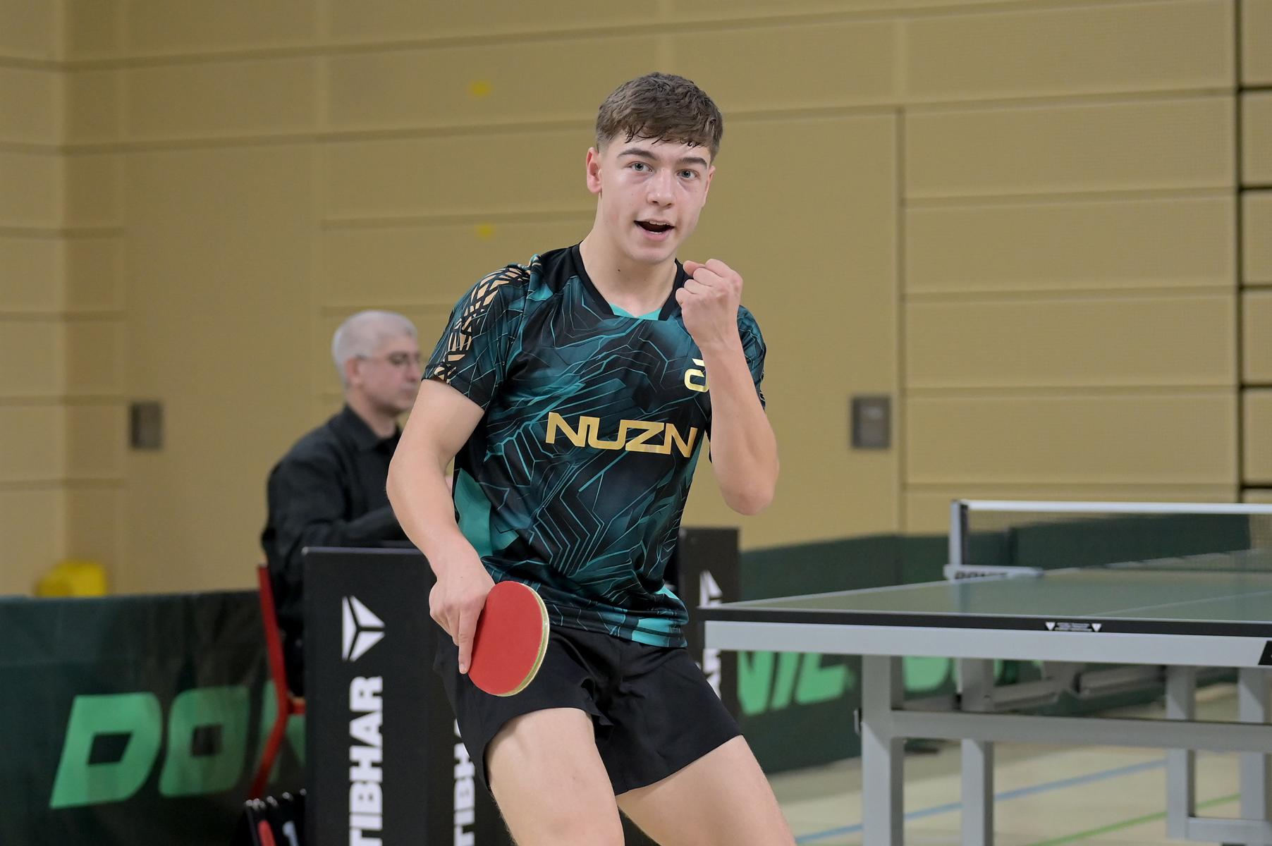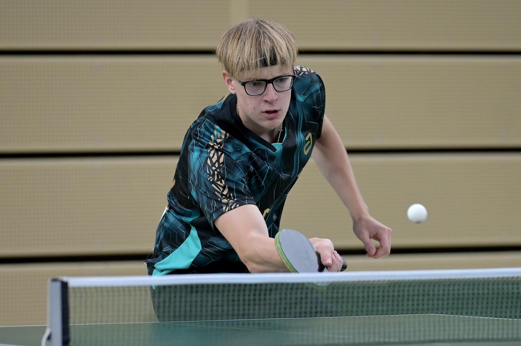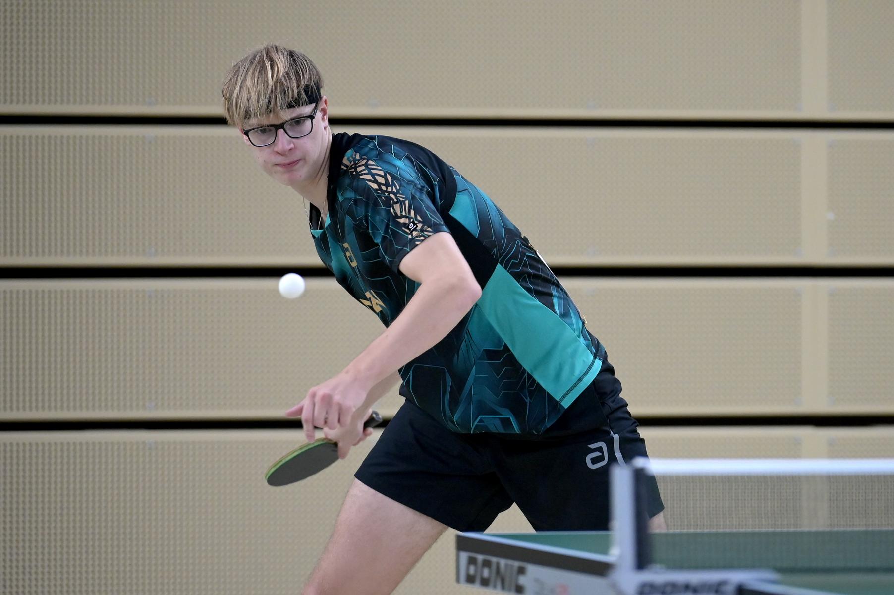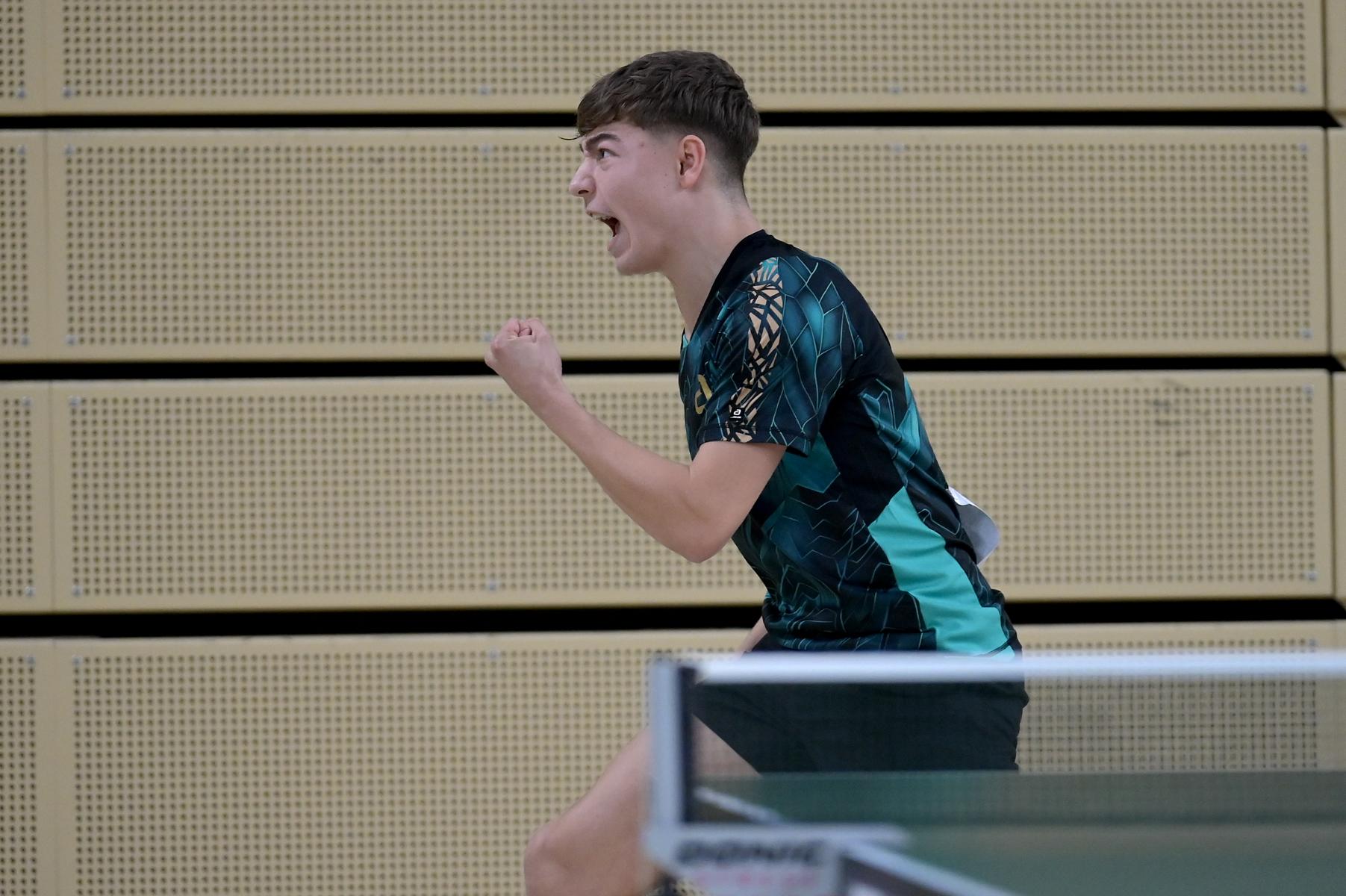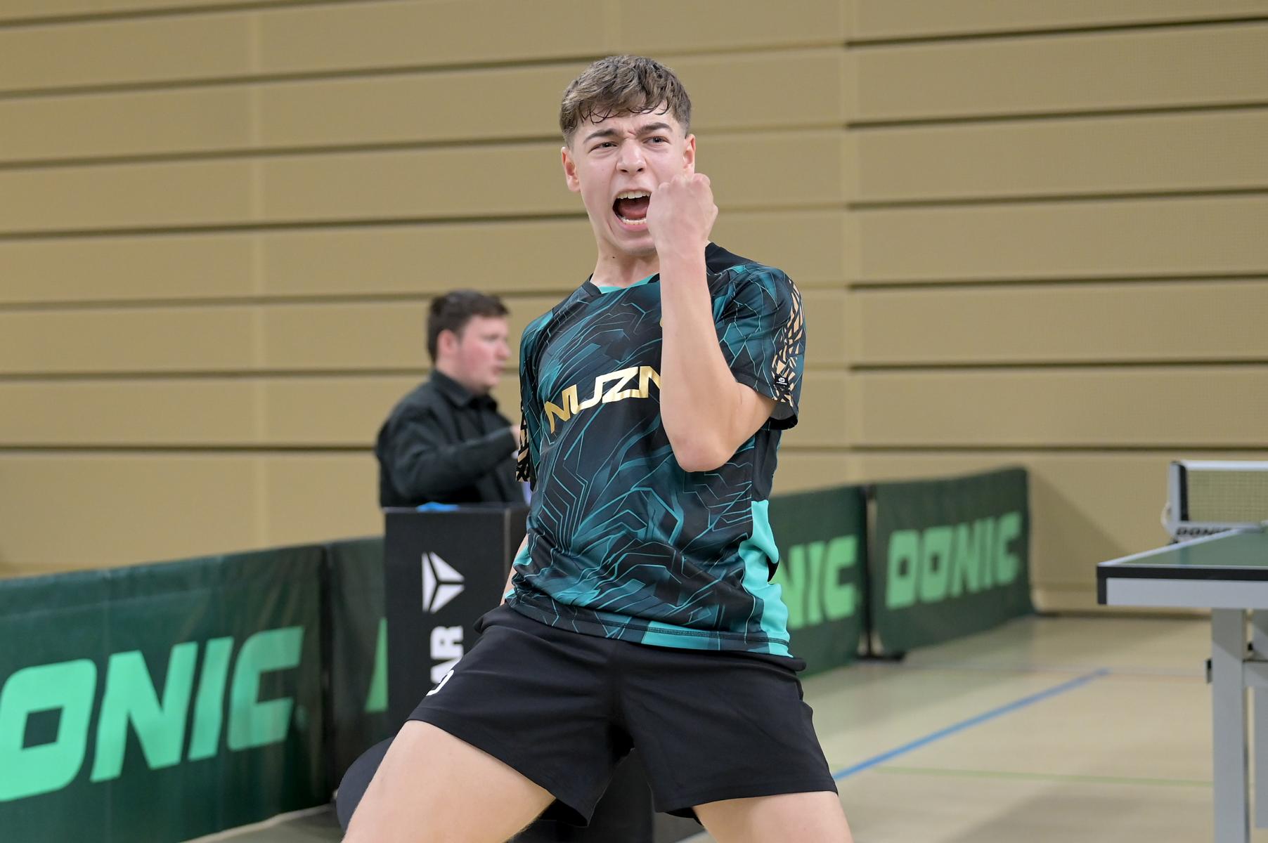 Jamal Oudriss erreichte Platz 14 – ein Ergebnis, das seinen spielerischen Leistungen an den zwei Tagen nicht ganz gerecht wird. Besonders in der Gruppenphase zeigte er hervorragenden Tischtennissport und kämpferische Leistungen und erreichte mit drei Siegen bei zwei Niederlagen Platz zwei. Im ersten Spiel der Zwischenrunde traf er auf Noah Hersel und hatte Chancen, das Spiel zu gewinnen.