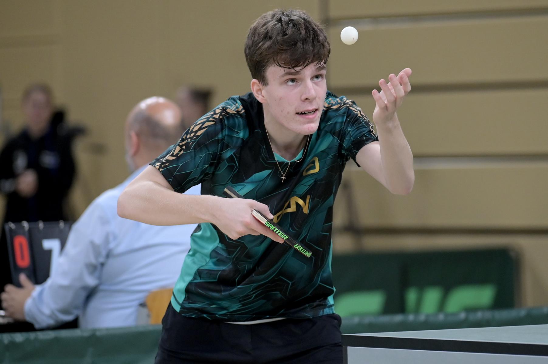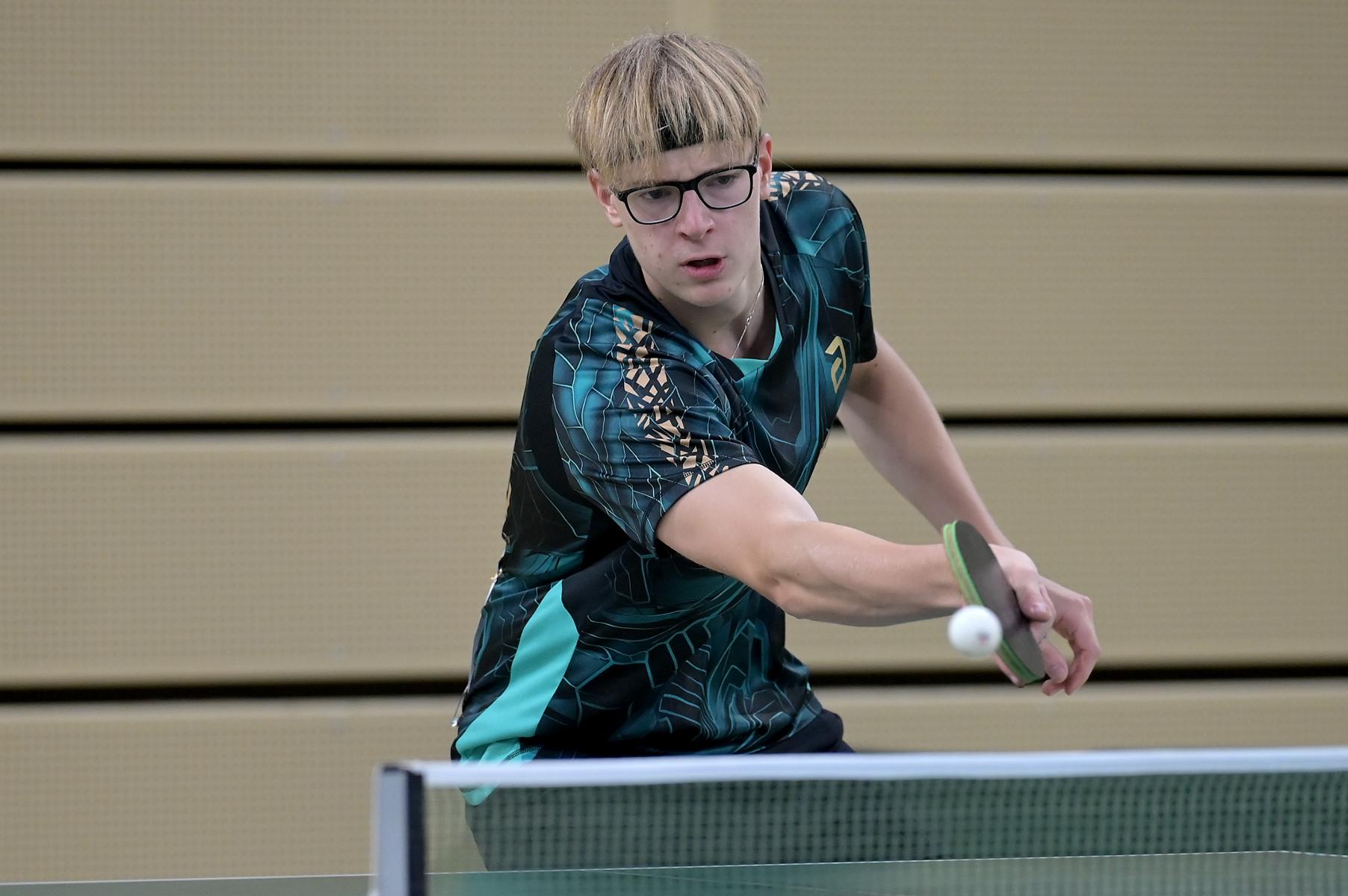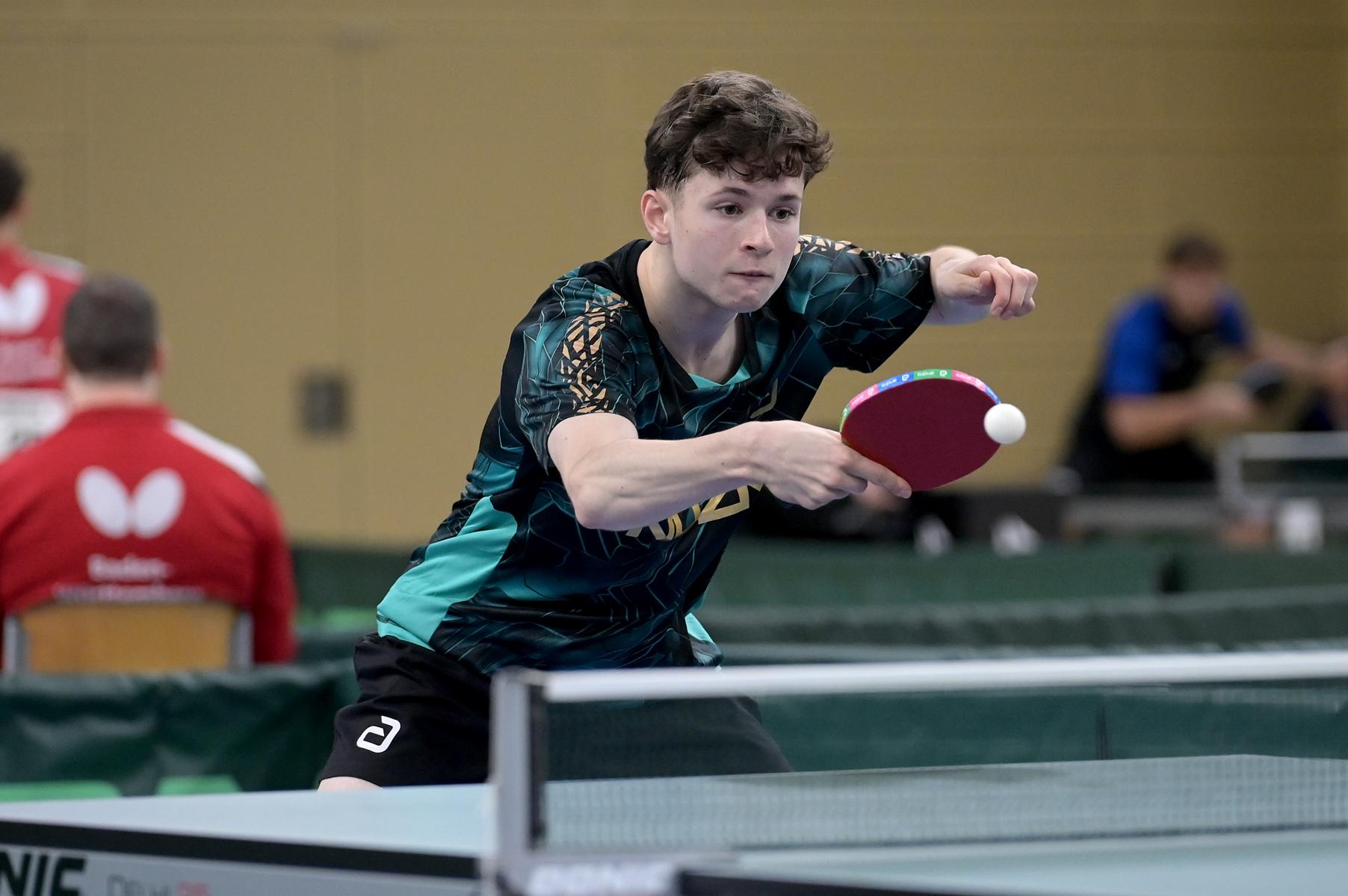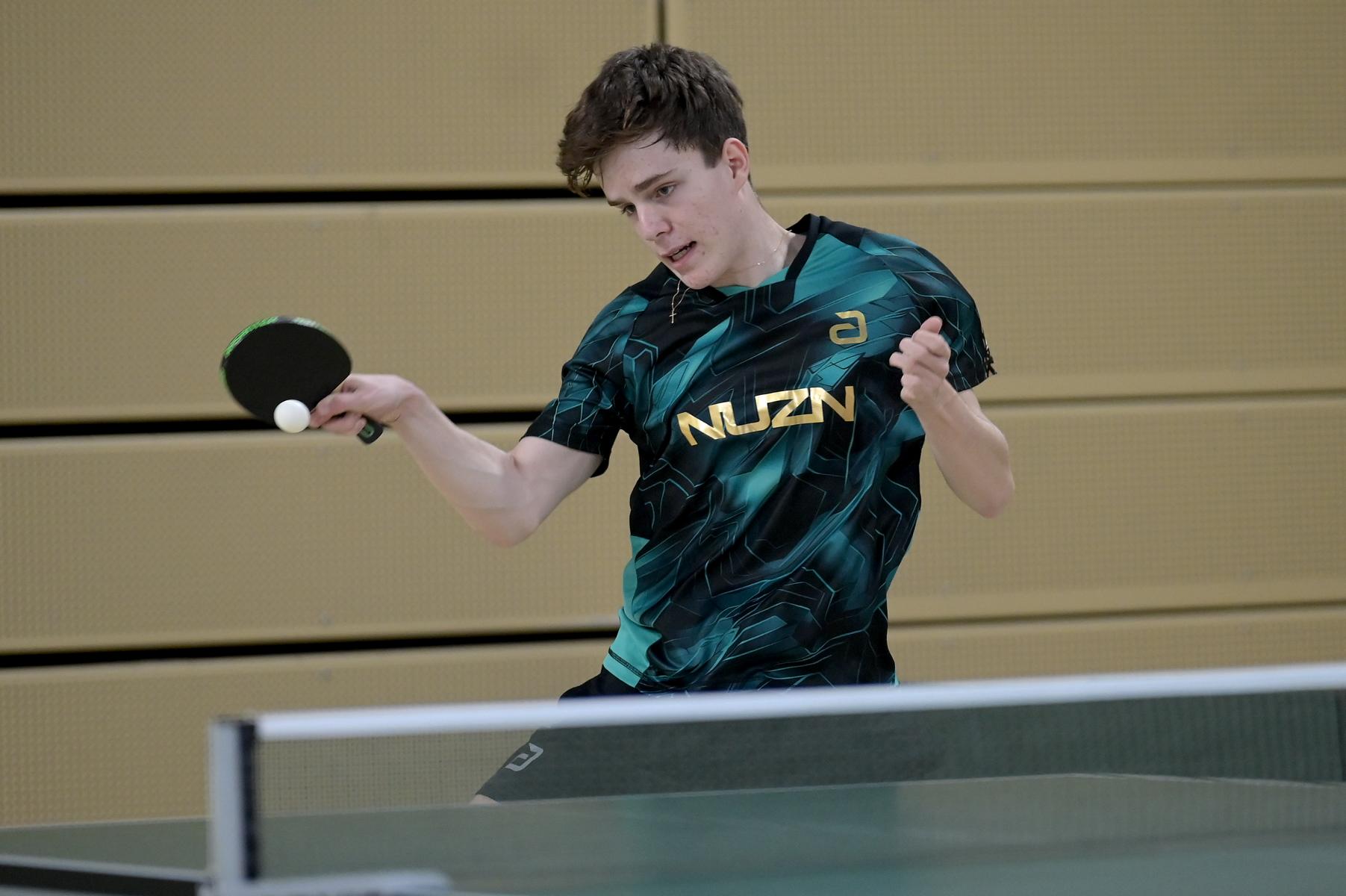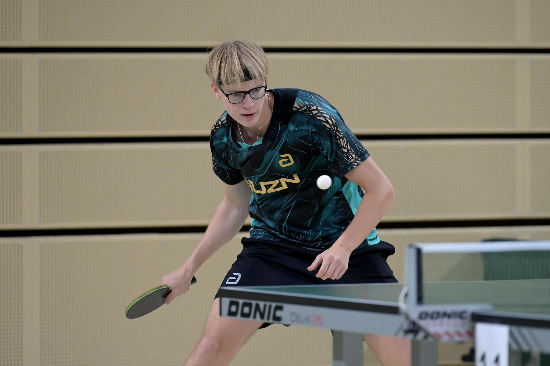 Jamal Oudriss erreichte Platz 14 – ein Ergebnis, das seinen spielerischen Leistungen an den zwei Tagen nicht ganz gerecht wird. Besonders in der Gruppenphase zeigte er hervorragenden Tischtennissport und kämpferische Leistungen und erreichte mit drei Siegen bei zwei Niederlagen Platz zwei. Im ersten Spiel der Zwischenrunde traf er auf Noah Hersel und hatte Chancen, das Spiel zu gewinnen.