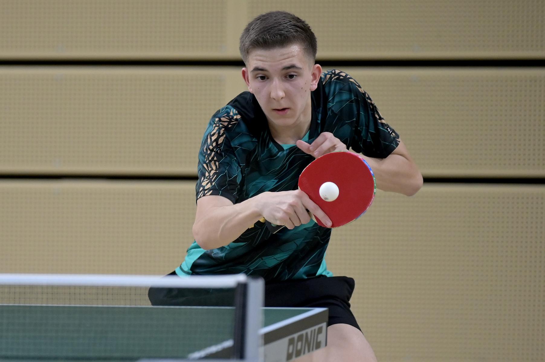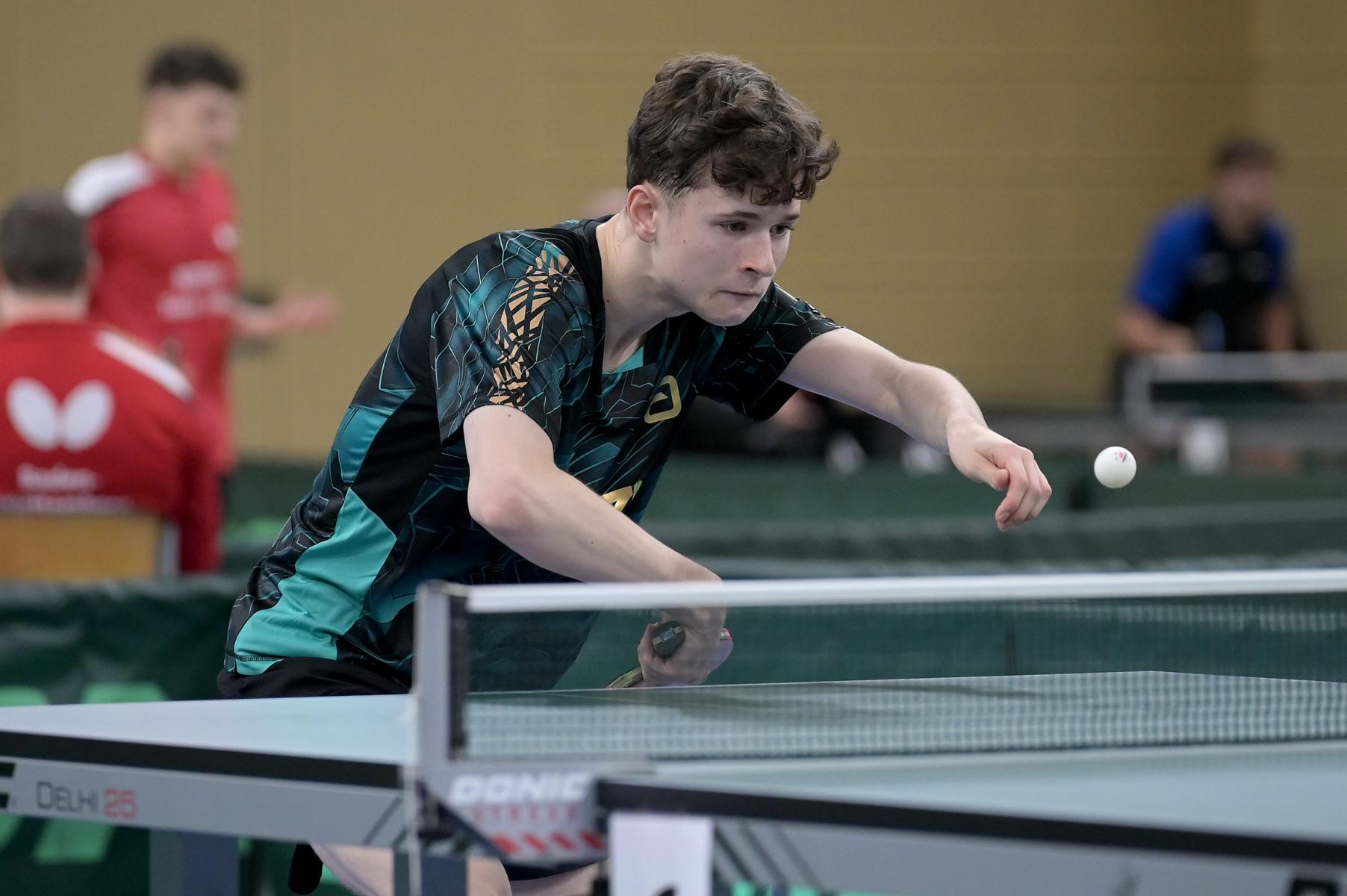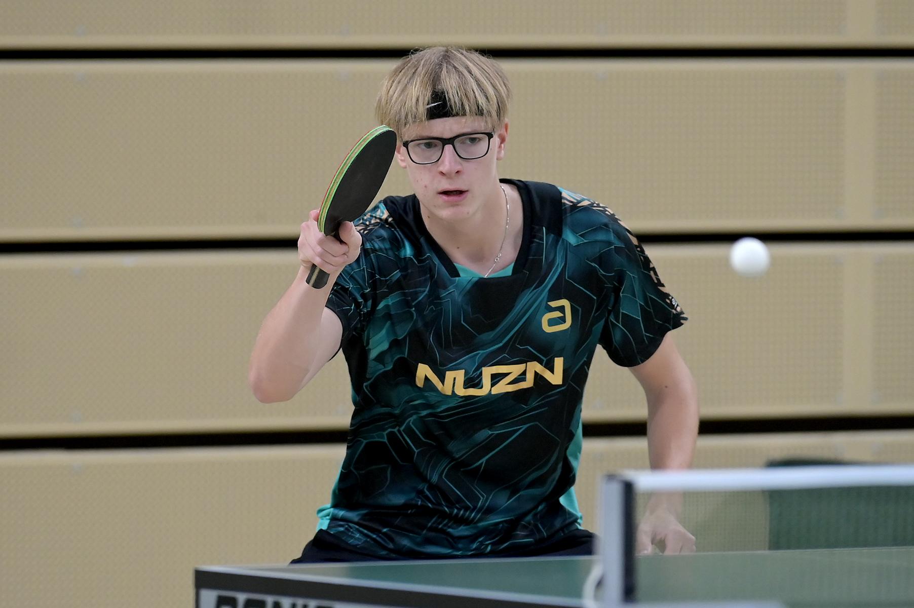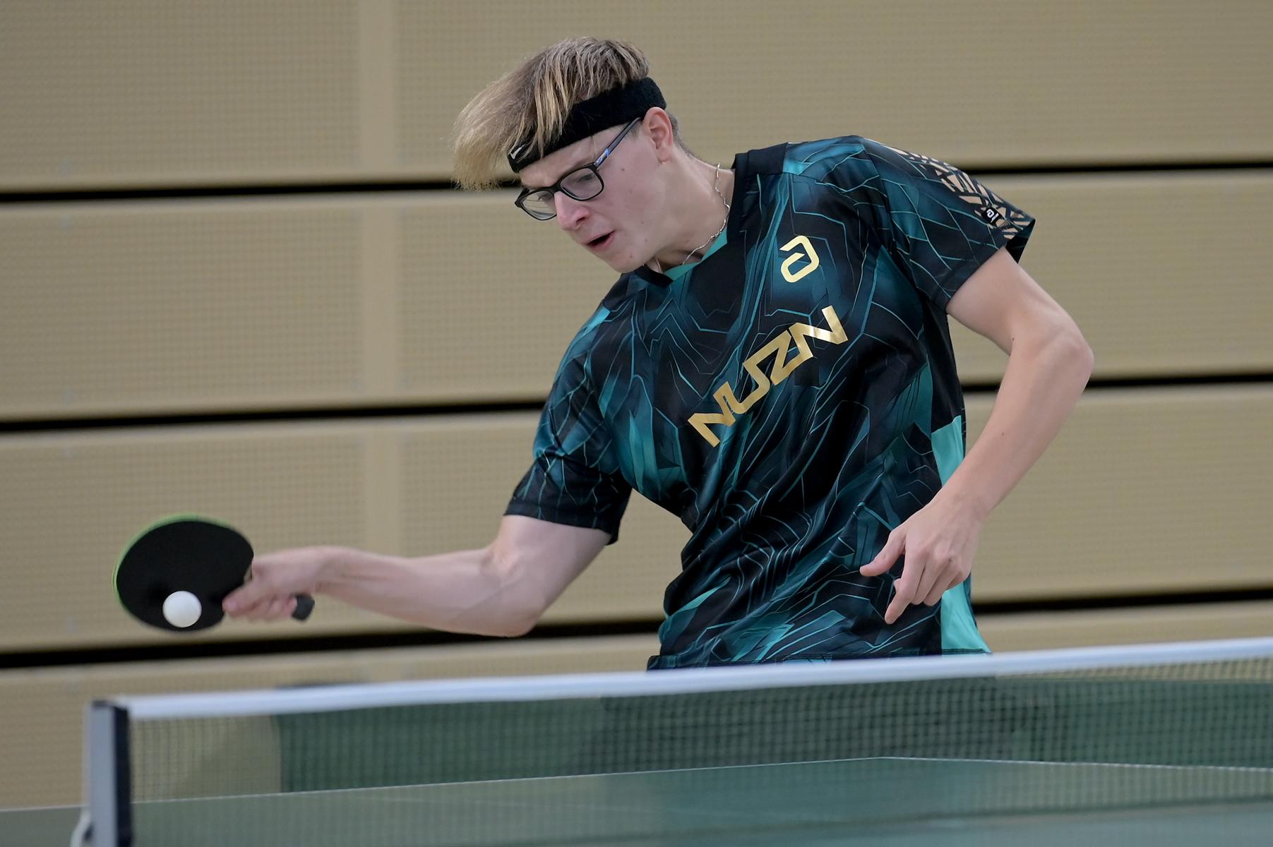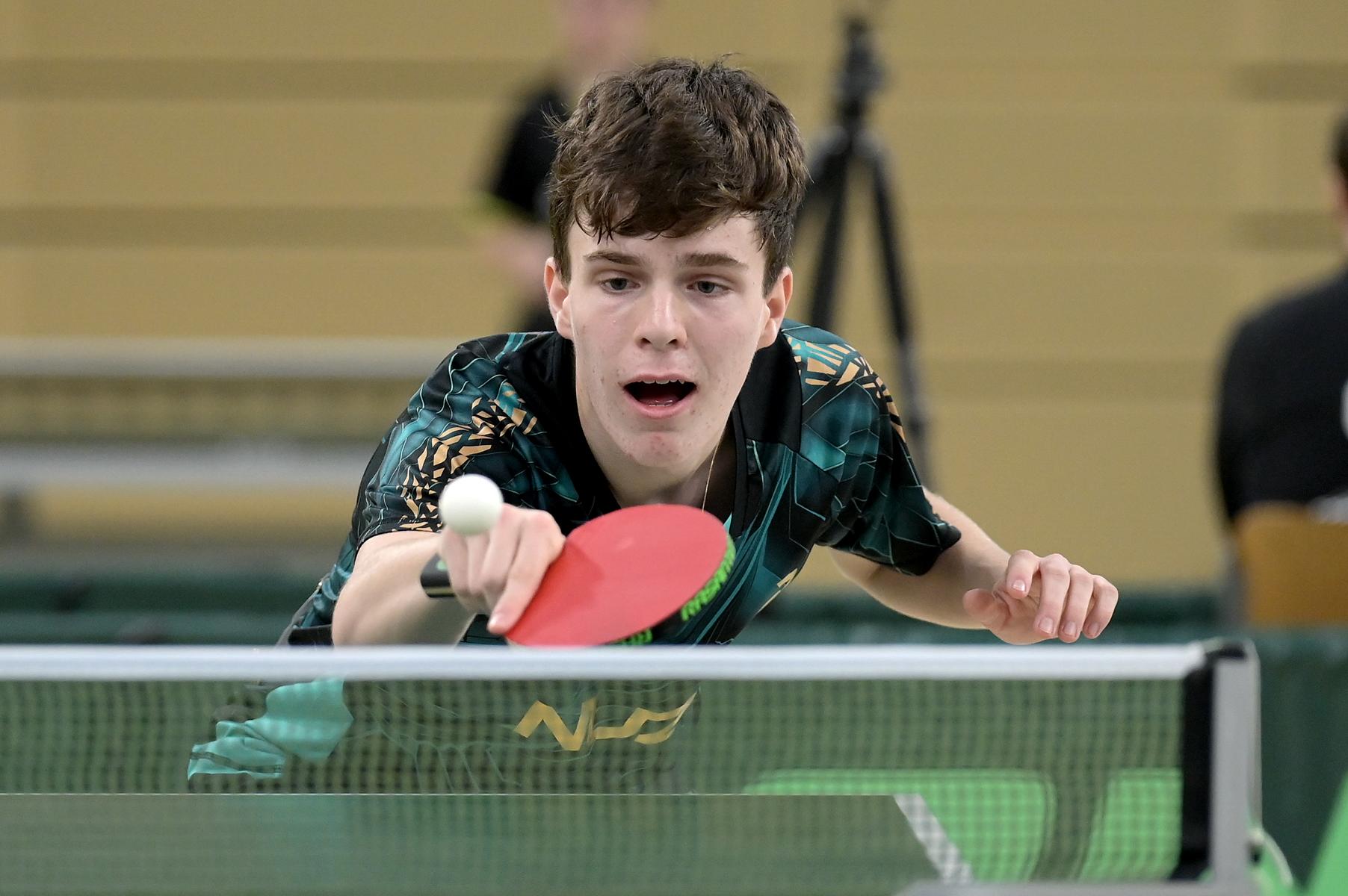 Jamal Oudriss erreichte Platz 14 – ein Ergebnis, das seinen spielerischen Leistungen an den zwei Tagen nicht ganz gerecht wird. Besonders in der Gruppenphase zeigte er hervorragenden Tischtennissport und kämpferische Leistungen und erreichte mit drei Siegen bei zwei Niederlagen Platz zwei. Im ersten Spiel der Zwischenrunde traf er auf Noah Hersel und hatte Chancen, das Spiel zu gewinnen.
