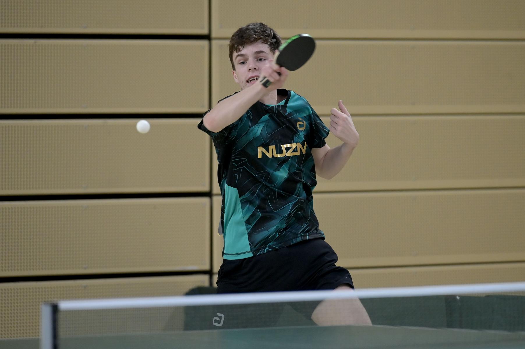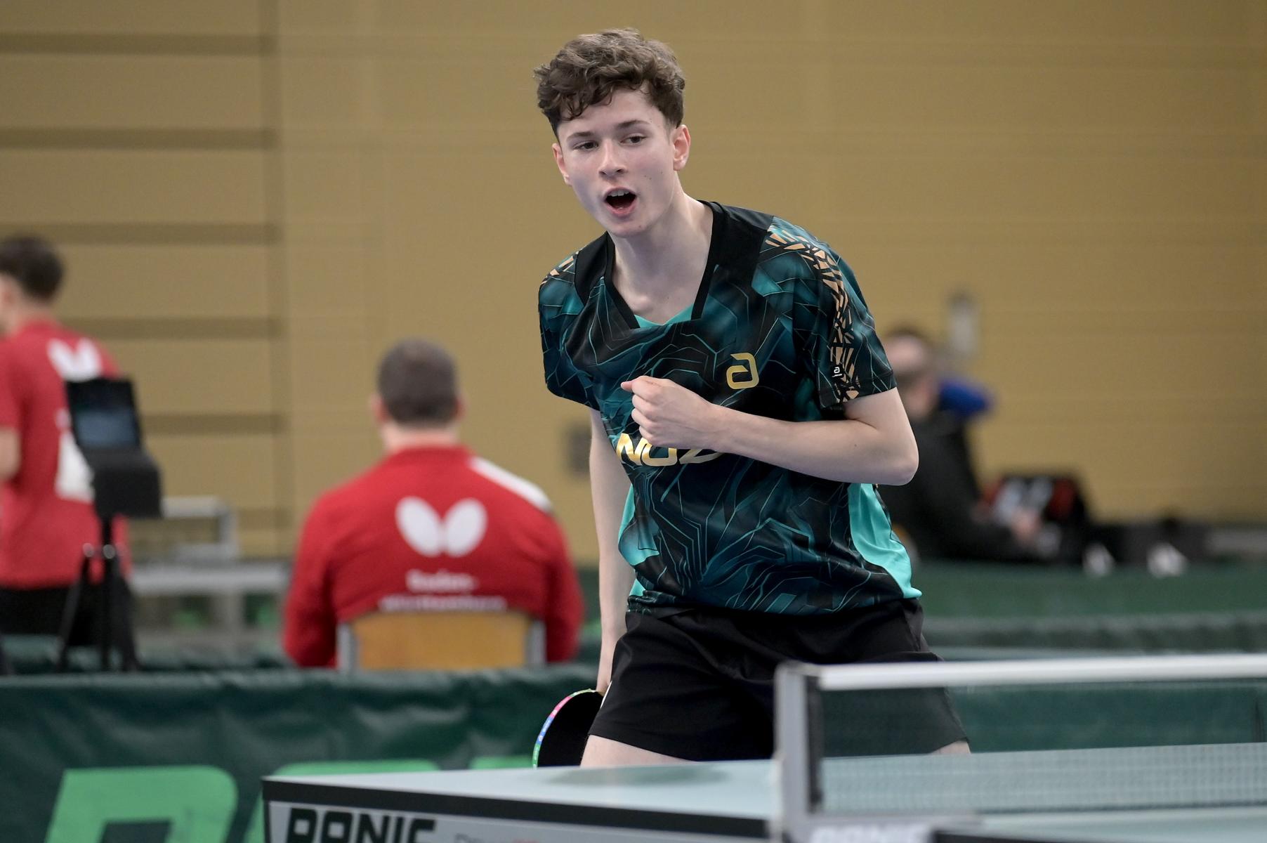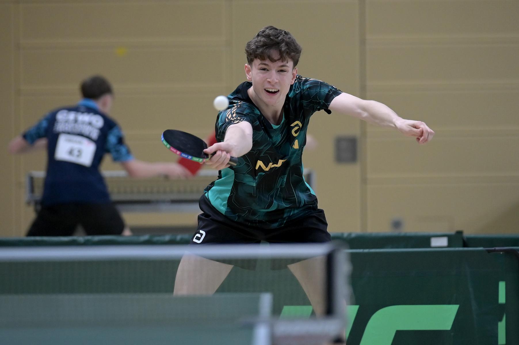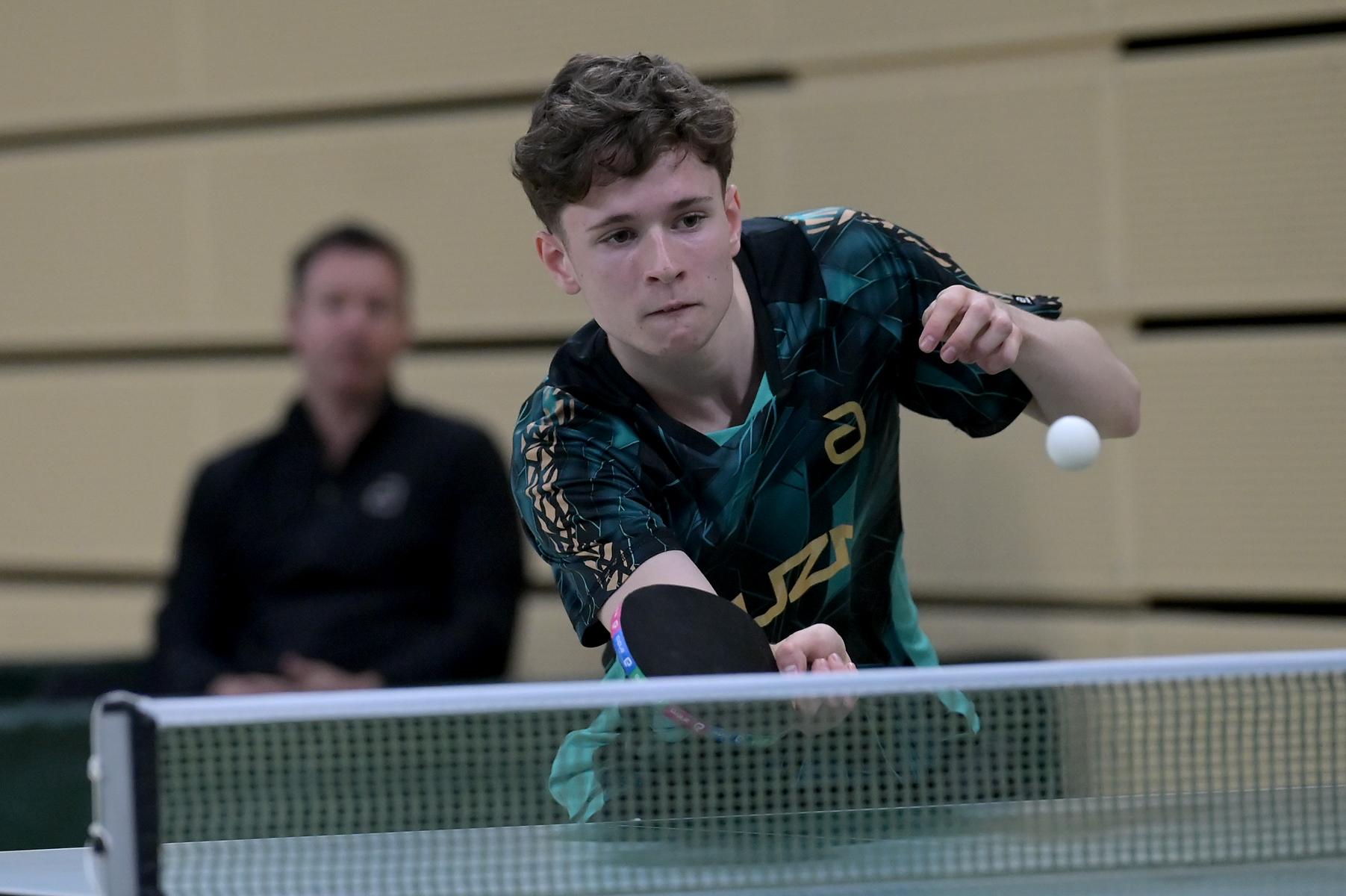 Jamal Oudriss erreichte Platz 14 – ein Ergebnis, das seinen spielerischen Leistungen an den zwei Tagen nicht ganz gerecht wird. Besonders in der Gruppenphase zeigte er hervorragenden Tischtennissport und kämpferische Leistungen und erreichte mit drei Siegen bei zwei Niederlagen Platz zwei. Im ersten Spiel der Zwischenrunde traf er auf Noah Hersel und hatte Chancen, das Spiel zu gewinnen.