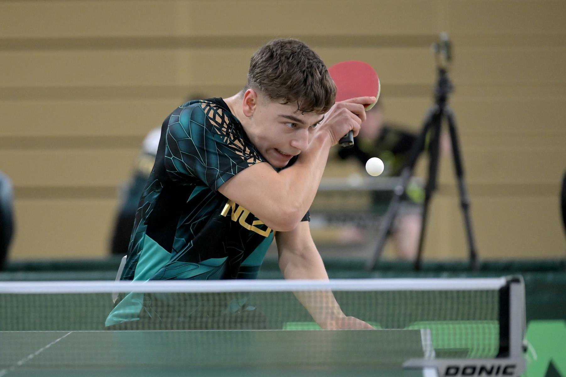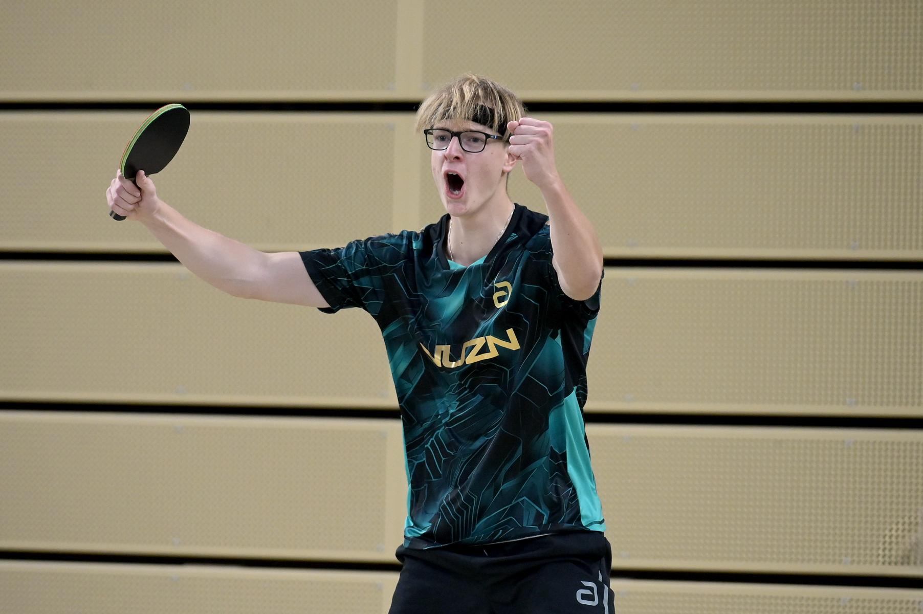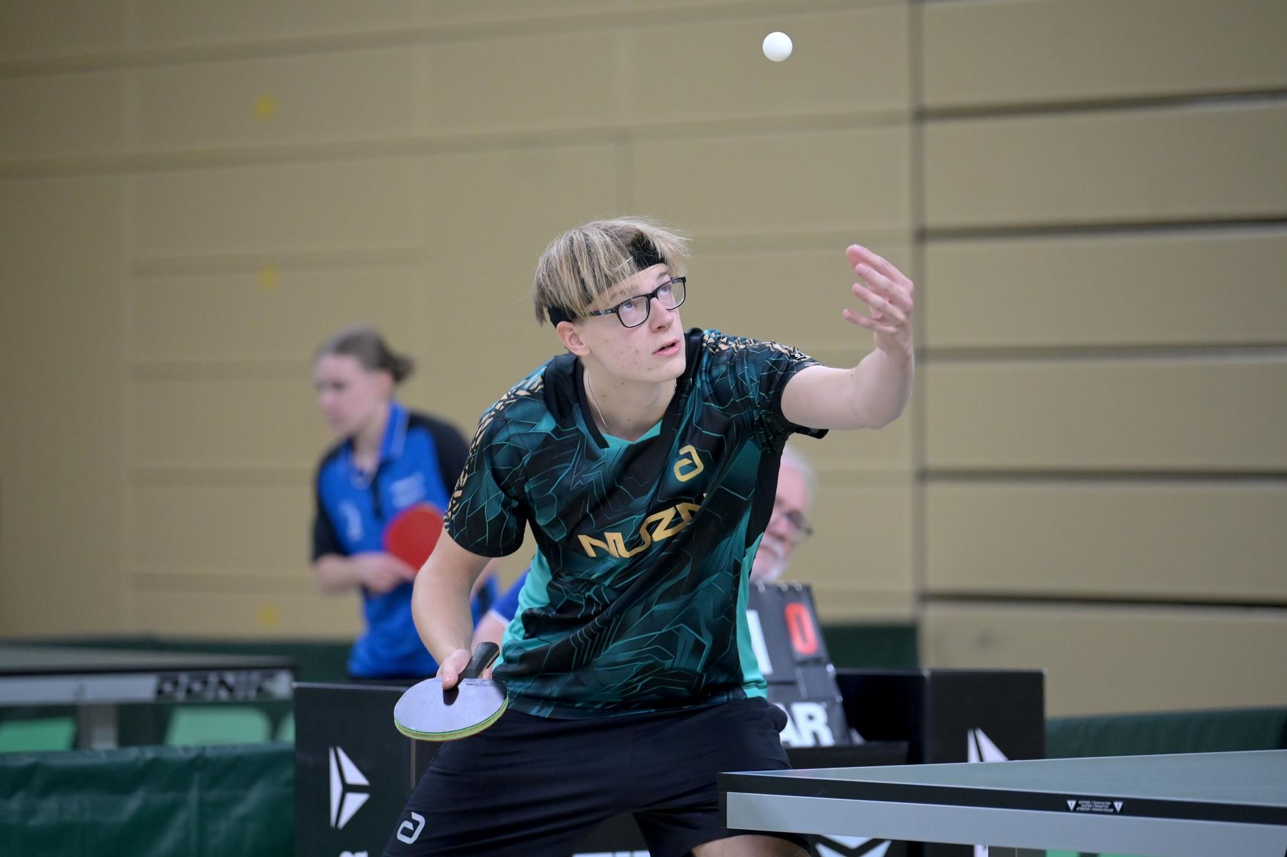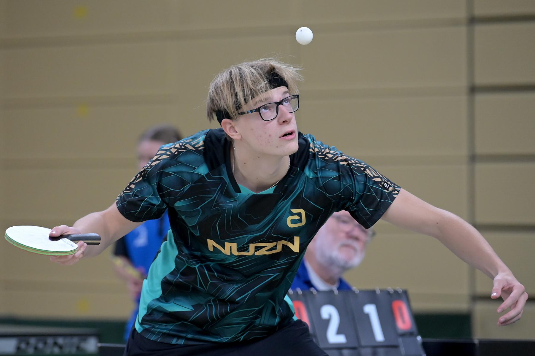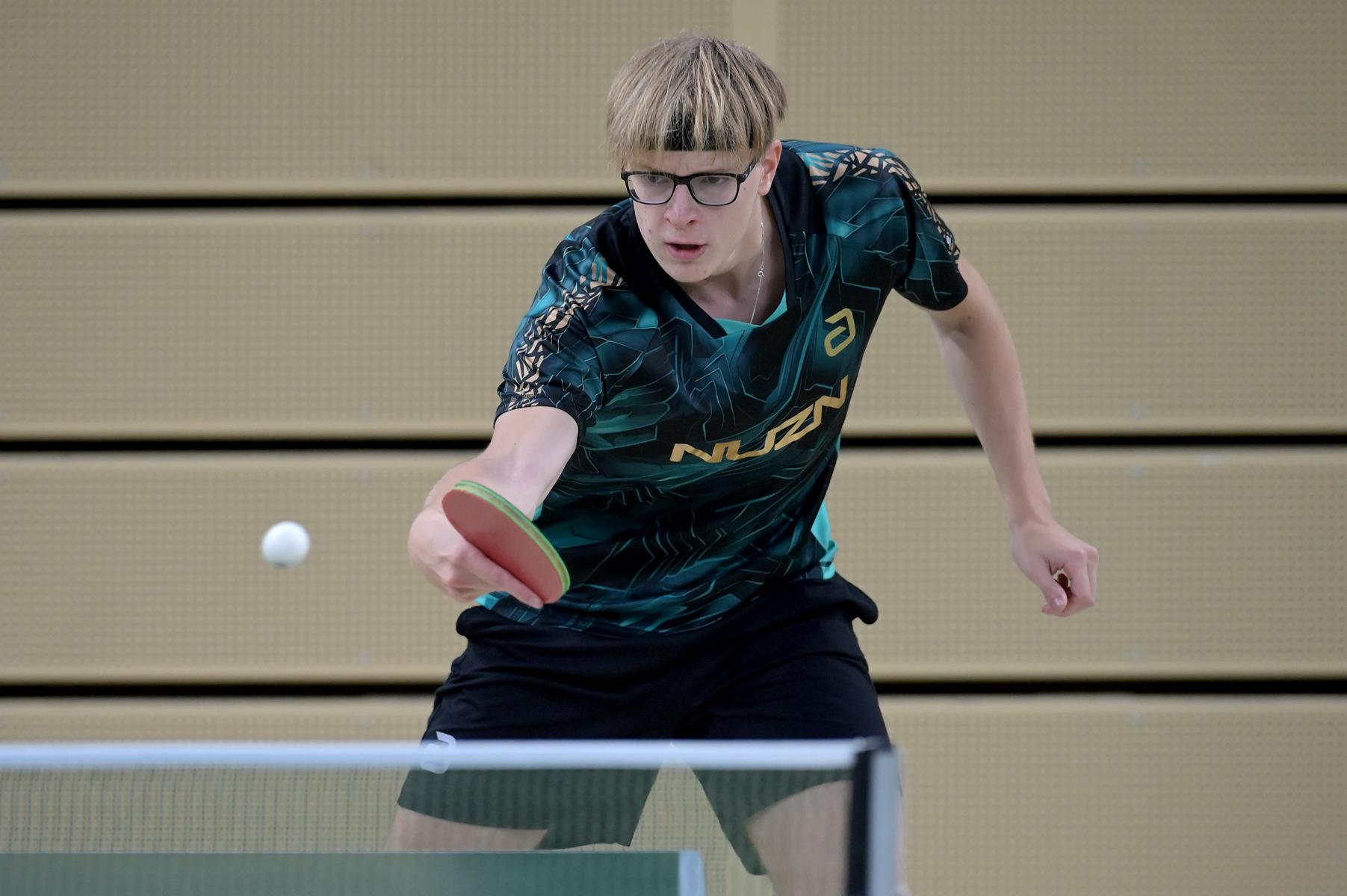 Jamal Oudriss erreichte Platz 14 – ein Ergebnis, das seinen spielerischen Leistungen an den zwei Tagen nicht ganz gerecht wird. Besonders in der Gruppenphase zeigte er hervorragenden Tischtennissport und kämpferische Leistungen und erreichte mit drei Siegen bei zwei Niederlagen Platz zwei. Im ersten Spiel der Zwischenrunde traf er auf Noah Hersel und hatte Chancen, das Spiel zu gewinnen.