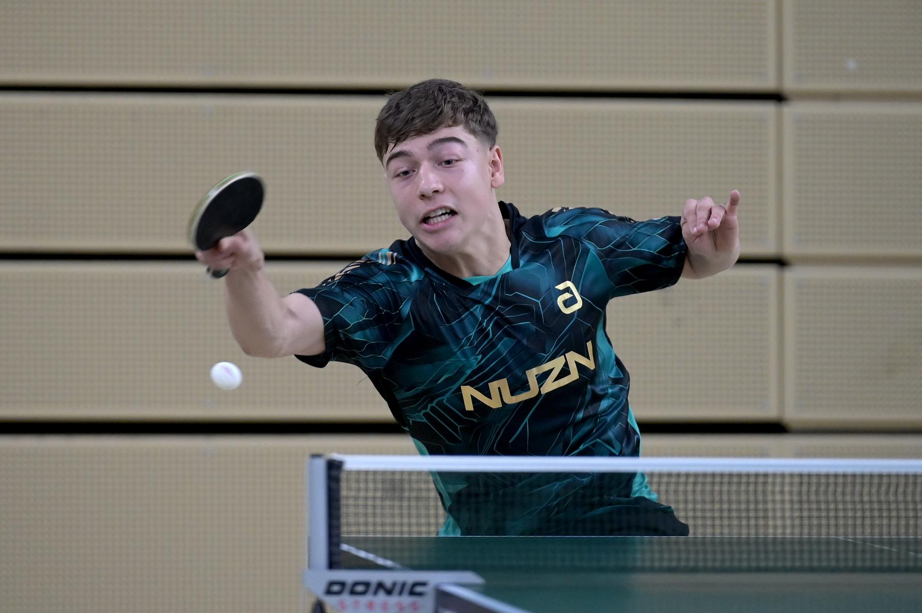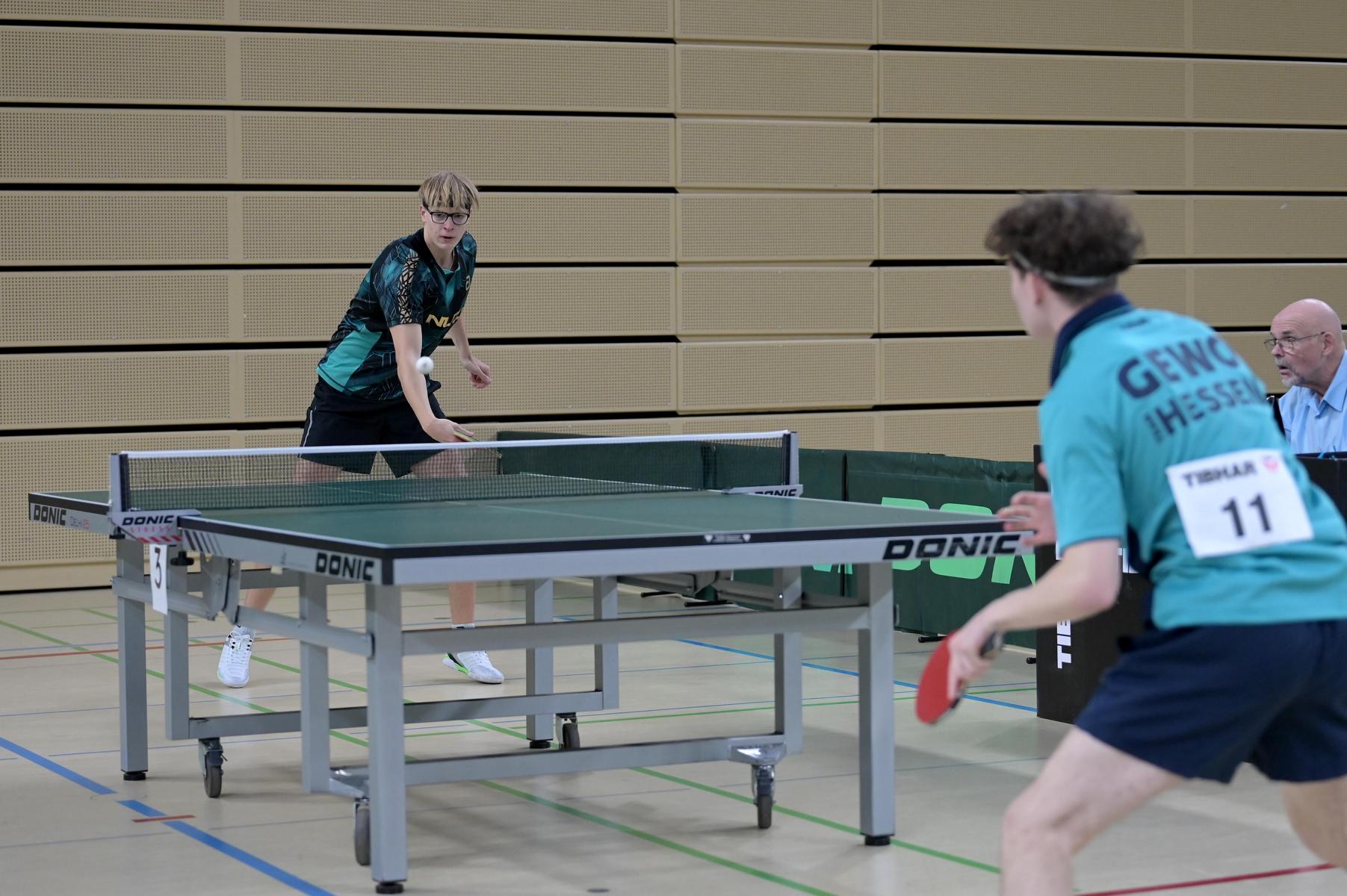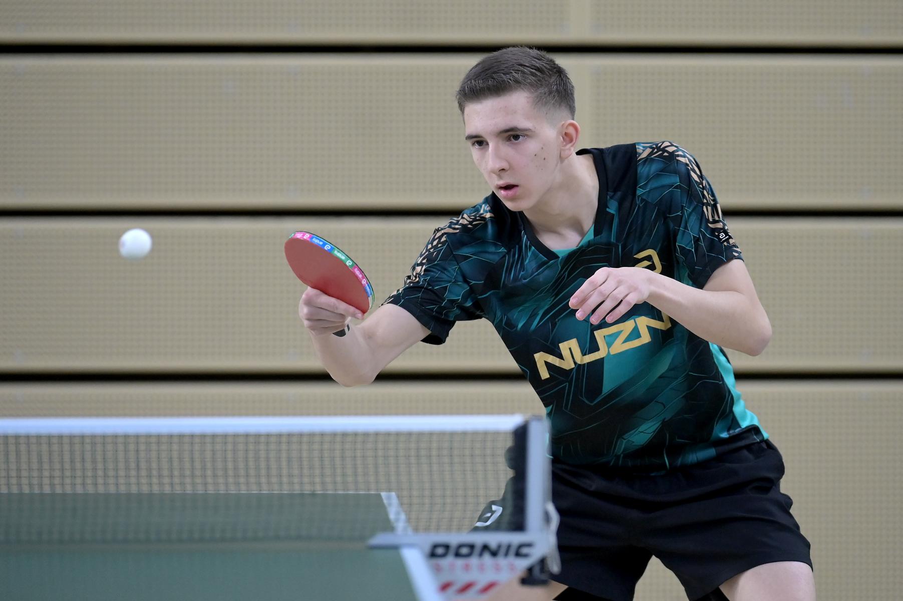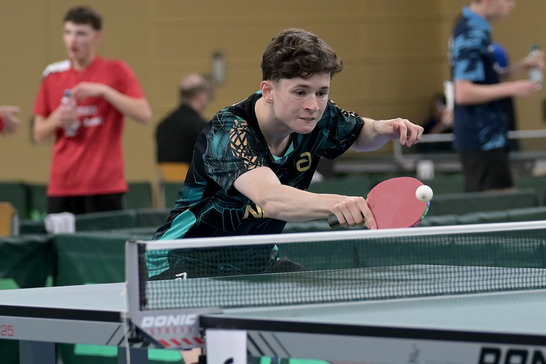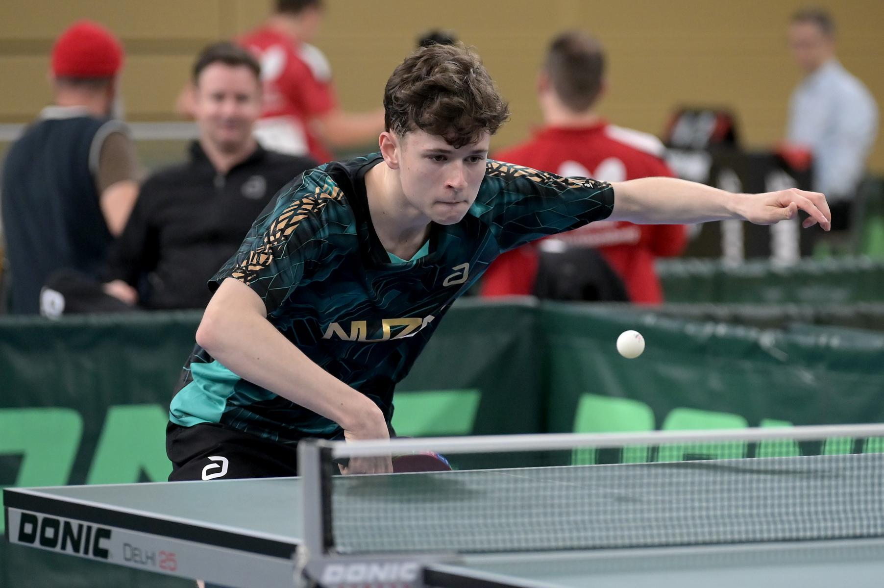 Jamal Oudriss erreichte Platz 14 – ein Ergebnis, das seinen spielerischen Leistungen an den zwei Tagen nicht ganz gerecht wird. Besonders in der Gruppenphase zeigte er hervorragenden Tischtennissport und kämpferische Leistungen und erreichte mit drei Siegen bei zwei Niederlagen Platz zwei. Im ersten Spiel der Zwischenrunde traf er auf Noah Hersel und hatte Chancen, das Spiel zu gewinnen.
