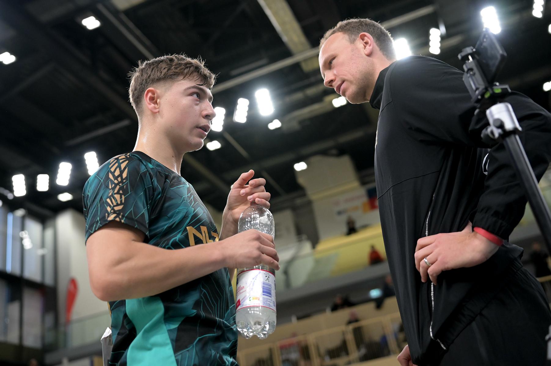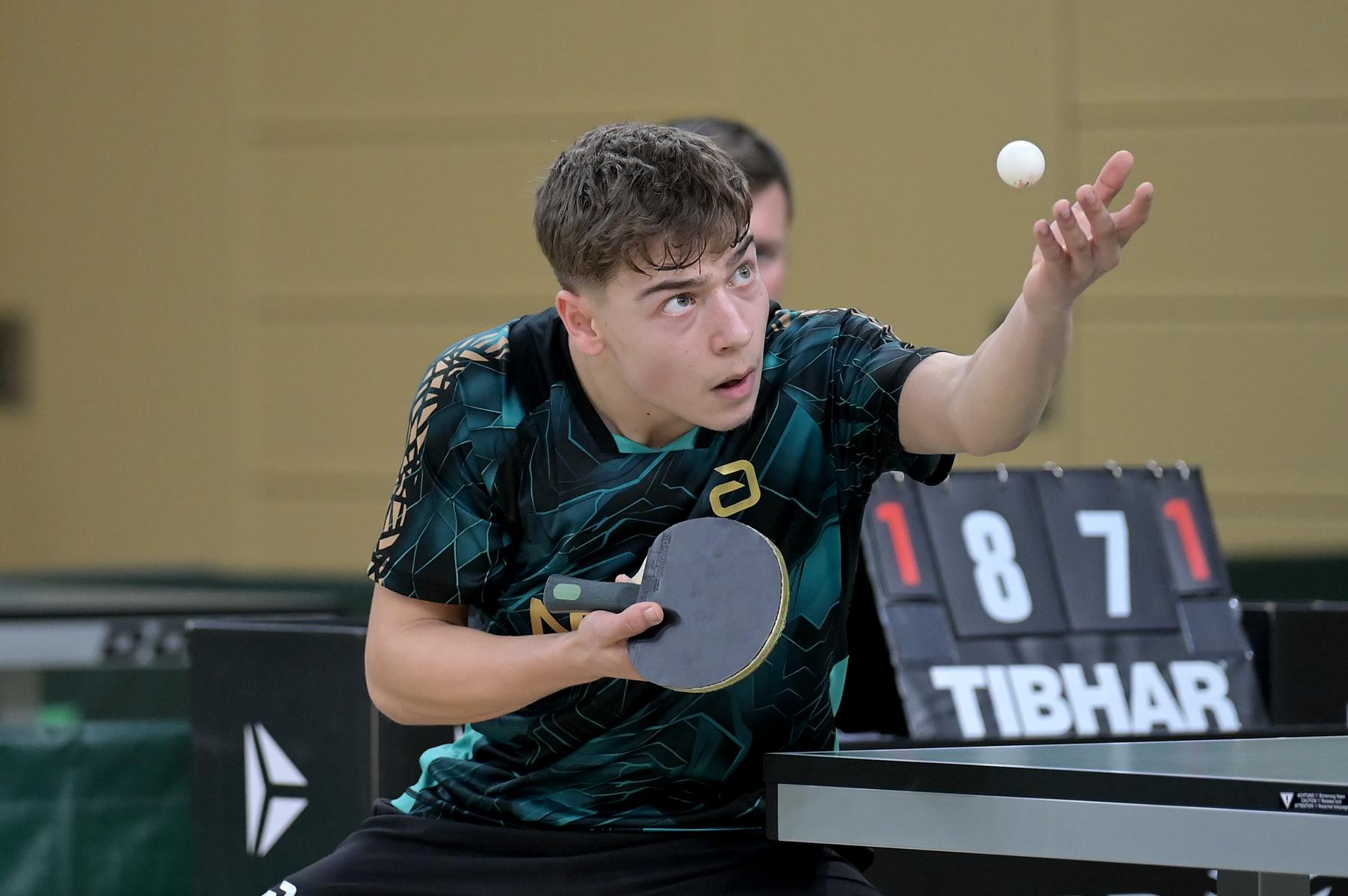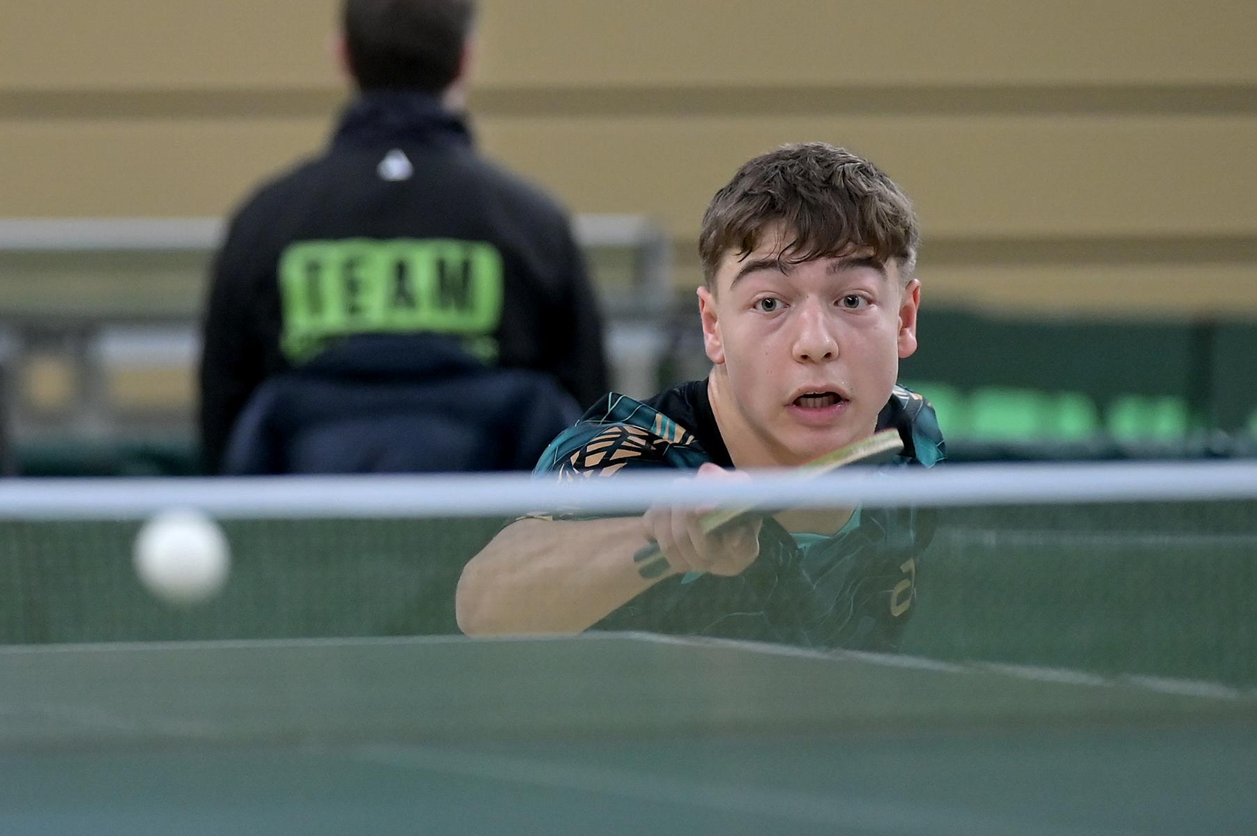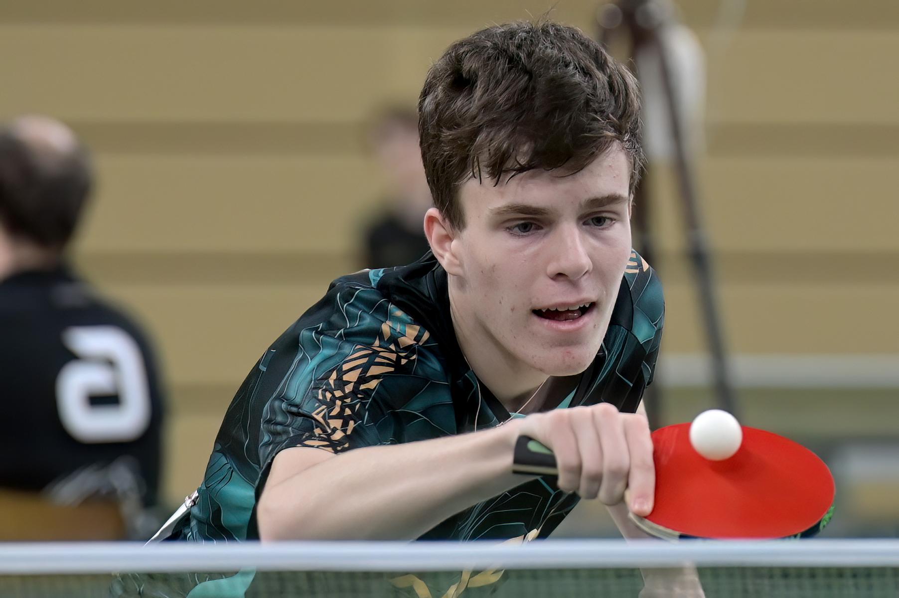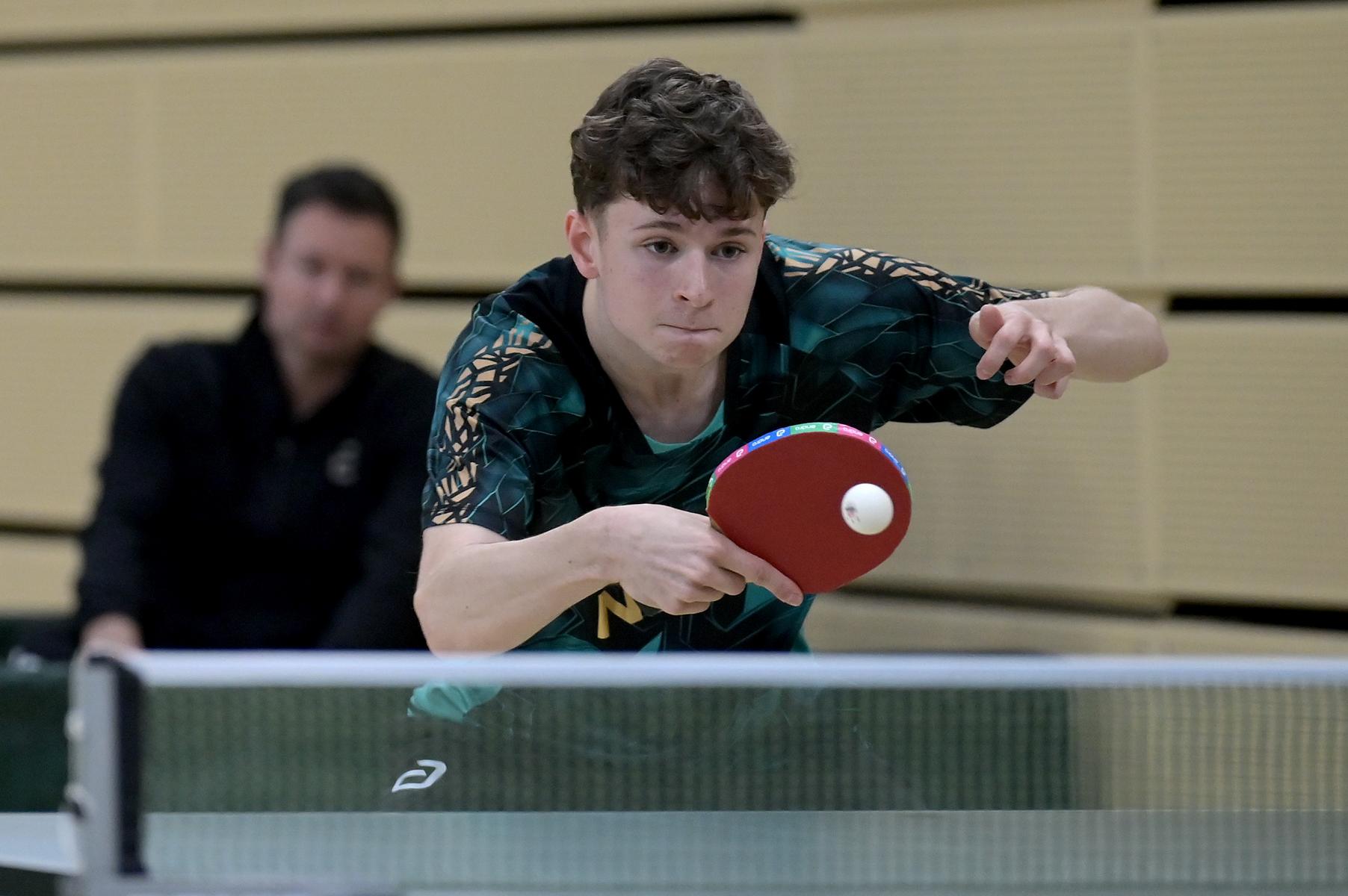 Jamal Oudriss erreichte Platz 14 – ein Ergebnis, das seinen spielerischen Leistungen an den zwei Tagen nicht ganz gerecht wird. Besonders in der Gruppenphase zeigte er hervorragenden Tischtennissport und kämpferische Leistungen und erreichte mit drei Siegen bei zwei Niederlagen Platz zwei. Im ersten Spiel der Zwischenrunde traf er auf Noah Hersel und hatte Chancen, das Spiel zu gewinnen.