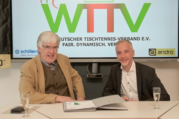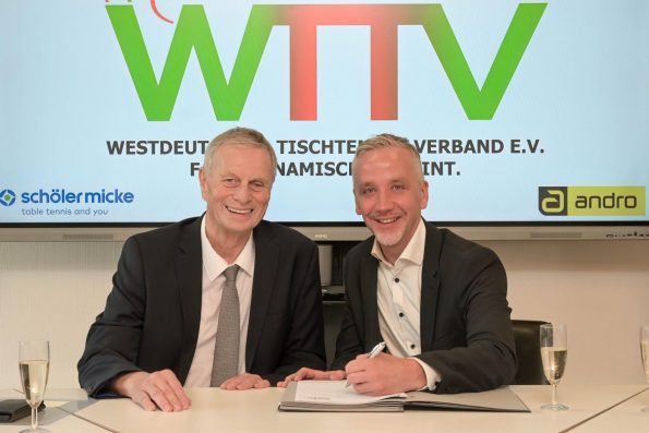 Thomas Brosig und WTTV-Präsident Helmut Diegel besiegeln die Zusammenarbeit mit ihrer Unterschrift.