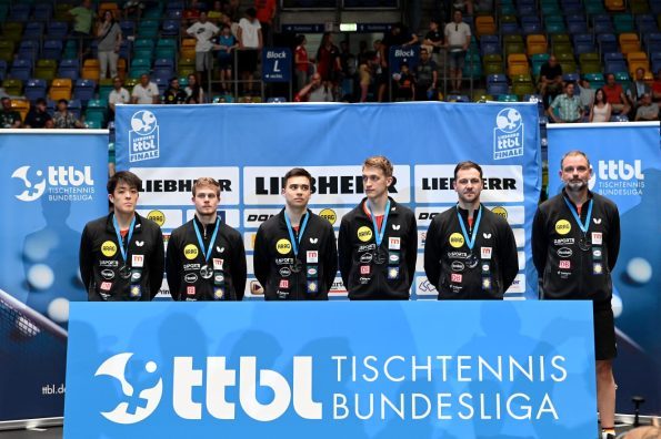 Mit dem 3:2-Finalerfolg gegen den Titelverteidiger Borussia Düsseldorf sicherten sich die TTF Liebherr Ochsenhausen ihren insgesamt fünften Deutschen Meistertitel – und beendeten damit die vierjährige Vorherrschaft der Borussia, die von 2021 bis 2024 jeweils im Finale triumphiert hatte. Bereits im Januar hatten die Schwaben das Liebherr Pokal-Final Four gewonnen – es ist das dritte Double der Vereinsgeschichte nach 2004 und 2019.