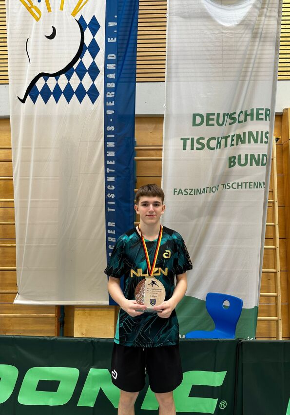 Münsters Tischtennis-Top-Talent Sebastian Lenz etabliert sich mehr und mehr in der deutschen Nachwuchs-Spitzenklasse. Am Karnevalswochenende lieferte der 14-jährige erneut eine glänzende Leistung ab. Beim DTTB-TOP24 in Mallersdorf-Pfaffenberg (Niederbayern) verbesserte Lenz seinen 4. Platz vom DTTB-TOP48 im November noch – und gewann als Dritter eine Bronzemedaille.