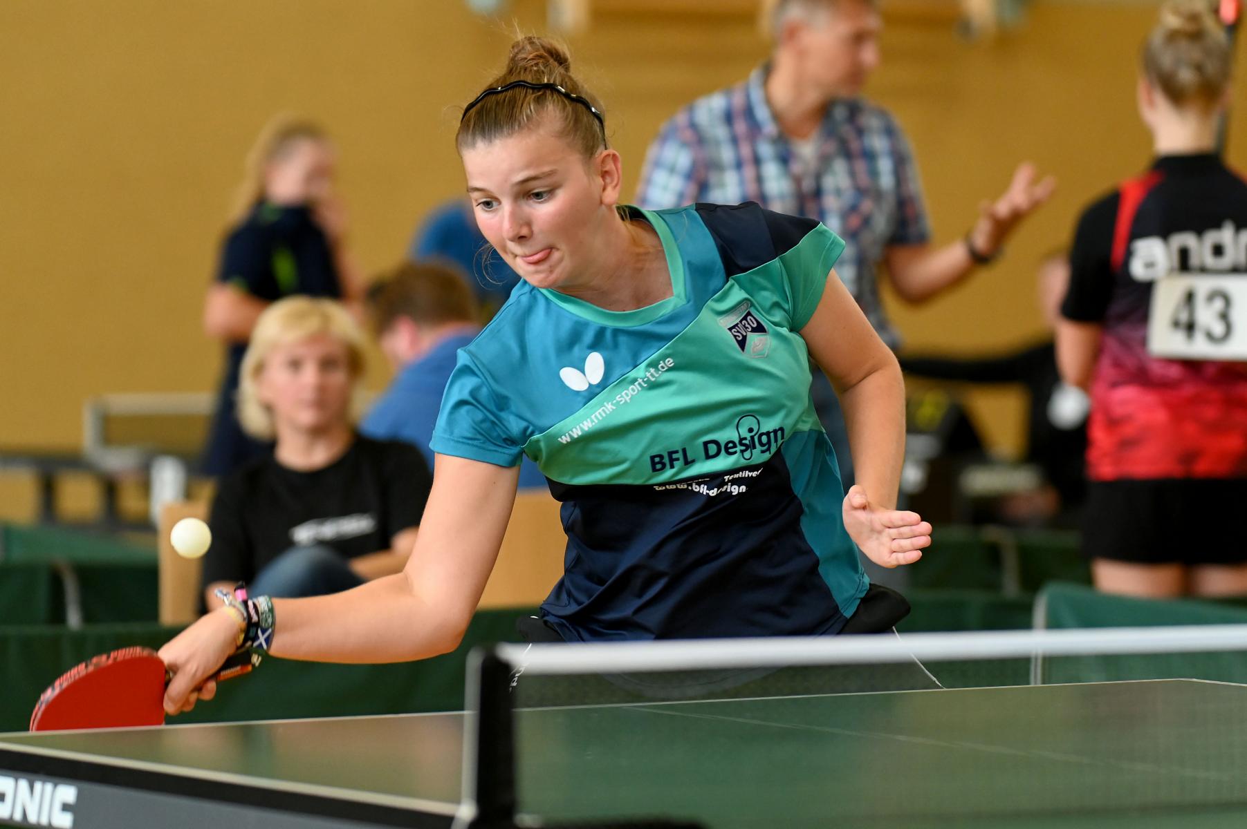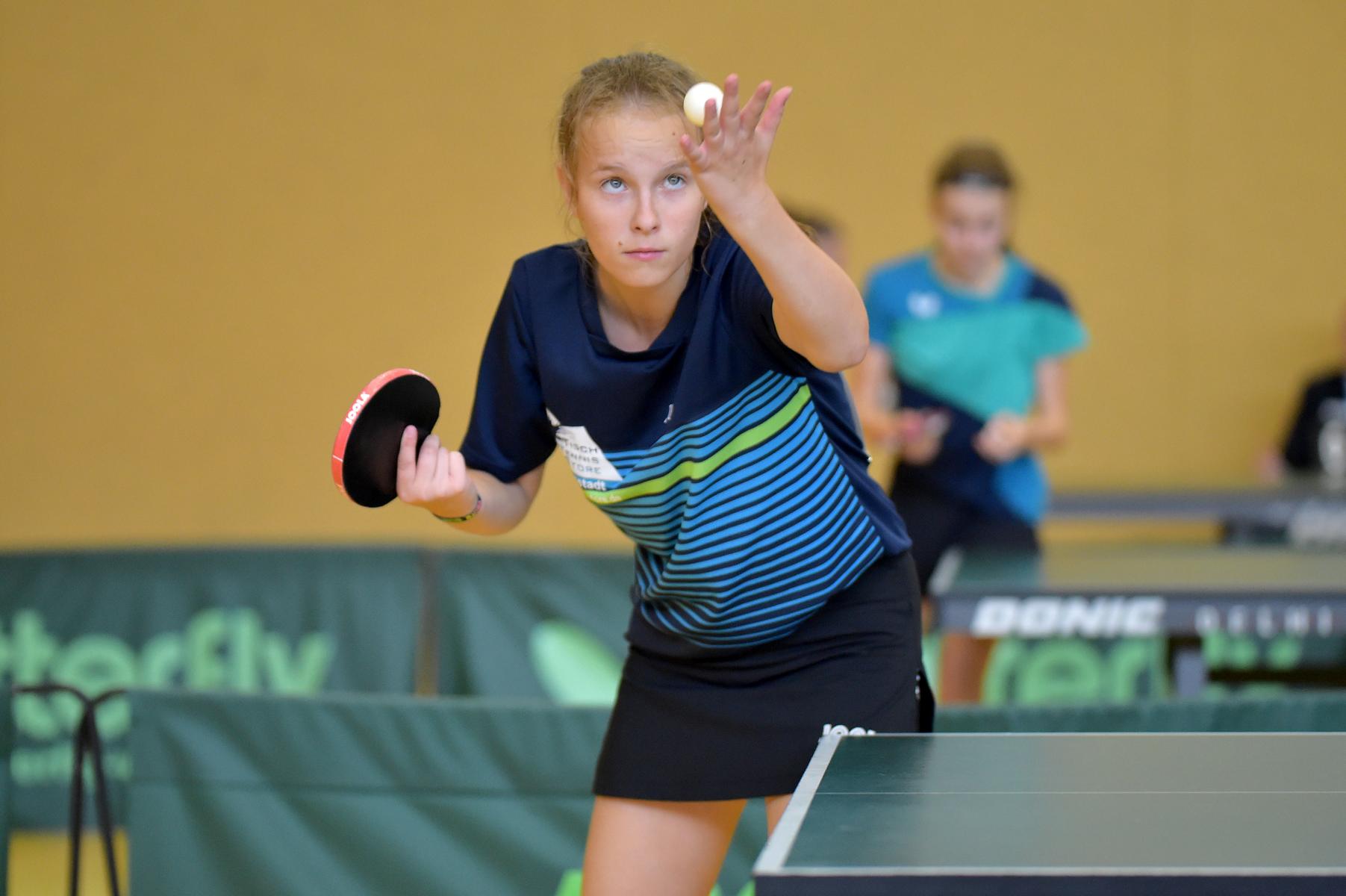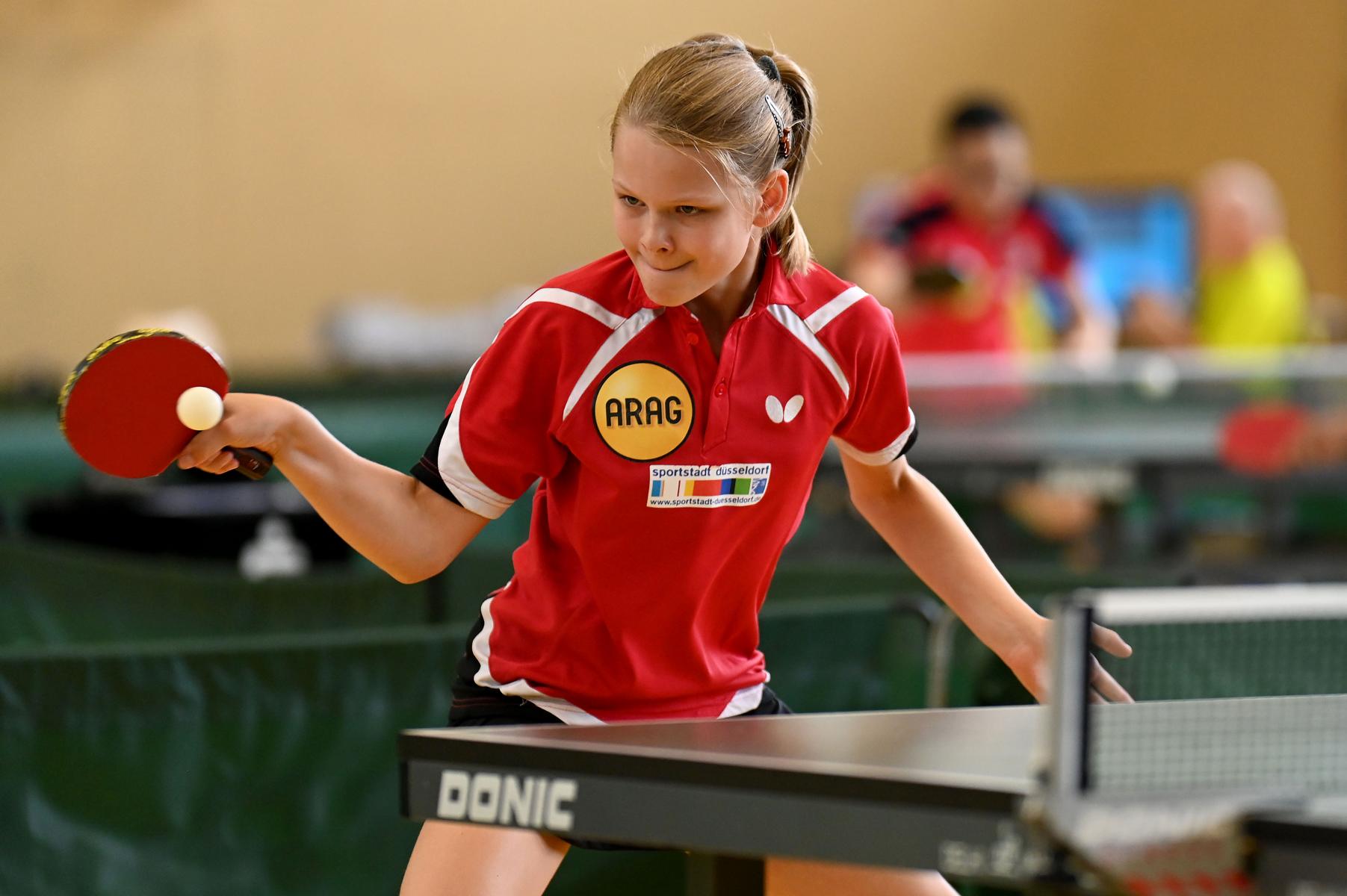 Bei den Mädchen erwischte Eireen Kalaitzidou (Borussia Düsseldorf) einen tollen Tag und blieb als einzige Teilnehmerin ohne Niederlage. Eireen hat damit ihr Ticket für die DTTB Top 48 Rangliste gelöst. Auf den weiteren Plätzen landeten mit jeweils 7:2 Spiele zwei großartige Talente, die auf gleichem Niveau zeigten, dass mit ihnen in der Zukunft zu rechnen ist. Luisa Düchting (TTG Langenich) wurde zweite und Philippa von Bandemer (Borussia Düsseldorf) dritte. Mit Laura Milos (TTV Lage) landete eine Spielerin auf dem fünften Platz, die noch zwei Jahre in dieser Altersklasse antreten kann. Auf Platz neun schaffte es Ruoqi Wei (TG Neus), ein ganz junges talentiertes Mädchen, welches noch drei Jahre in dieser Altersklasse spielen darf.