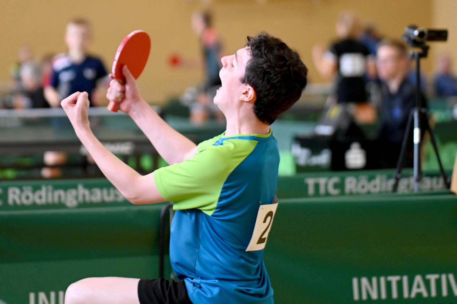 Bei den Jungen 13 gab es ein echtes Endspiel. Friederich Kühn von Burgsdorff (Post SV Gütersloh) siegte mit 3:0 gegen Marius Strahl (TTC Lövenich) und hat durch diesen Erfolg die Rangliste durch ein besseres Satzverhältnis, bei 6:1 Spielen, gewonnen. Er sicherte sich den Platz für das DTTB Top 48. Das Spiel können Sie auf unserem Facebook-Kanal im Live-Stream sehen: Video
