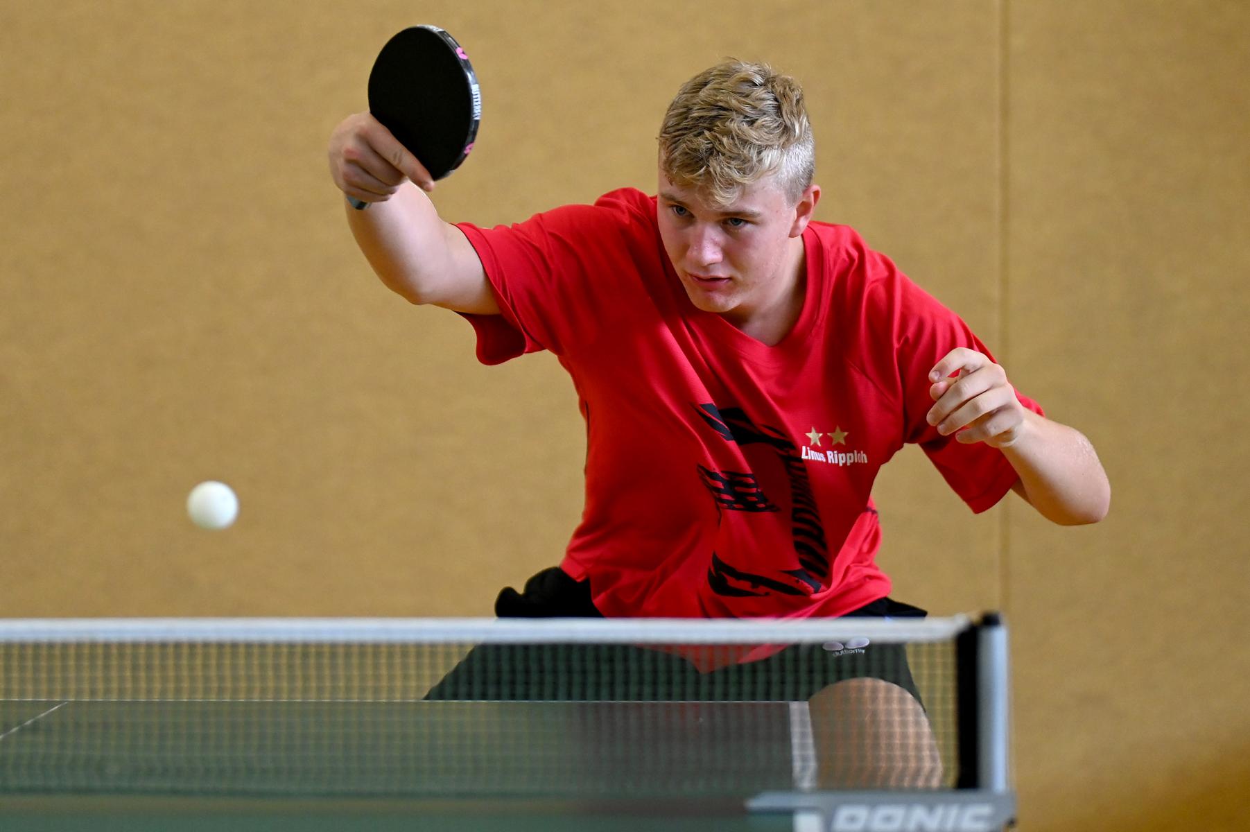Die Jungen 18 Konkurrenz war eine enge Kiste. Mit jeweils 6:1 Spielen kam es zum Schluss auf das Satzverhältnis an. Tobias Slanina (TTC Altena), der U15 Spieler Wim Verdonschot (TTC Hagen) und Jiaxing Guo (Borussia Düsseldorf) belegten die Plätze eins bis drei. Da Wim als U15 Schüler nicht beim Top 48 Jugend 18 starten darf, wird der WTTV den Sieger Tobias Slanina und Jiaxing Guo melden. Während der Sieg von Tobias, in Abwesenheit vom Turnierfavoriten Lukas Bosbach, aufgrund seiner tollen Trainingsleistungen der letzten Wochen durchaus zu erwarten war, überraschte Wim als sehr junger Spieler mit tollen Leistungen, die er von Runde zu Runde abrufen konnte. Das Spiel von Tobias gegen Wim ist ebenfalls auf unserem Facebook-Kanal zu sehen: Video.