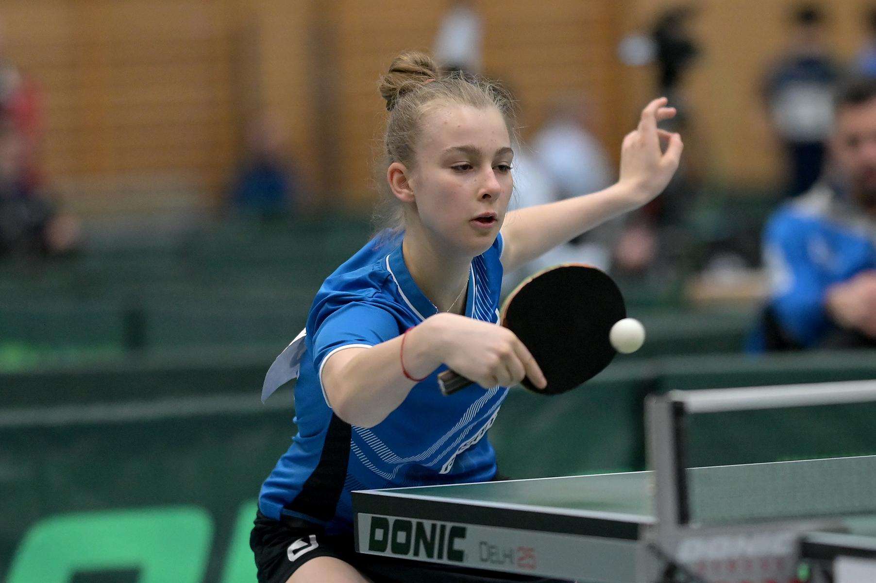 In der ersten KO-Runde musste sich Frieda dann Kohlen (STTB) mit 0:3 geschlagen geben, während Rhea, Ruoqi und Mariia das Achtelfinale erreichen konnten. Hier traf Ruoqi auf die topgesetzte Josie Neumann (HETTV) und unterlag deutlich mit 3:0. Mit dem gleichen Ergebnis musste sich auch Rhea gegen Abwehrspielerin Lisa Wang (STTB) aus dem Turnier verabschieden. Mariia hatte dagegen gegen Laura Milos (TTVN) ihre Chancen und zwang die Favoritin in den Entscheidungssatz. Hier unterlag sie dann leider mit 6:11.