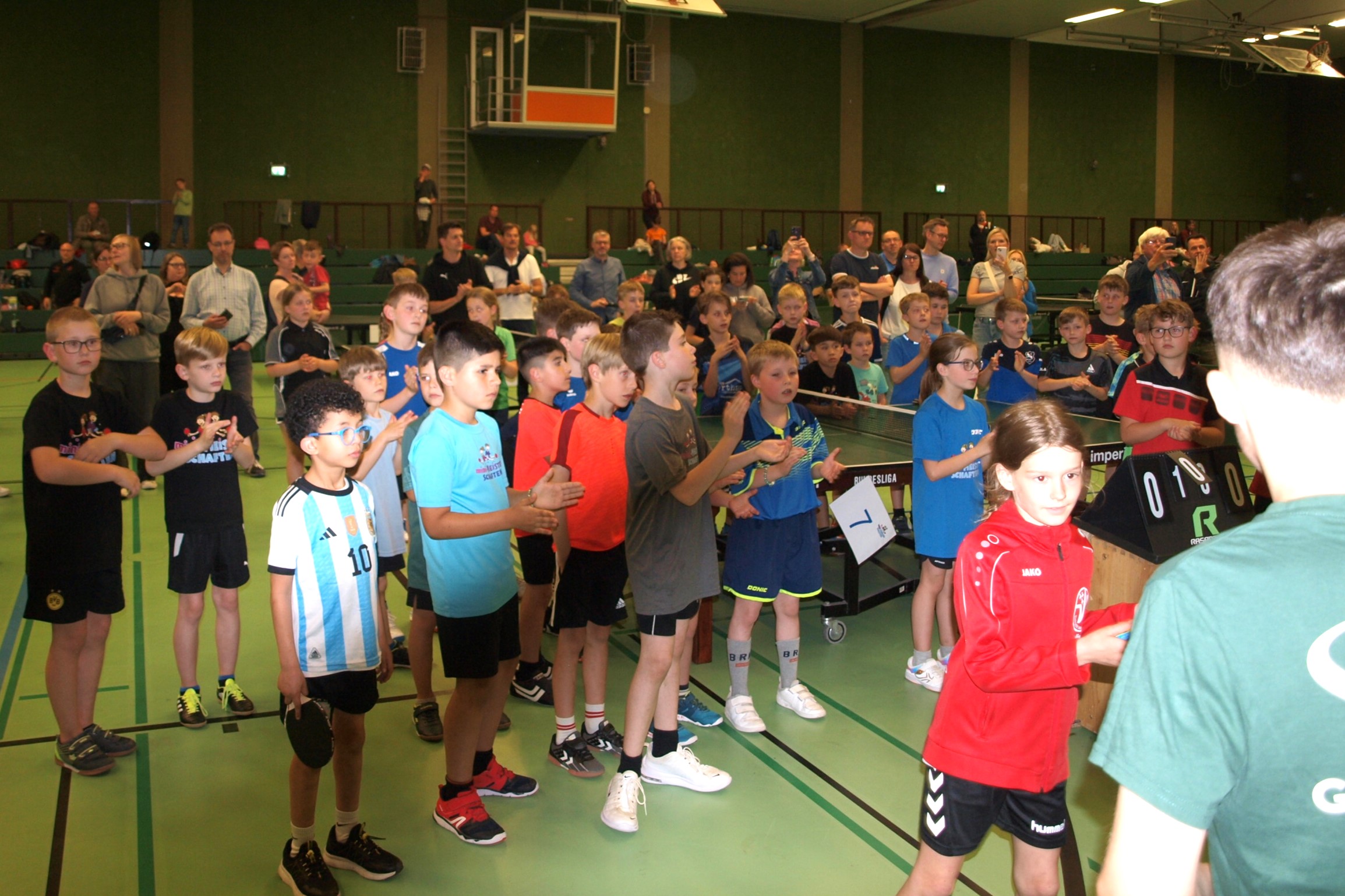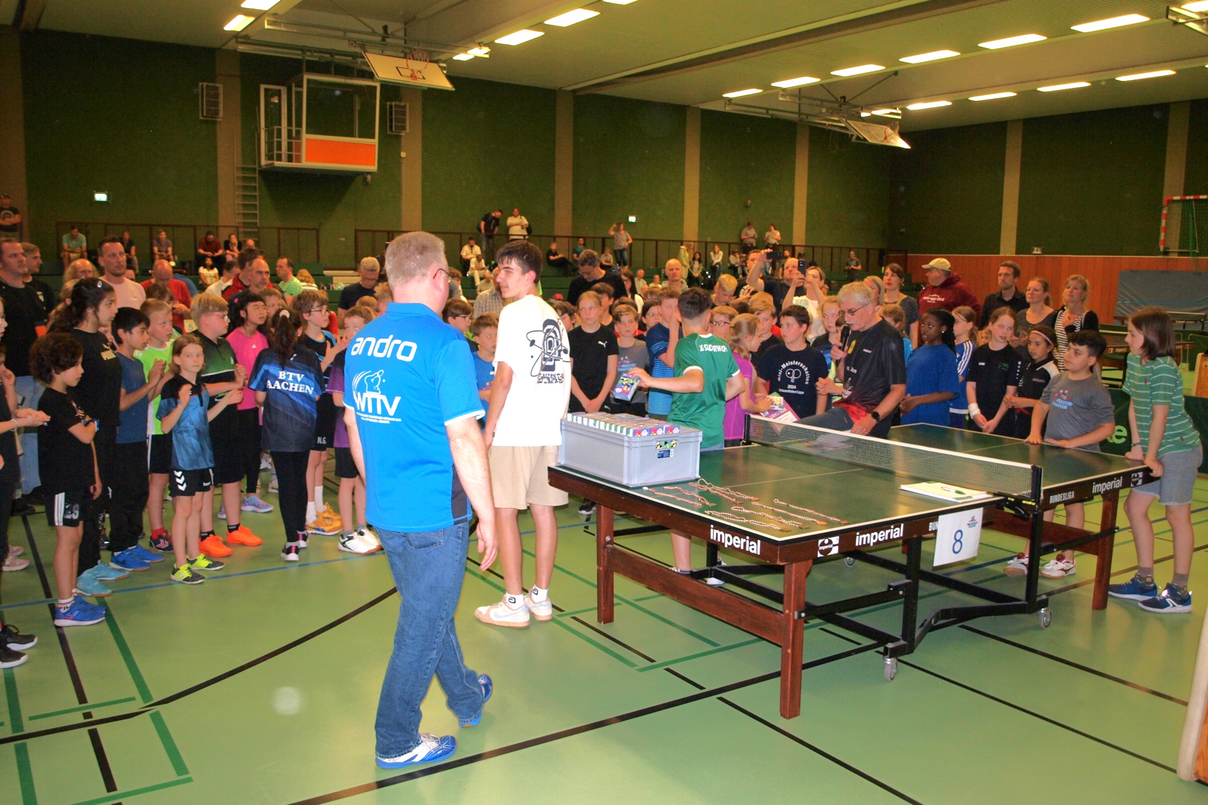 Erstmals spielten die minis an 2 Tagen ihren Sieger aus, was vor allem der geänderten Verbandsstruktur geschuldet war: Statt aus fünf kamen die minis nun aus 13 Bezirken, so dass bei vier Startern je Bezirk die Teilnehmerzahl mehr als verdoppelt wurde. Hinzu kam, dass es kaum noch möglich ist, Schiedsrichter für die Spiele zu stellen bzw. sechszehn Poolbetreuer. So kam es durch die zentrale Turnierleitung sowie durch die Tatsache, dass die Kinder erstmals selber als Schiedsrichter agieren mussten, doch zu einigen Verzögerungen, die sich aber gegenüber den Vorjahren mit 30 bzw. 60 Minuten noch halbwegs im Rahmen hielten. Dennoch gab es von Seiten der Eltern – nicht der Kinder(!) doch ein wenig Unmut. Aber das Team um Marco Knapp und Norbert Weyers arbeitet an Verbessrungen für das nächste Jahr.