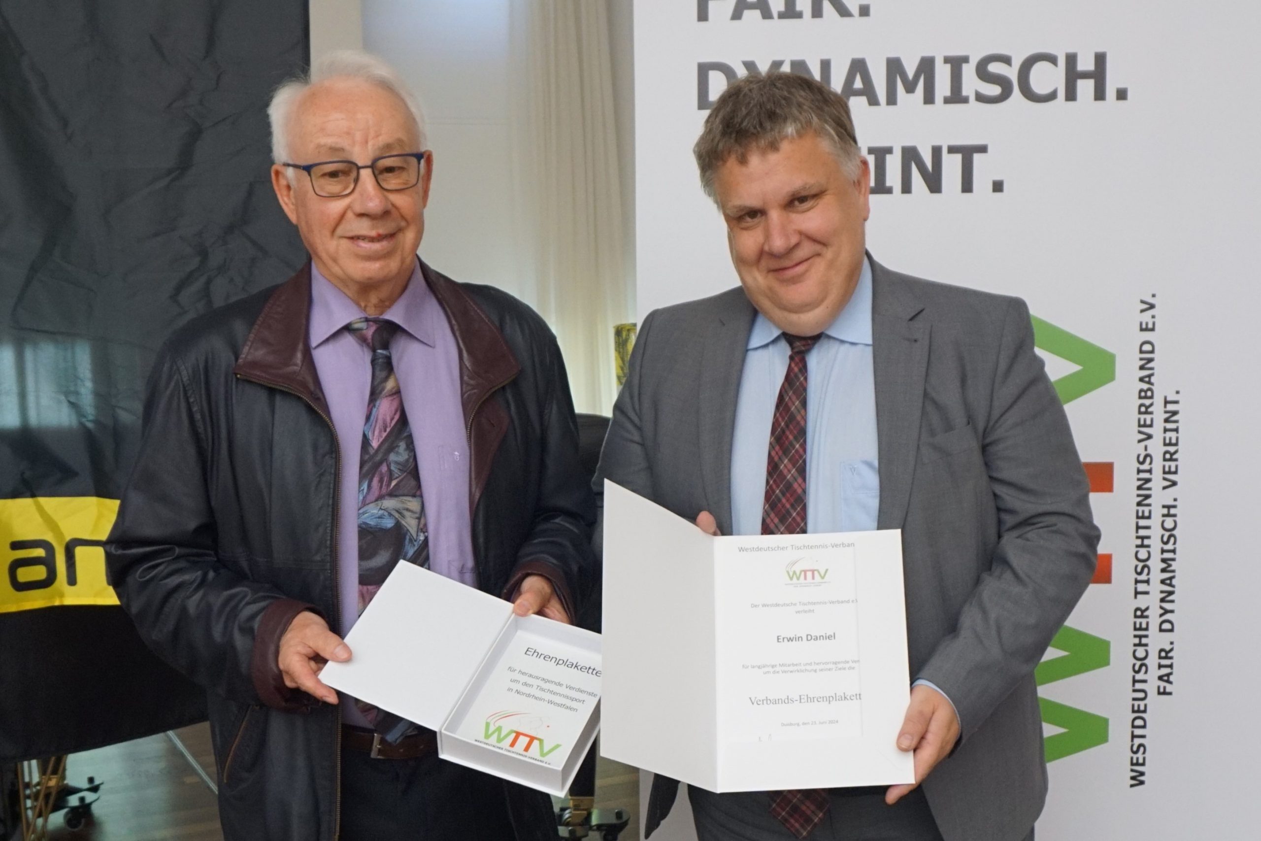 - Erwin Daniel nahm unter dem Beifall der Versammung die WTTV-Ehrenplakette entgegen