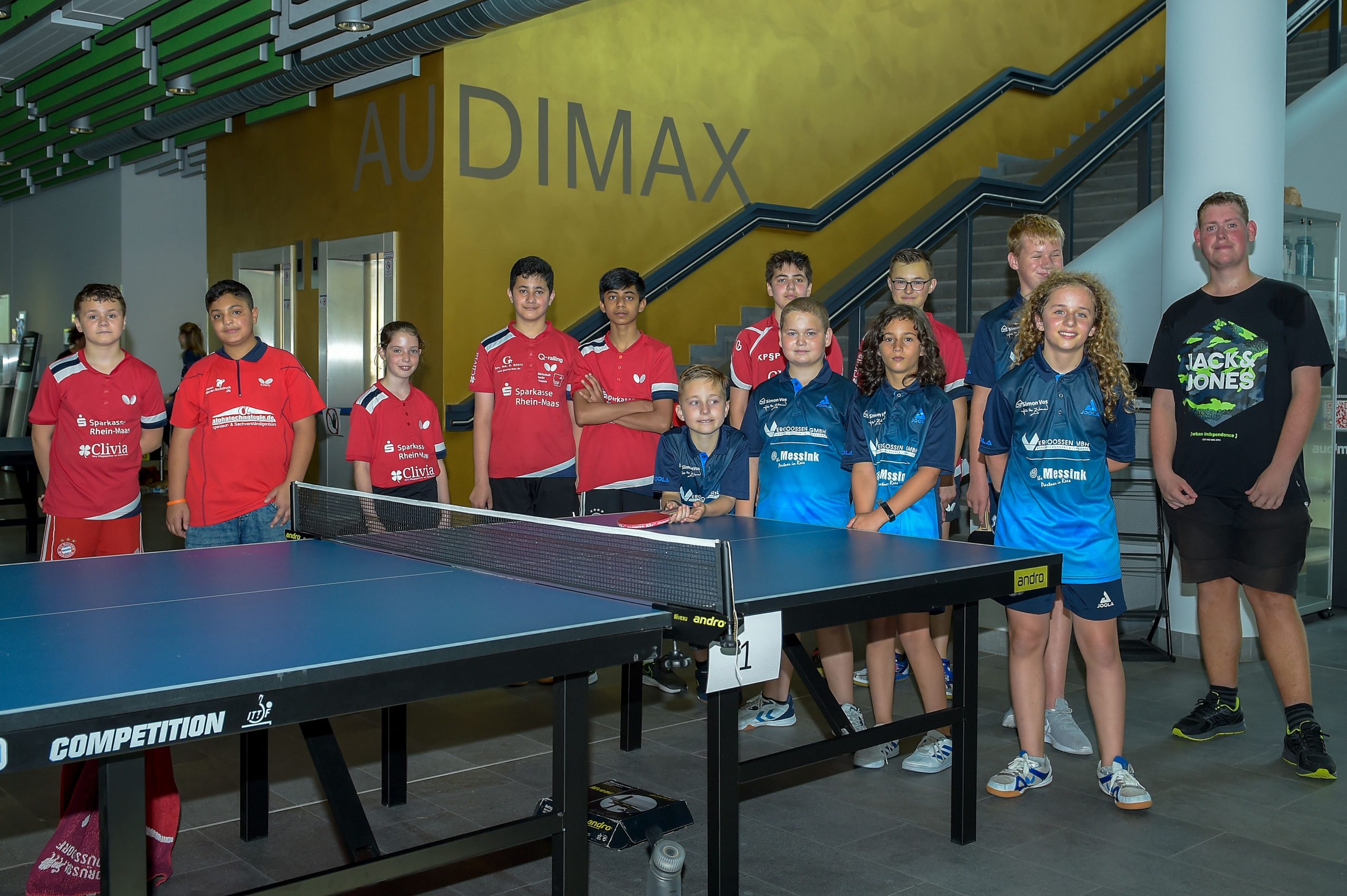Bei der nun nachgeholten Veranstaltung in der Schwanenstadt Kleve wurden vornehmlich auf dem Campus der Hochschule Rhein-Waal mit Stand-Up-Paddling, Basketball und Tischtennis drei Sportangebote präsentiert. Der Tischtennis-Nachwuchs zeigte sich und sein Leistungsvermögen dabei an einem wahrlich ungewöhnlichen Ort: Im Hörsaalzentrum „Audimax“ auf dem Campus präsentierte der Nachwuchs des Tischtenniskreises Niederrhein, was er kann. Hier standen unter der bewährten Turnierleitung mit Stefan Irsen (Kreisvorsitzender Düsseldorf) und Petra Jenisch nach rund vier spiel- und kampfstarken Stunden die Sieger/innen fest, die mit Pokalen und Urkunden aus der Hand des KSB-Vorsitzenden Lutz Stermann und dem TT-Kreisvorsitzenden Niederrhein, Klaus Verburg, belohnt wurden.