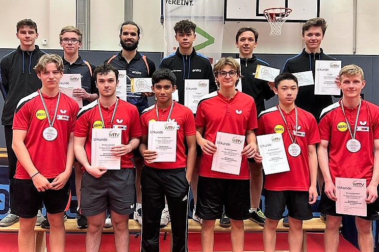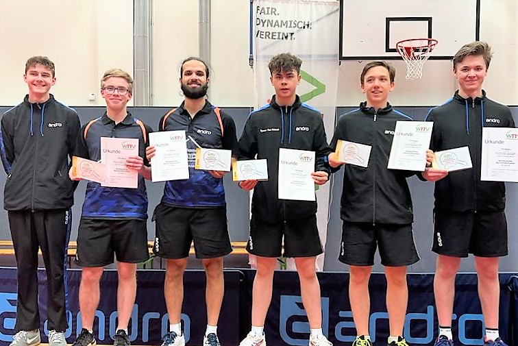 Bei den Jungen 18 mussten am Ende die Sätze über Sieg oder Niederlage entscheiden. Im Endspiel um die Westdeutsche Meisterschaft standen sich TTF Bönen und Borussia Düsseldorf gegenüber. Bönen ging in diesem hochklassigen Spiel zwischenzeitlich mit 5:3 in Führung. Doch die Düsseldorfer konnten die letzten beiden Partien in diesem Match für sich entscheiden, so dass es am Ende 5:5 nach Spielen stand. Da das Team aus Bönen in dem fast dreistündigen Match sechs Sätze mehr für sich entscheiden konnten, holten sich Toni-Ivano Ramljak, Tyson Tan Hasse, Marius Goebel, Milad Osmani den Meistertitel.