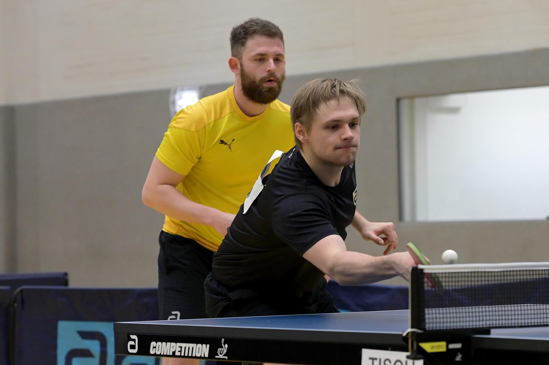 Bei den Herren wurde es auch nicht knapper. Verdonschot/Qiu dominierten ganz überwiegend das Geschehen. Doch beim Stand von 2:1, 10:6 schienen sie sich ihrer Sache zu sicher zu sein. Hersel/Andersen gelang fast ohne eigenen Verdienst der Ausgleich. Doch dann rissen sich die Favoriten noch einmal zusammen und entschieden den Satz mit 12:10 und das Spiel mit 3:1 Sätzen für sich.