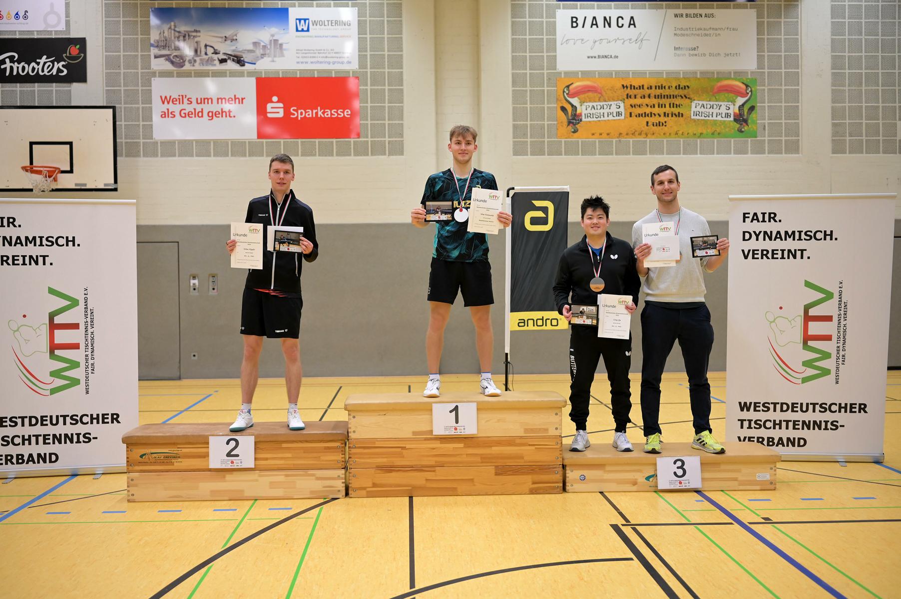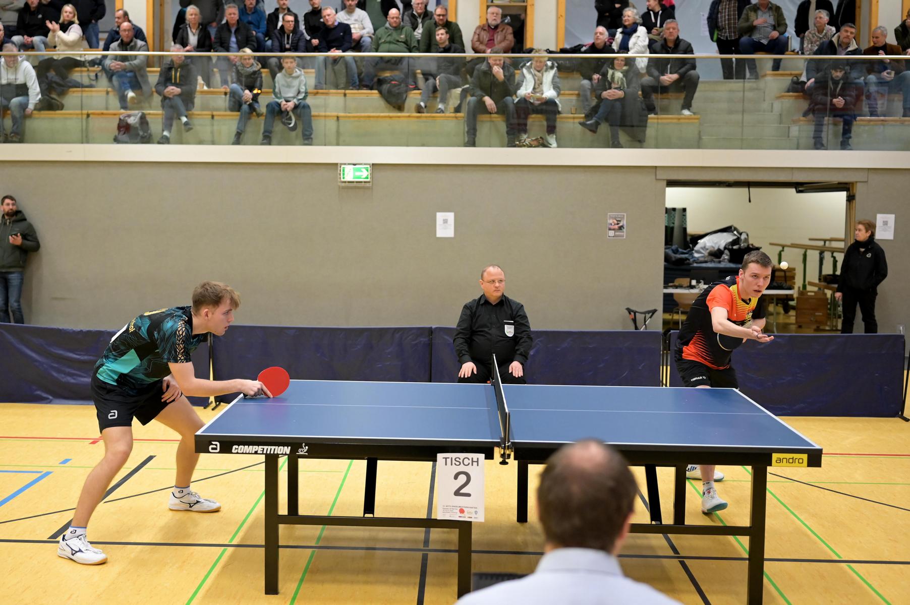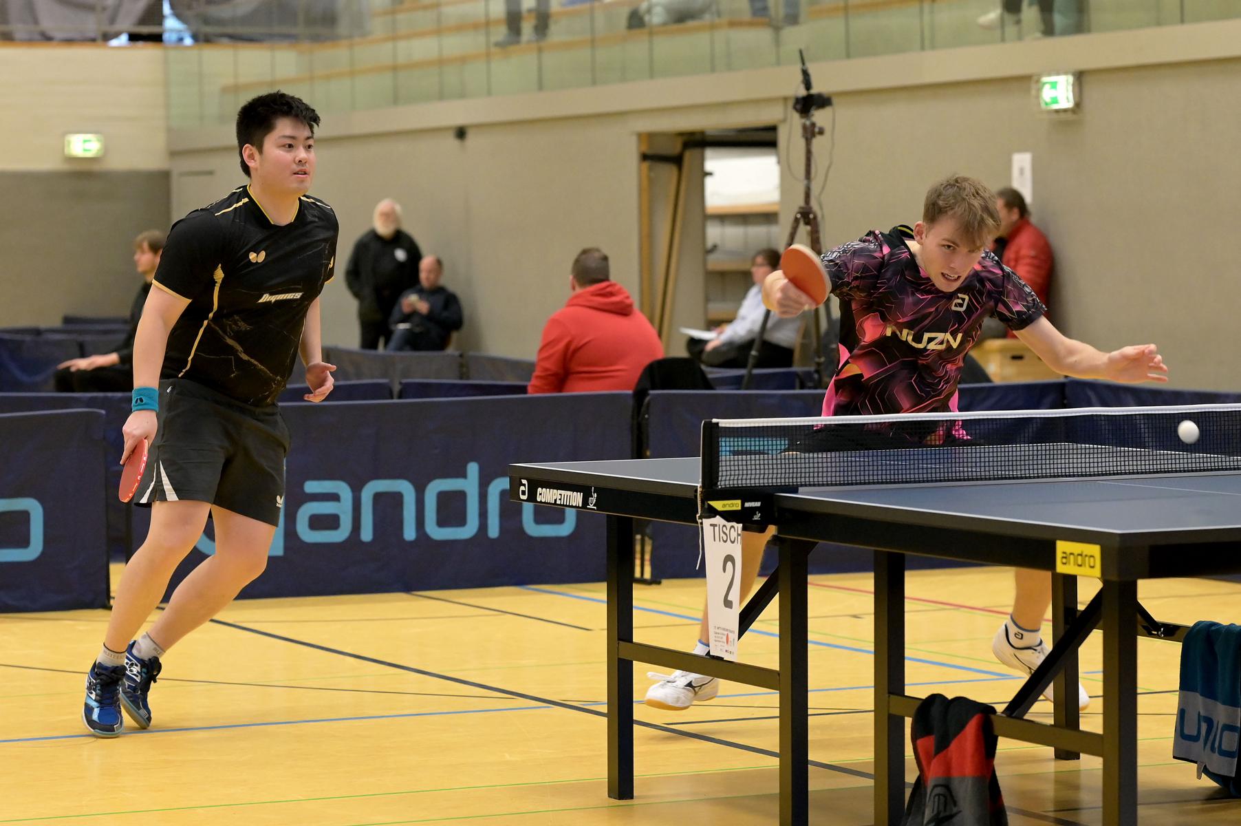 Im anderen Habfinale traf mit Verdonschot ein 19-Jähriger auf den erfahrenen Liang Qiu. Und der junge Zweitligaspieler aus Velberter ließ seinem Gegner keine Chance. Nach einem zwischenzeitlichen 1:1 stand es am Ende 4:1 (5:11, 11:9, 11:8, 11:5, 11:8). Das von erhoffte Finale der Favoriten Hippler und Verdonschot war zustande gekommen.