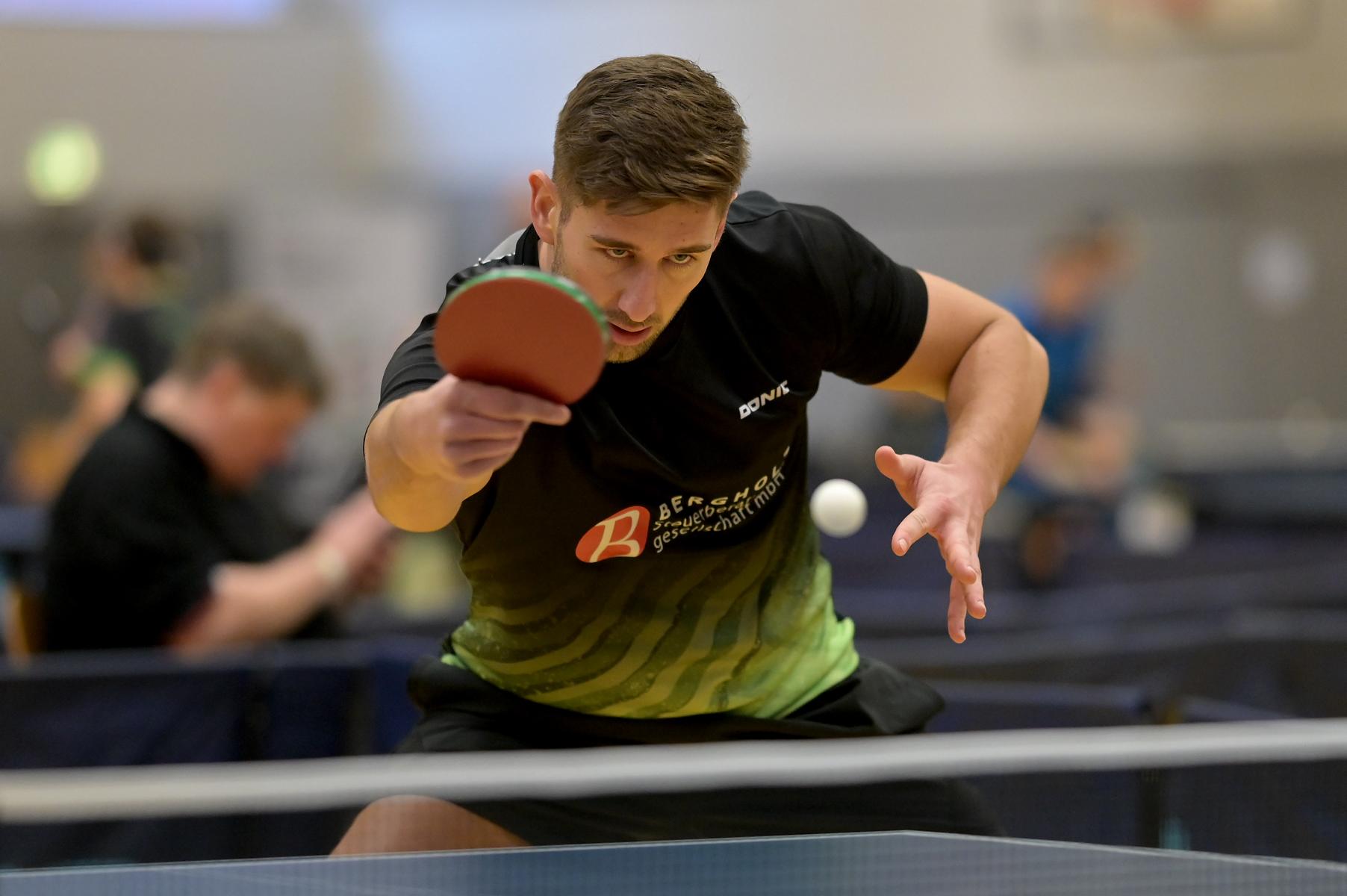Einen fast schon epischen Kampf lieferten sich im Herren-Viertelfinale Pellny und Bosbach. Nach vier Sätzen stand es 2:2. Doch dann nahm Routinier Pellny das Heft in die Hand und entschied die beiden folgenden Sätze mit 11:6 und 11:6 für sich. Die übrigen Begegnungen gingen mit jeweils 4:0 klar an die Favoriten Hippler, Verdonschot und Liang Qiu, dem Bruder der deutschen Nr. 1 Dang Qiu.