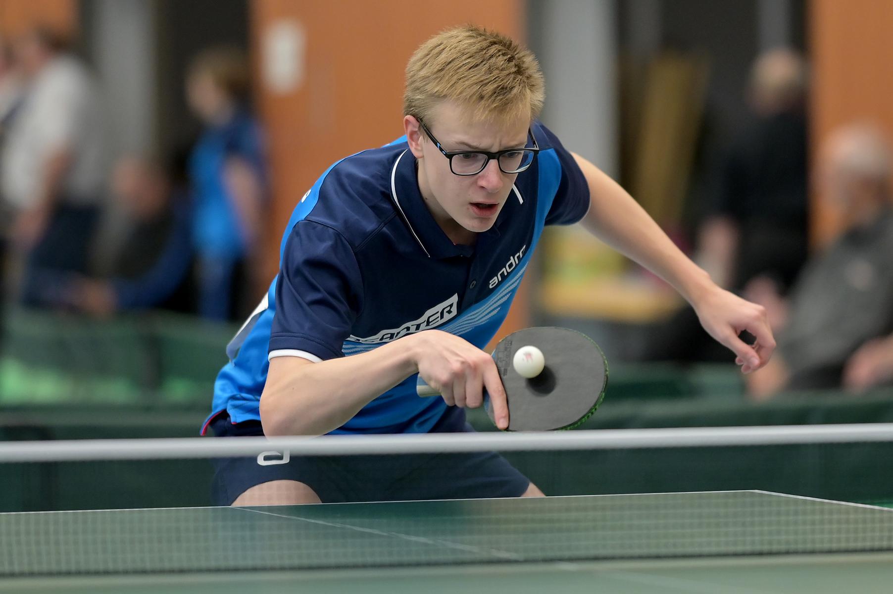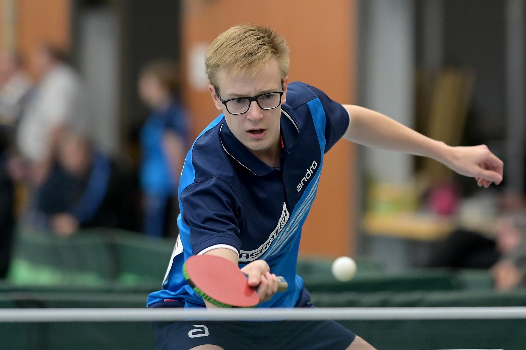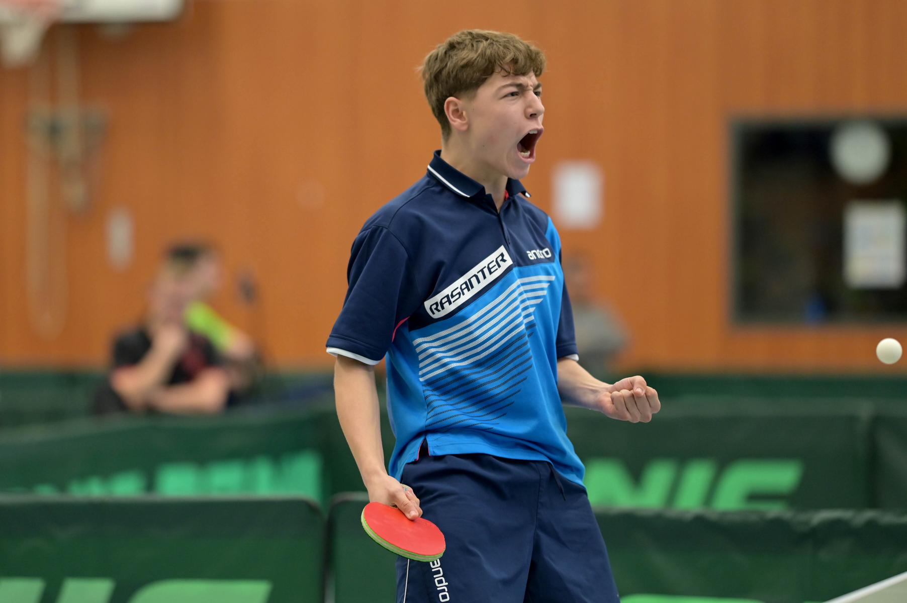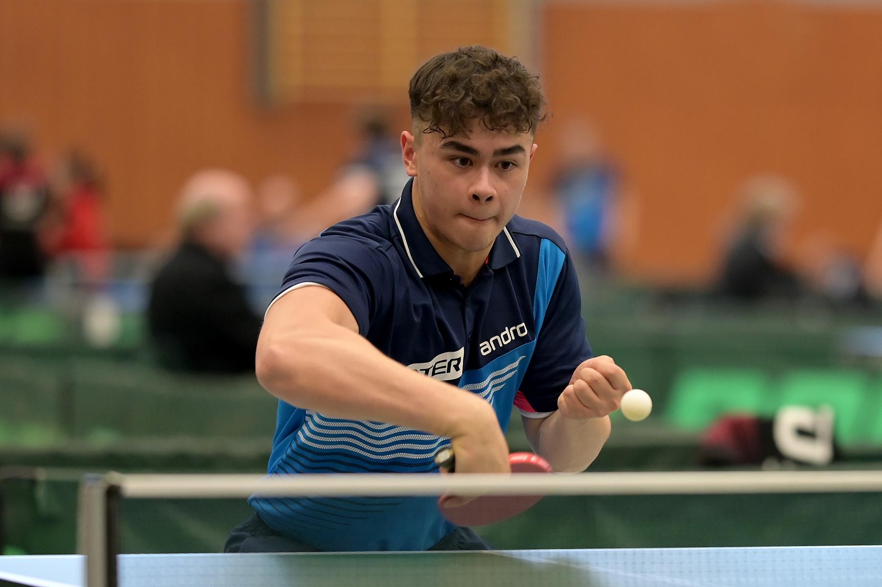 Tyson Tan Hasse (Borussia Düsseldorf) schaffte mit drei Siegen in der Vorrunde ebenfalls den Sprung in die Zwischenrunde um die Qualifikation zum Top 24. Leider musste er hier am Sonntagmorgen eine deutliche 3:0-Niederlage gegen Kohne (TTVN) kassieren und spielte damit um die Plätze 21 bis 24. Nach einer knappen Niederlage und einem abschließenden Sieg gegen Hofferer (TTBW) landete Tyson am Ende auf einem guten 23. Platz und hat damit eventuell noch eine minimale Chance ins Top 24 zu rutschen.