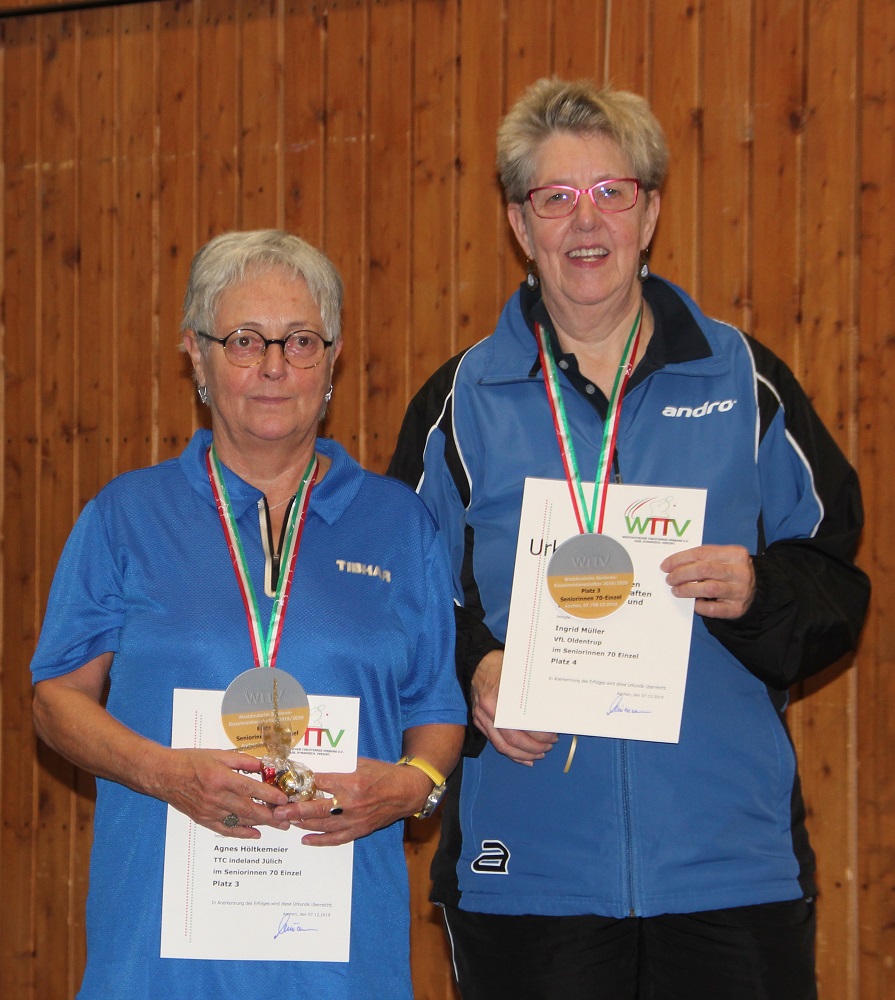 - Dameneinzel AK70 vlnr: 3. Platz: Agnes Höltkemeier (TTC Indeland Jülich) 4. Platz: Ingrid Müller (VfL Oldentrup)