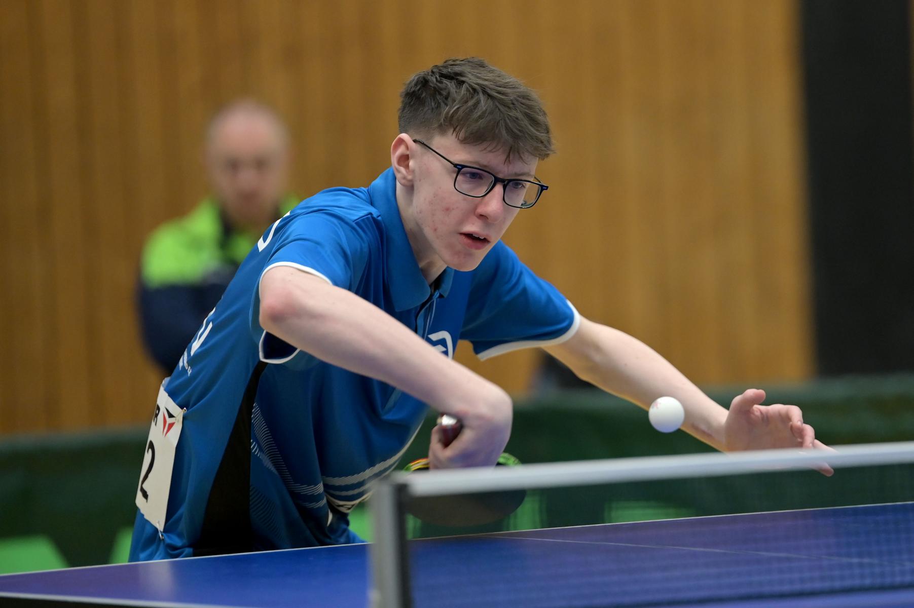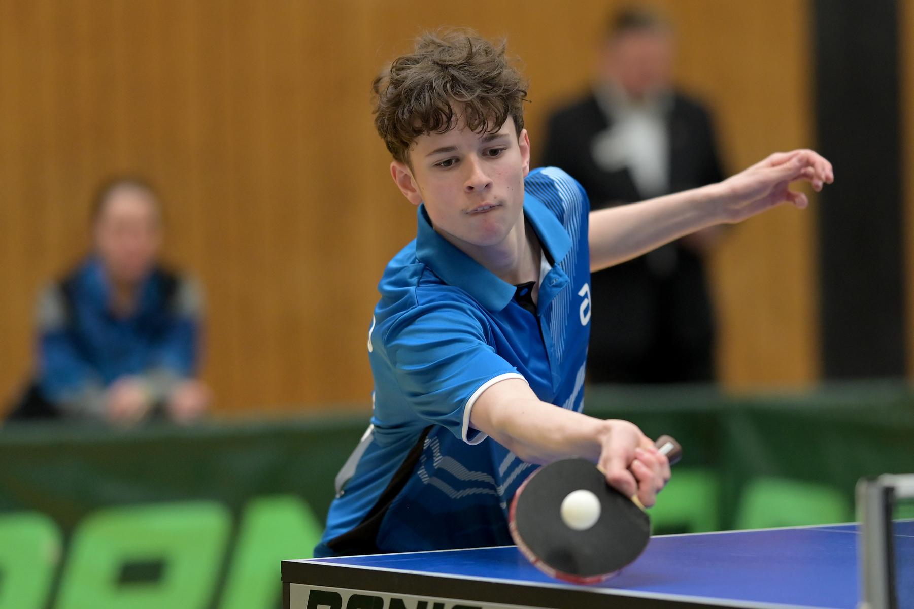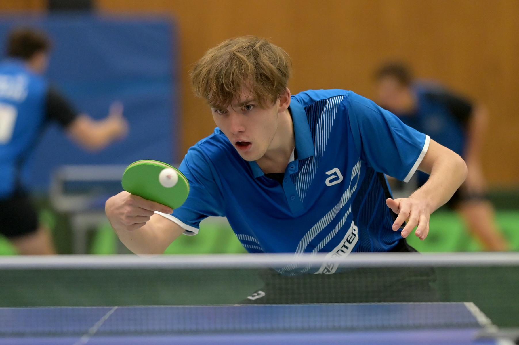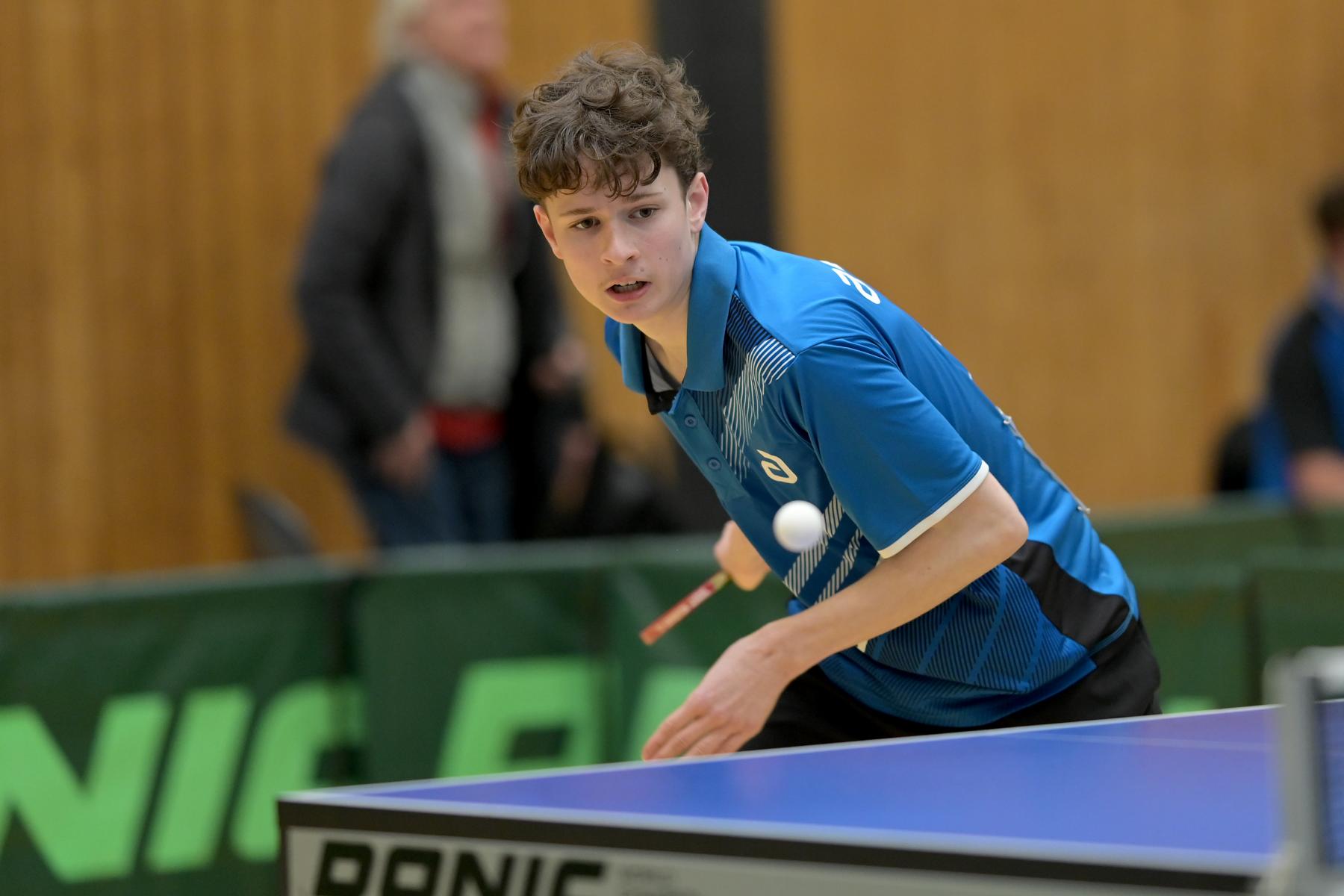 Friedrich Kühn von Burgsdorff (Post SV Gütersloh) spielte ungewöhnlicherweise direkt zu Beginn des Turniers seine „Finalspiele“, denn er gewann in der ersten Partie gegen den Mitfavoriten und Deutschen Meister von 2022 Matej Haspel (BYTTV) mit 3:1. In der zweiten Runde besiegte er mit dem selben Ergebnis seinen Teamkollegen Johann Mahl. Durch die Niederlage im WTTV internen Duell gegen Nico Thönnissen, behielt Friedrich zwar nicht die weiße Weste, setzte sich am Ende aber gegenüber Johann aufgrund des besseren Satzverhältnisses deutlich durch.