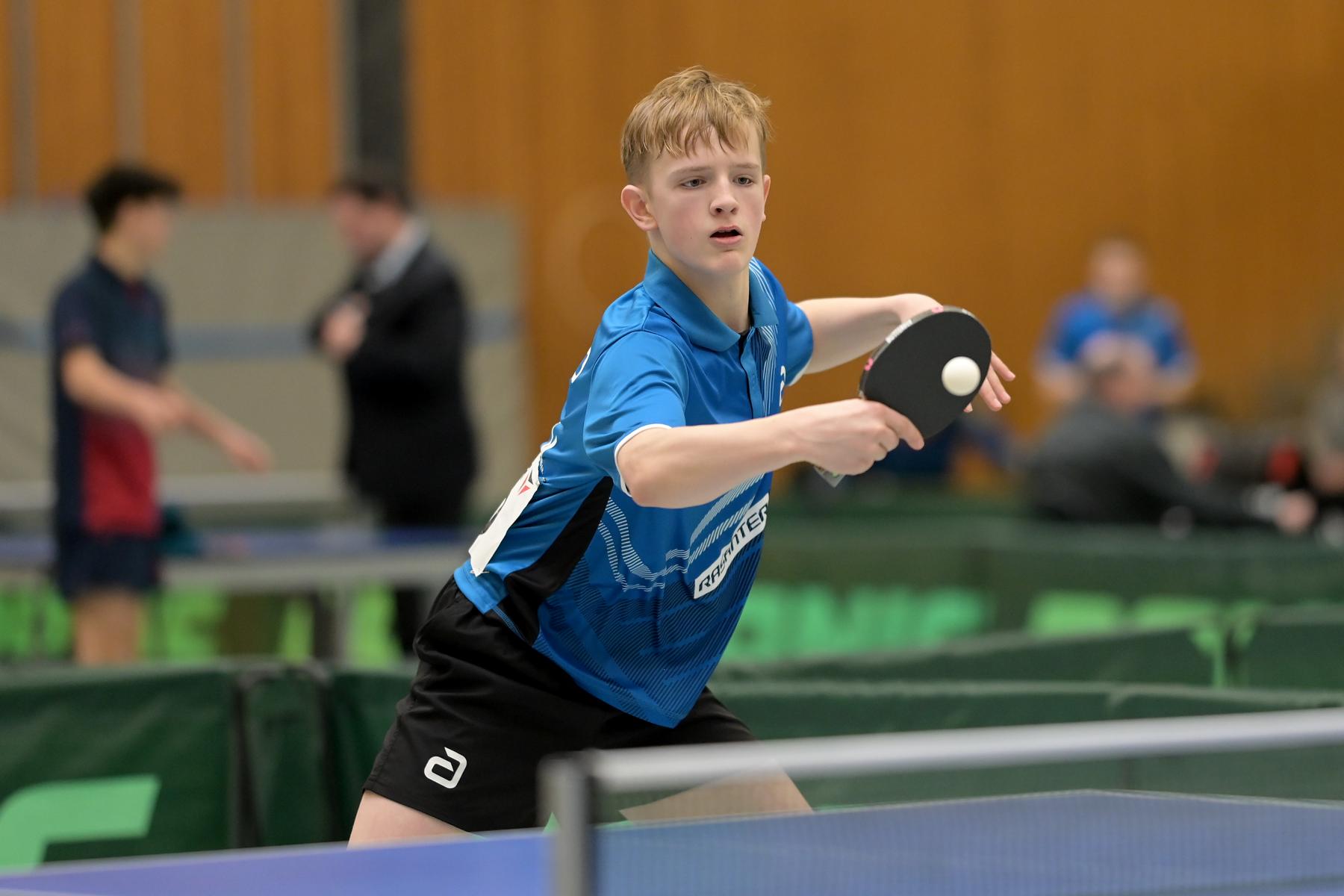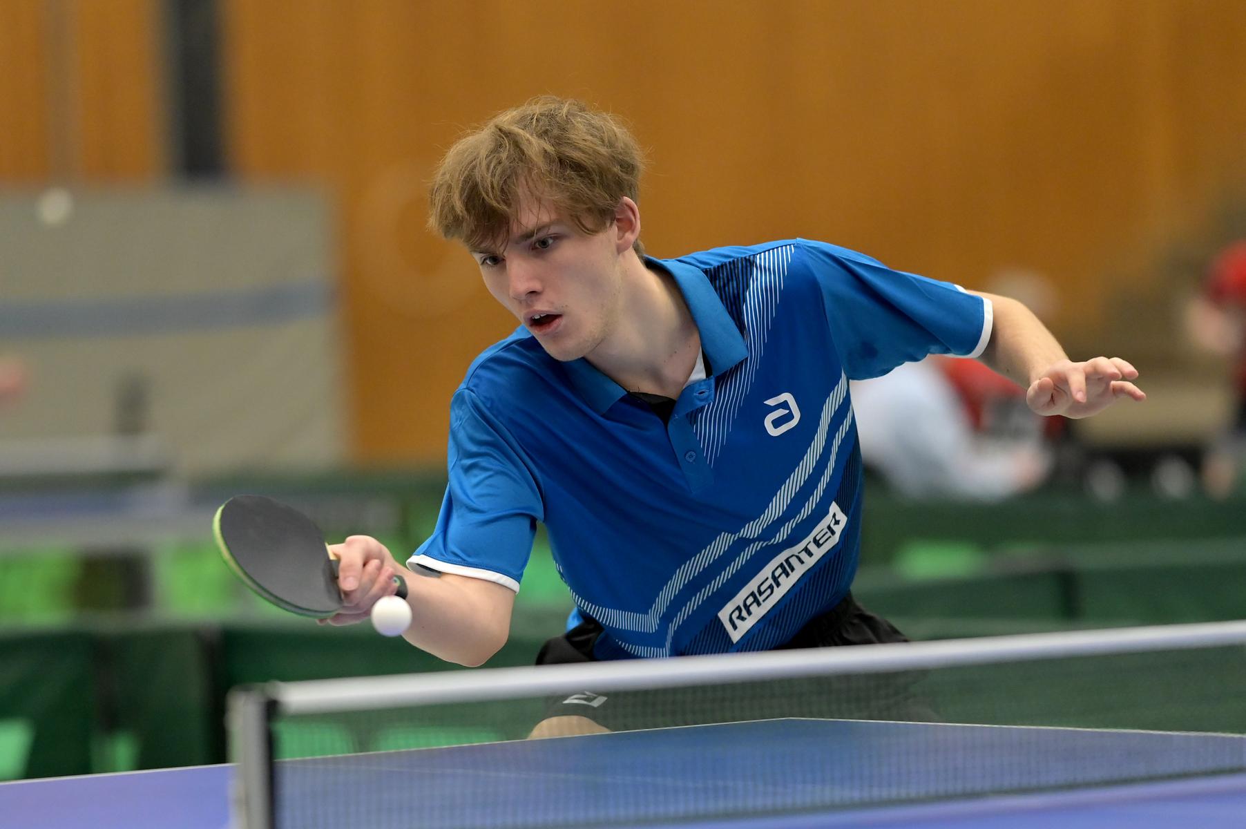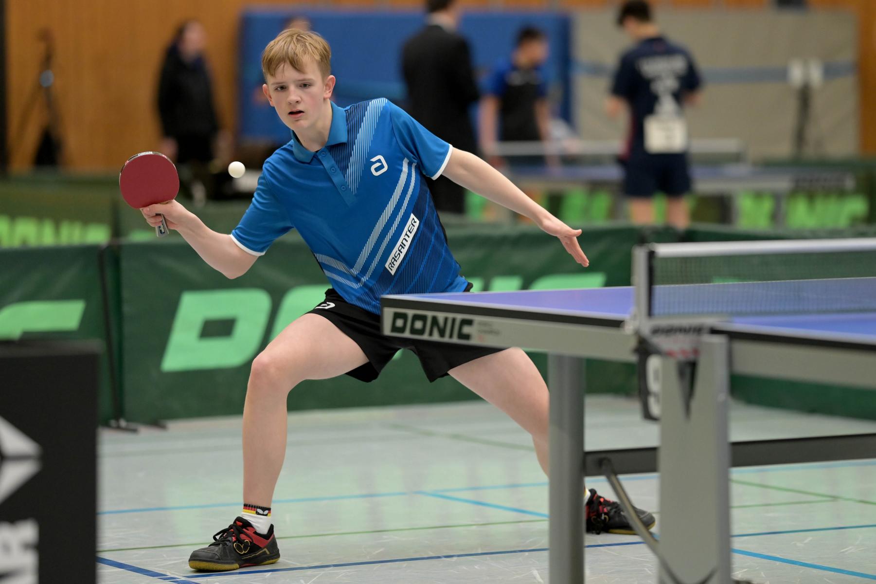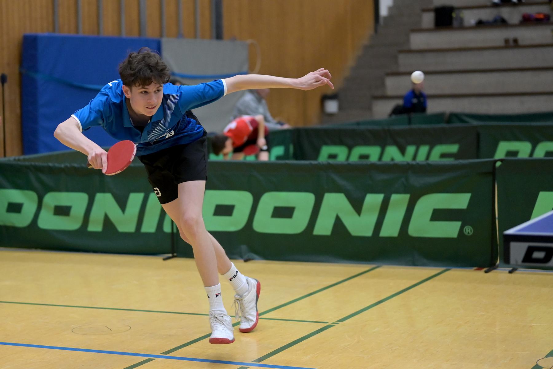 Friedrich Kühn von Burgsdorff (Post SV Gütersloh) spielte ungewöhnlicherweise direkt zu Beginn des Turniers seine „Finalspiele“, denn er gewann in der ersten Partie gegen den Mitfavoriten und Deutschen Meister von 2022 Matej Haspel (BYTTV) mit 3:1. In der zweiten Runde besiegte er mit dem selben Ergebnis seinen Teamkollegen Johann Mahl. Durch die Niederlage im WTTV internen Duell gegen Nico Thönnissen, behielt Friedrich zwar nicht die weiße Weste, setzte sich am Ende aber gegenüber Johann aufgrund des besseren Satzverhältnisses deutlich durch.