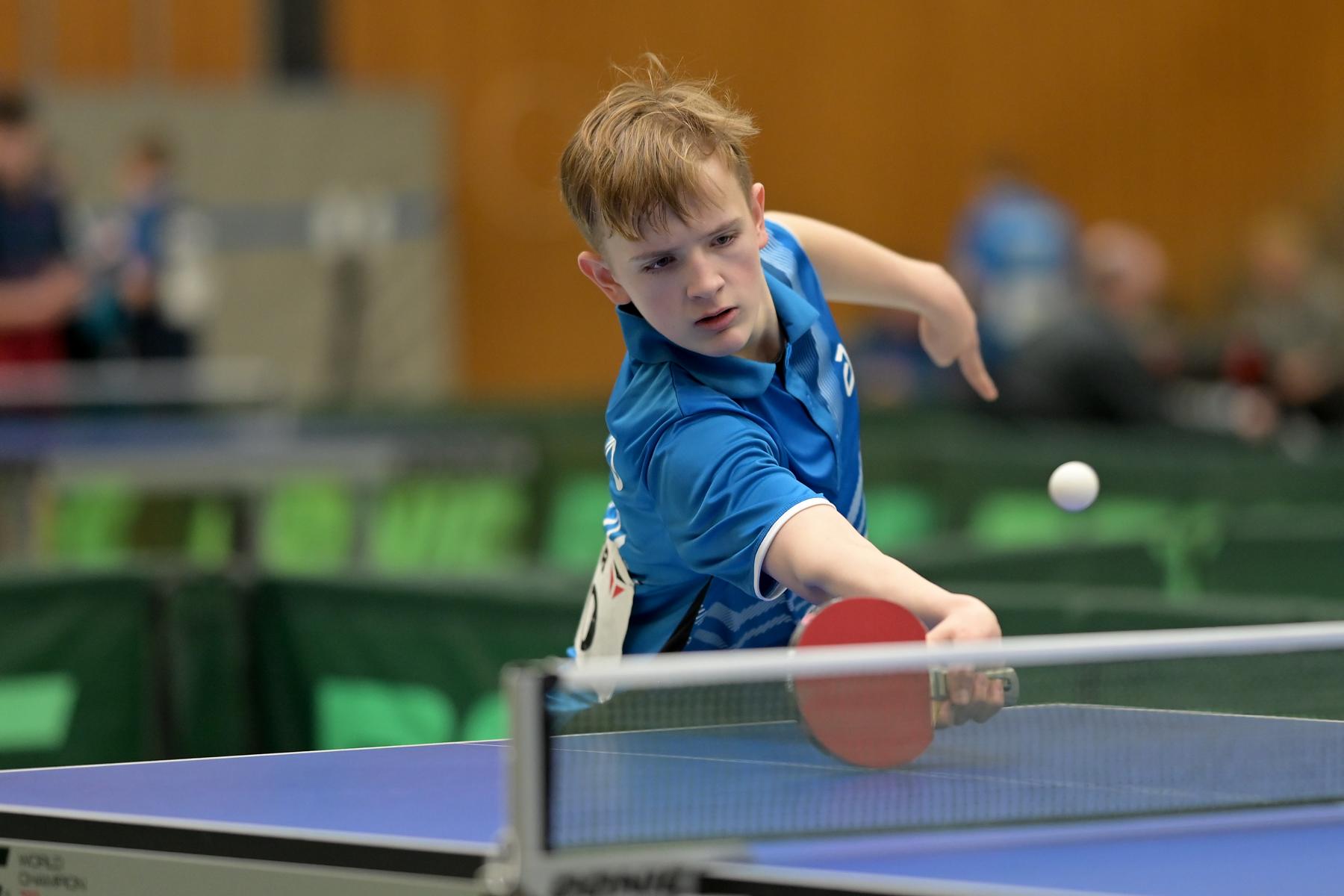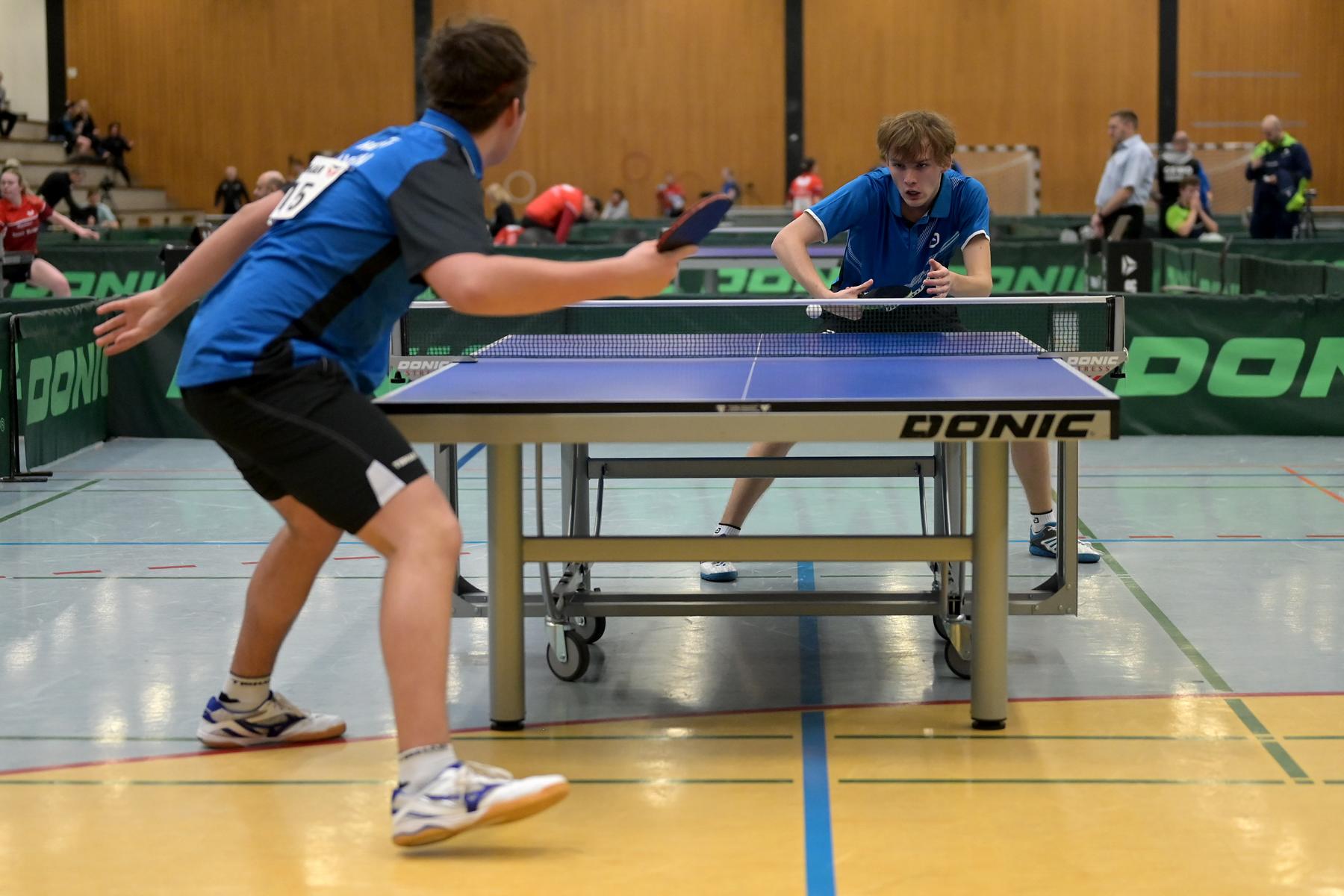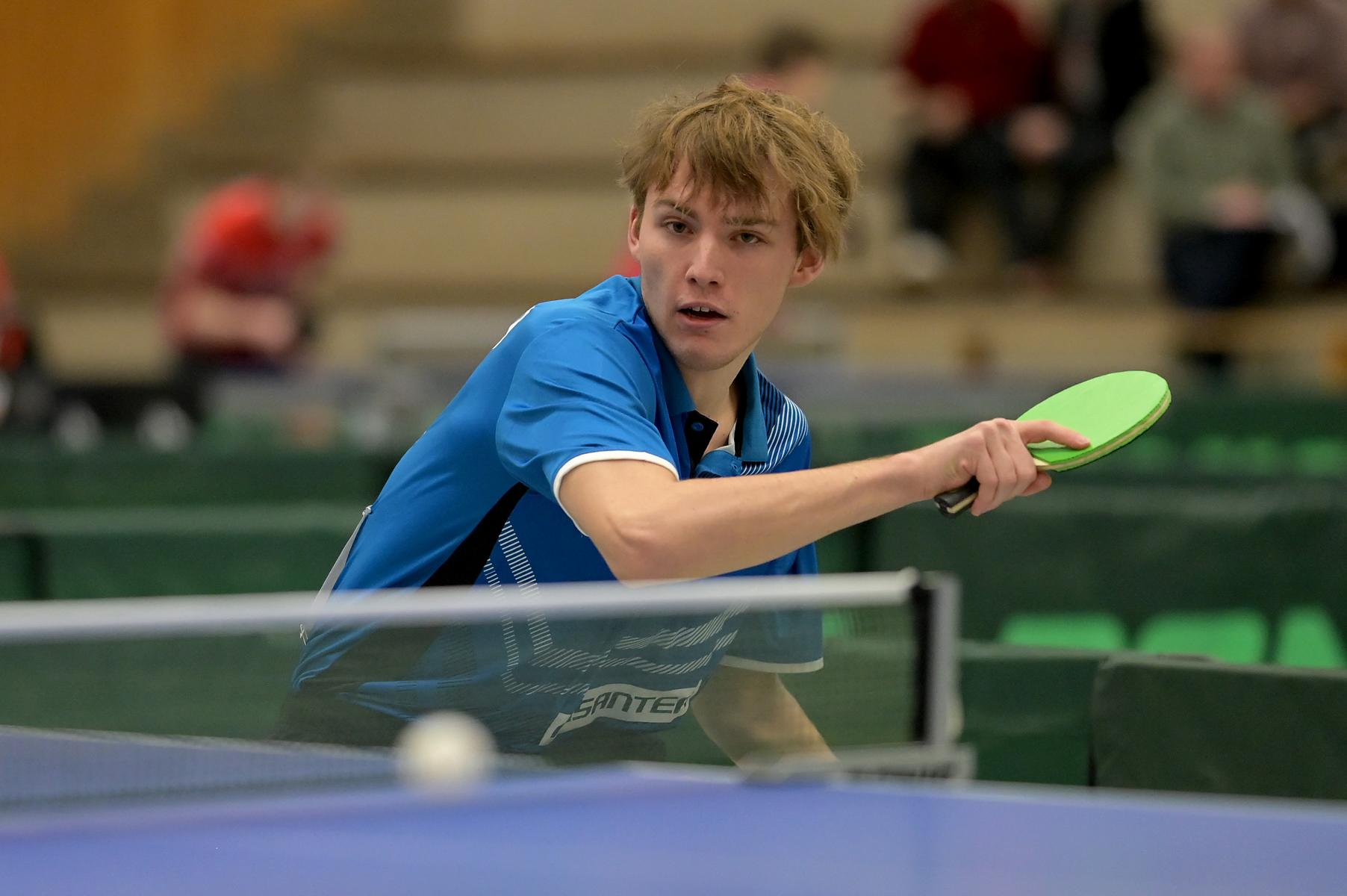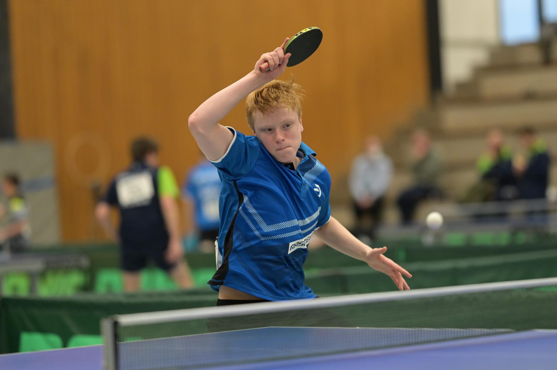 Friedrich Kühn von Burgsdorff (Post SV Gütersloh) spielte ungewöhnlicherweise direkt zu Beginn des Turniers seine „Finalspiele“, denn er gewann in der ersten Partie gegen den Mitfavoriten und Deutschen Meister von 2022 Matej Haspel (BYTTV) mit 3:1. In der zweiten Runde besiegte er mit dem selben Ergebnis seinen Teamkollegen Johann Mahl. Durch die Niederlage im WTTV internen Duell gegen Nico Thönnissen, behielt Friedrich zwar nicht die weiße Weste, setzte sich am Ende aber gegenüber Johann aufgrund des besseren Satzverhältnisses deutlich durch.