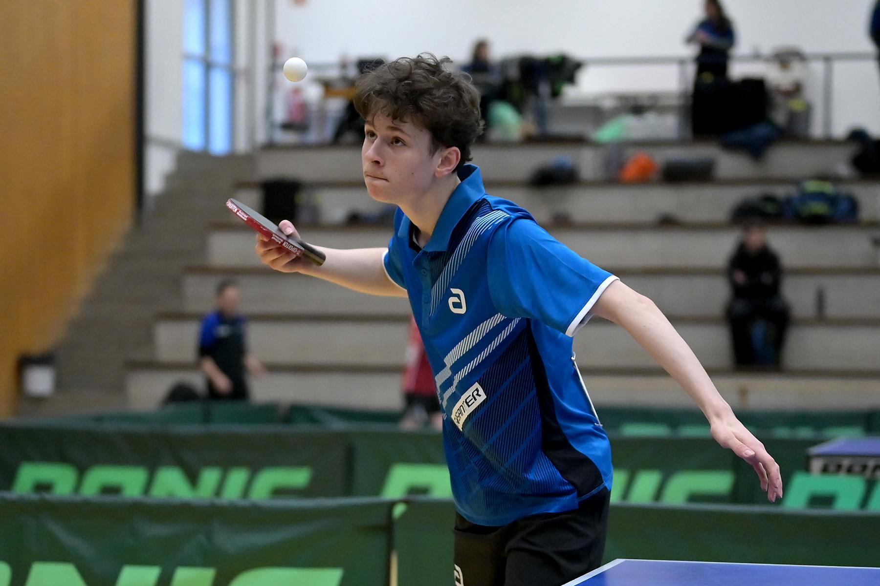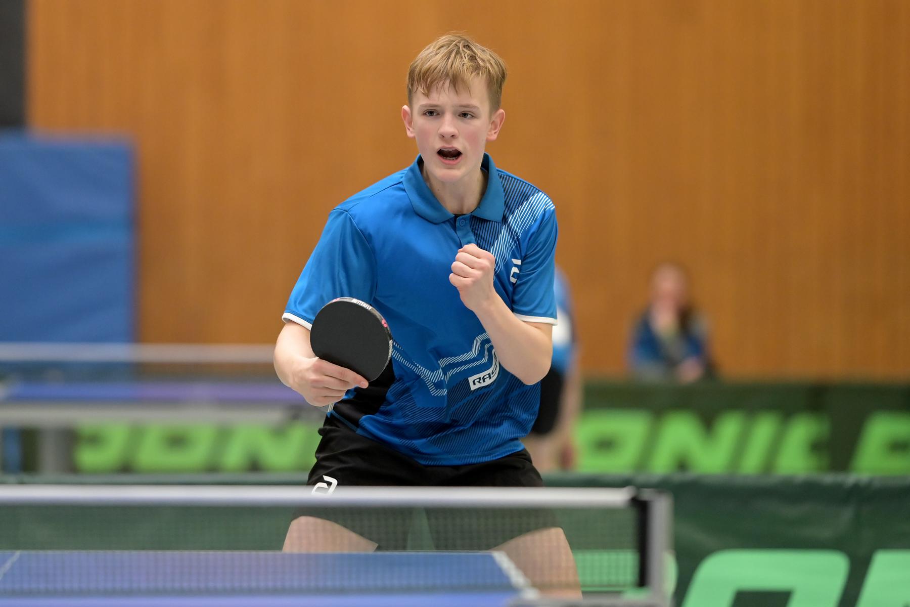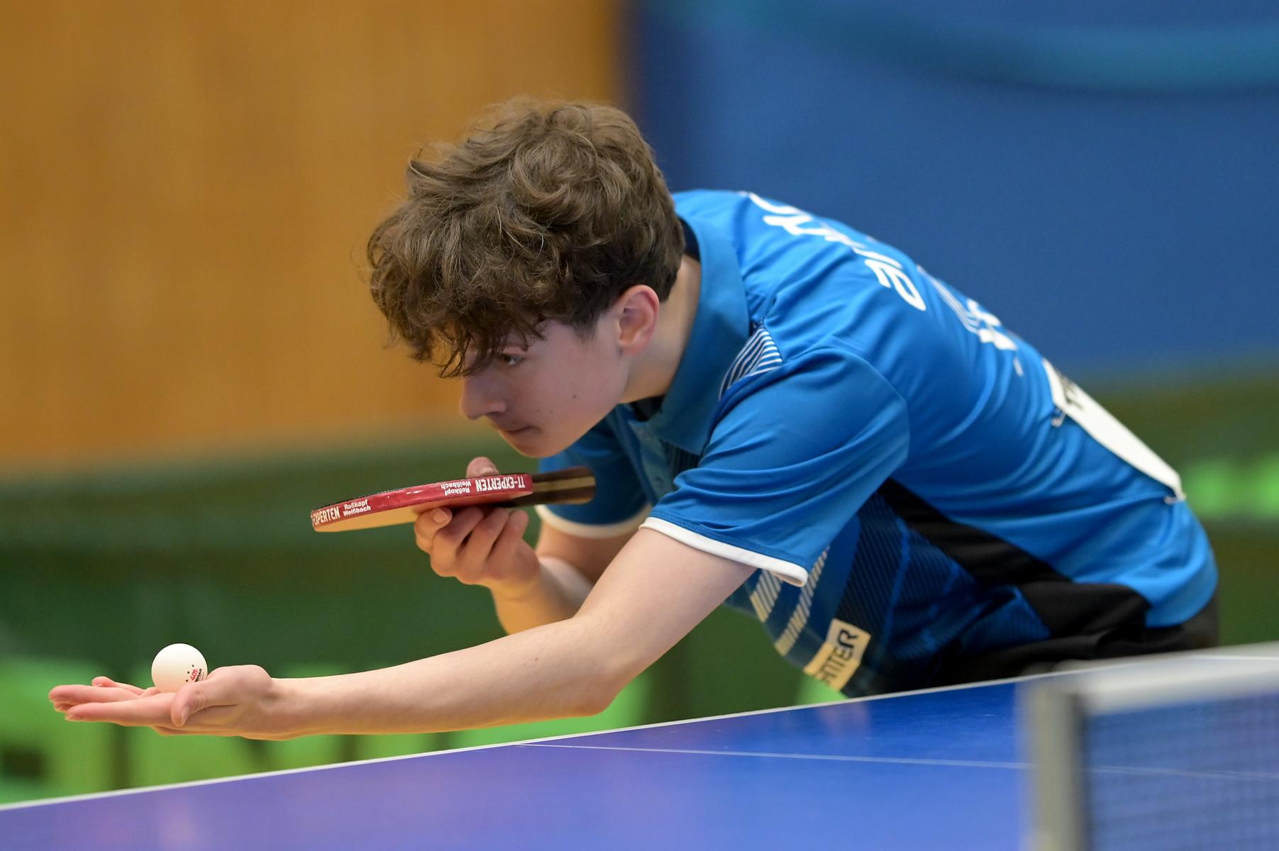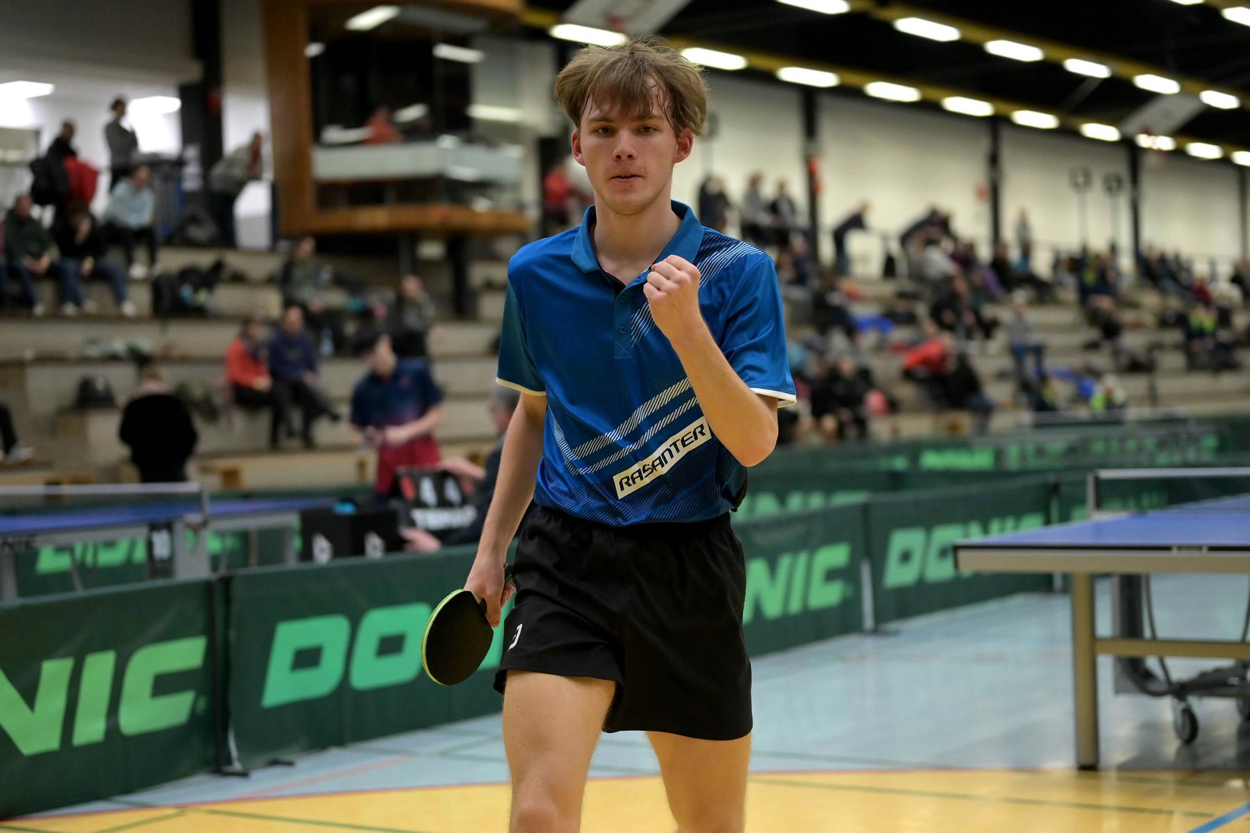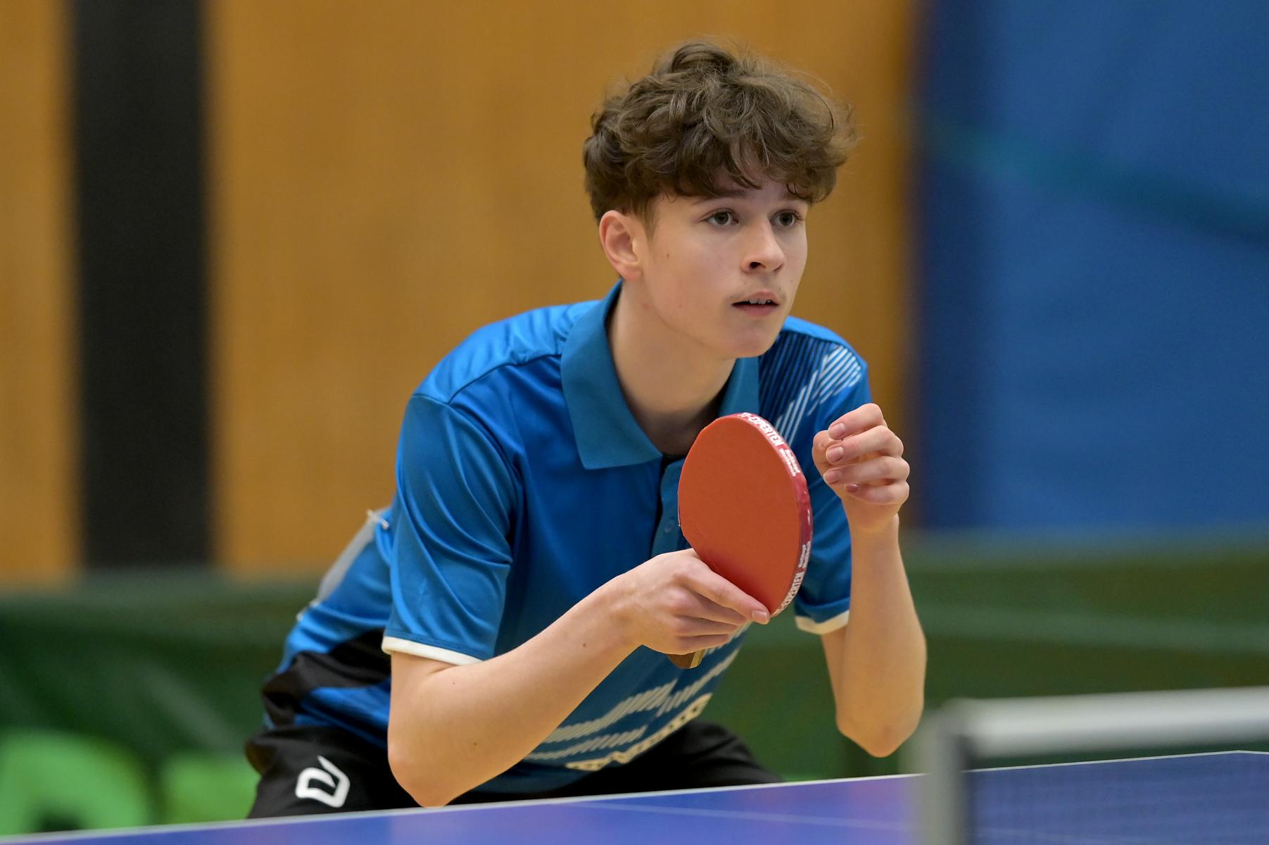 Johann Mahl (FC Schalke 04) legte ein unfassbares Wochenende hin. Nachdem er mit einer 6:1-Bilanz in den zweiten Wettkampftag ging, an dem auf Johann mit den Partien gegen Haspel, Wienke (HETTV) und Hoian (SATTV) noch drei „Brocken“ warteten, bestätigte er eindrucksvoll eine gute Form. Direkt um 9 Uhr spielte er gegen Matej Haspel und lag bereits mit 2:0-Sätzen in Rückstand, doch dann agierte Johann immer druckvoller und sicherer und konnte Matej am Ende im Entscheidungssatz mit 11:9 besiegen. Dieser Sieg gab Johann das nötige Selbstvertrauen, um auch bei den restlichen Partien erfolgreich zu sein und sich mit Platz zwei den verdienten Lohn einzusammeln.
