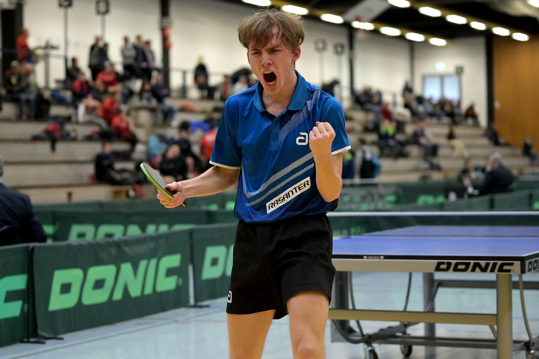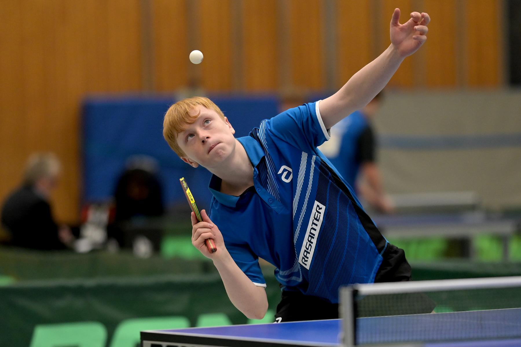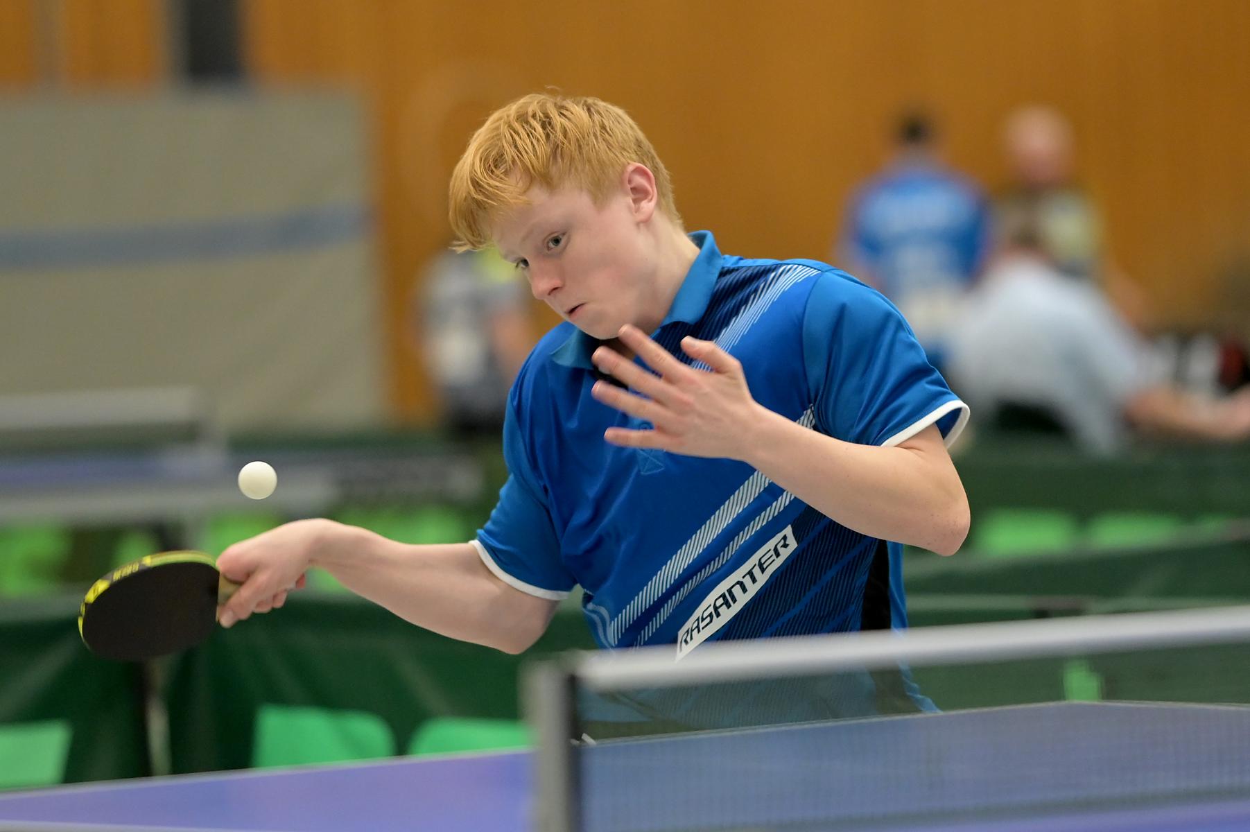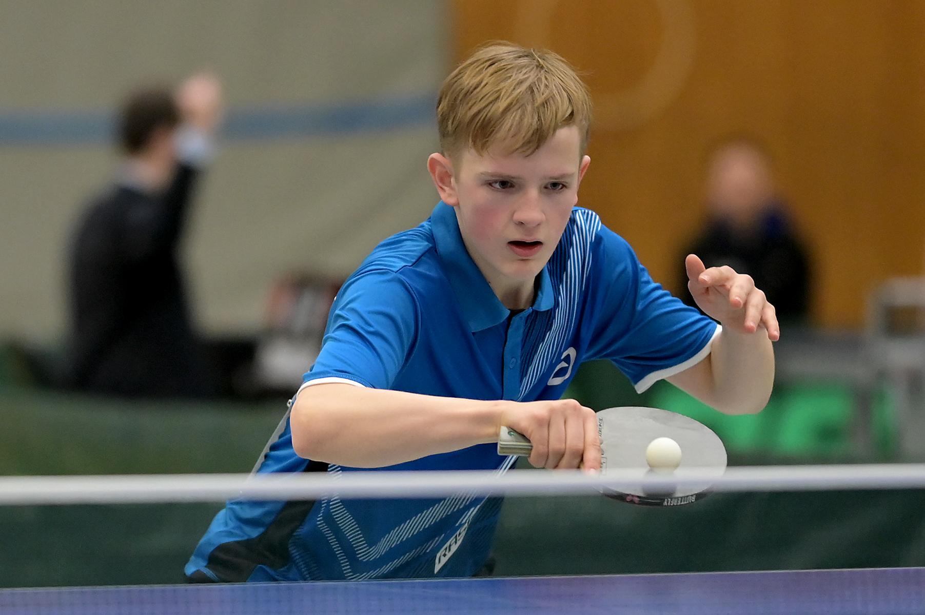 Johann Mahl (FC Schalke 04) legte ein unfassbares Wochenende hin. Nachdem er mit einer 6:1-Bilanz in den zweiten Wettkampftag ging, an dem auf Johann mit den Partien gegen Haspel, Wienke (HETTV) und Hoian (SATTV) noch drei „Brocken“ warteten, bestätigte er eindrucksvoll eine gute Form. Direkt um 9 Uhr spielte er gegen Matej Haspel und lag bereits mit 2:0-Sätzen in Rückstand, doch dann agierte Johann immer druckvoller und sicherer und konnte Matej am Ende im Entscheidungssatz mit 11:9 besiegen. Dieser Sieg gab Johann das nötige Selbstvertrauen, um auch bei den restlichen Partien erfolgreich zu sein und sich mit Platz zwei den verdienten Lohn einzusammeln.