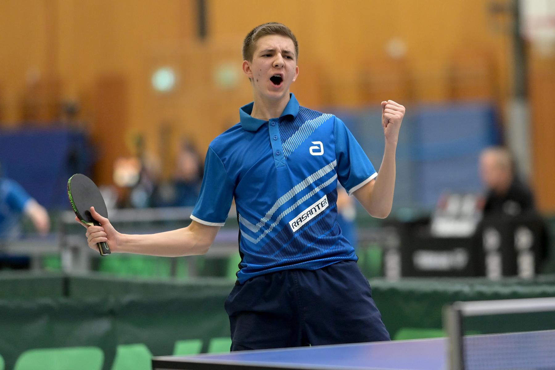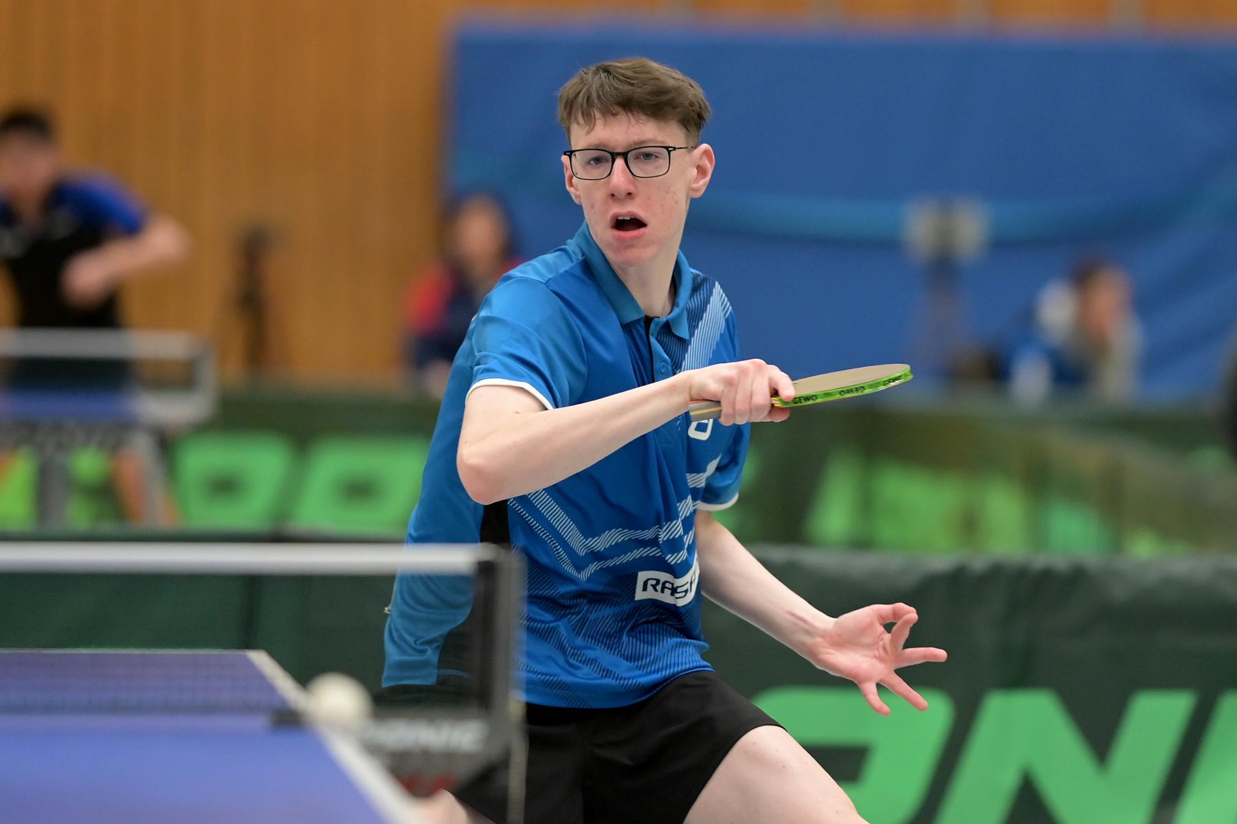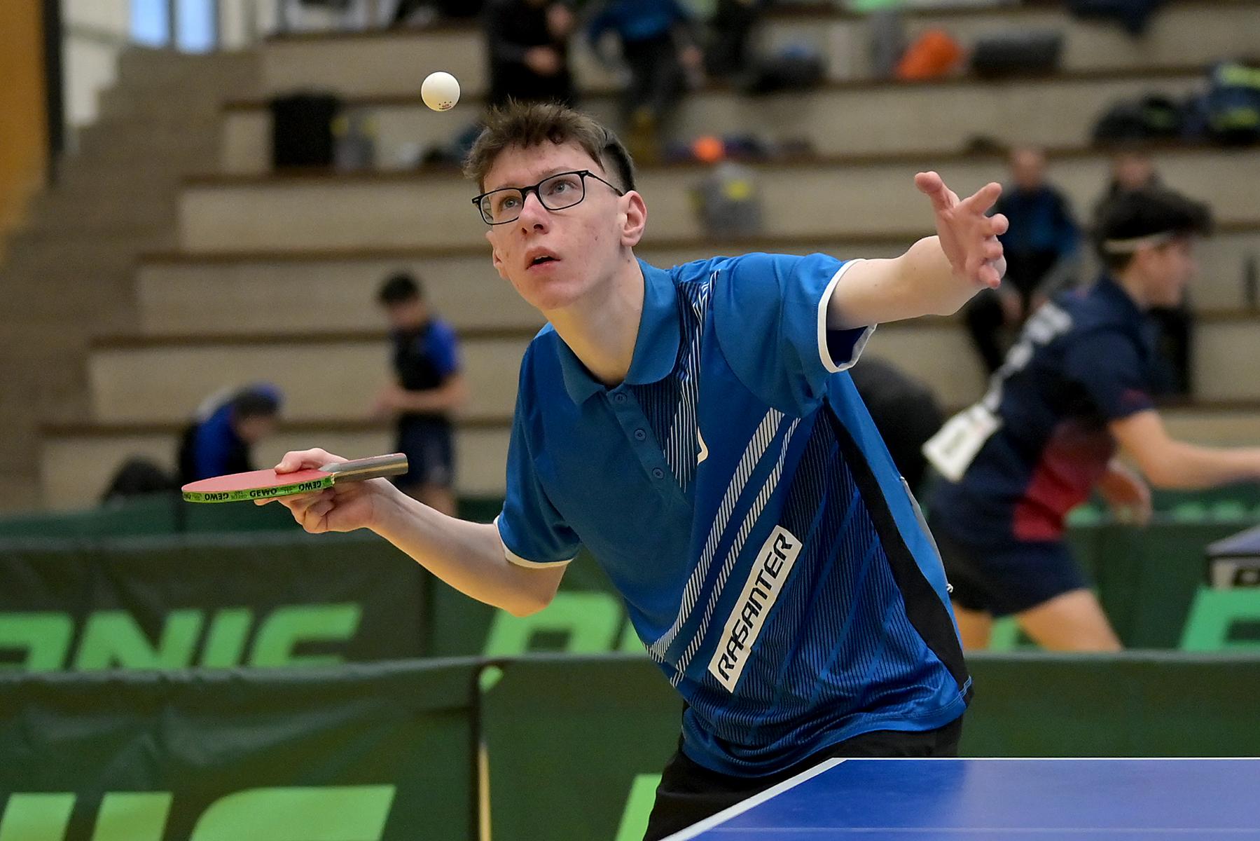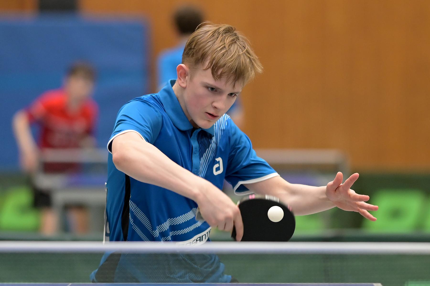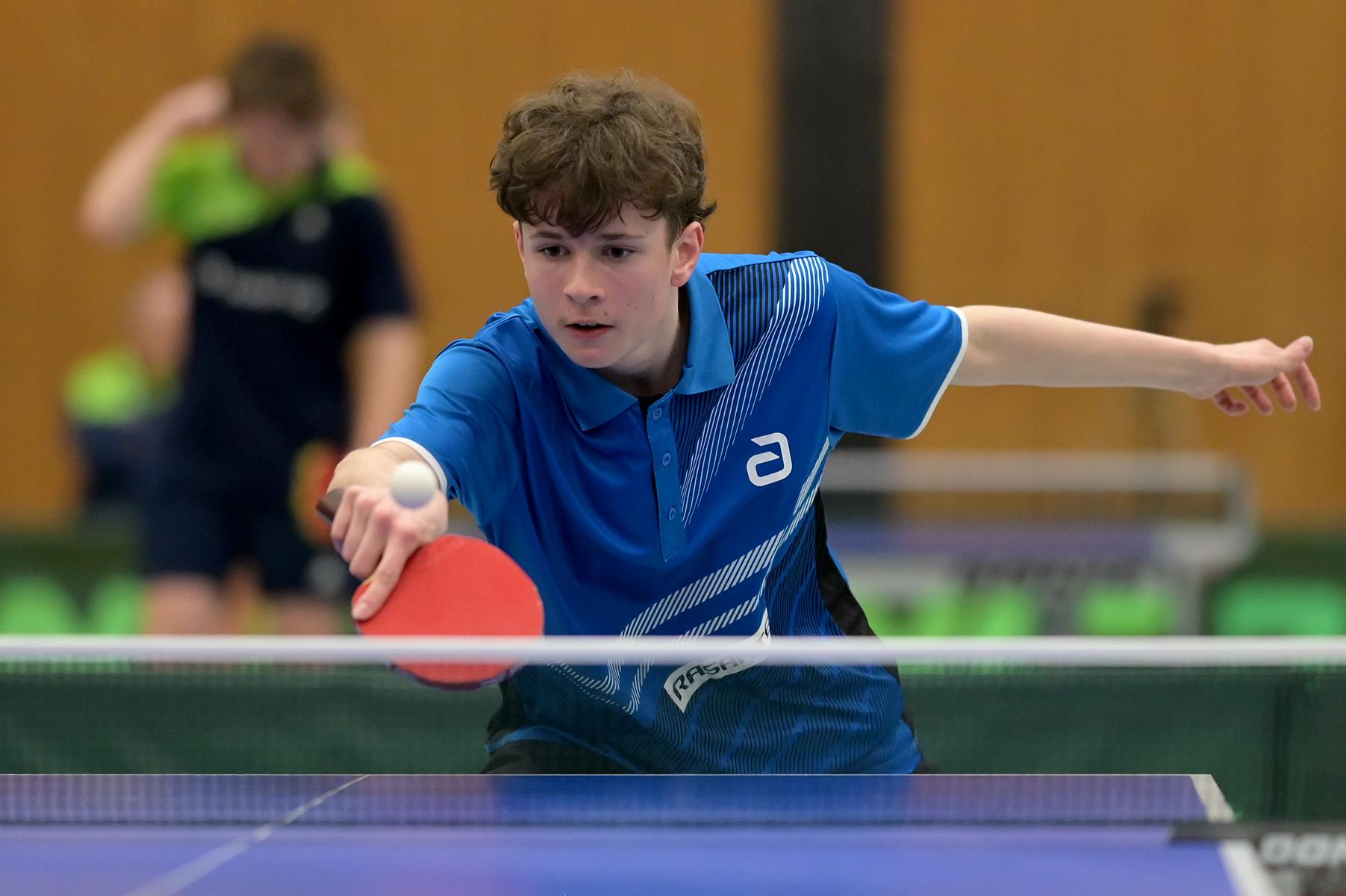 Johann Mahl (FC Schalke 04) legte ein unfassbares Wochenende hin. Nachdem er mit einer 6:1-Bilanz in den zweiten Wettkampftag ging, an dem auf Johann mit den Partien gegen Haspel, Wienke (HETTV) und Hoian (SATTV) noch drei „Brocken“ warteten, bestätigte er eindrucksvoll eine gute Form. Direkt um 9 Uhr spielte er gegen Matej Haspel und lag bereits mit 2:0-Sätzen in Rückstand, doch dann agierte Johann immer druckvoller und sicherer und konnte Matej am Ende im Entscheidungssatz mit 11:9 besiegen. Dieser Sieg gab Johann das nötige Selbstvertrauen, um auch bei den restlichen Partien erfolgreich zu sein und sich mit Platz zwei den verdienten Lohn einzusammeln.