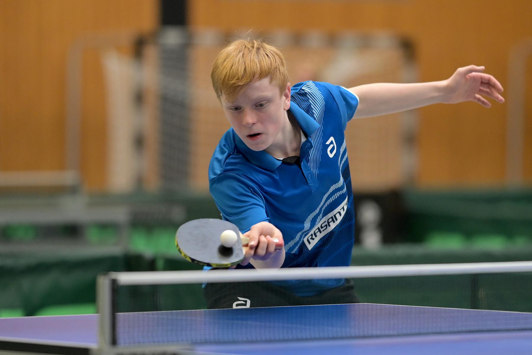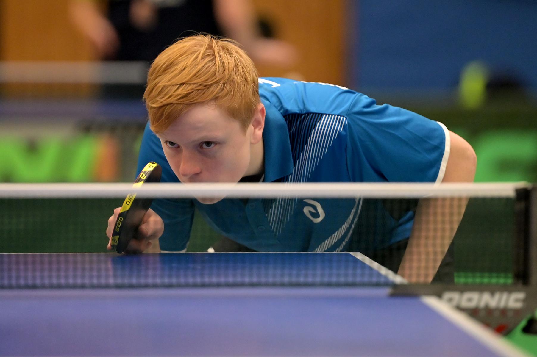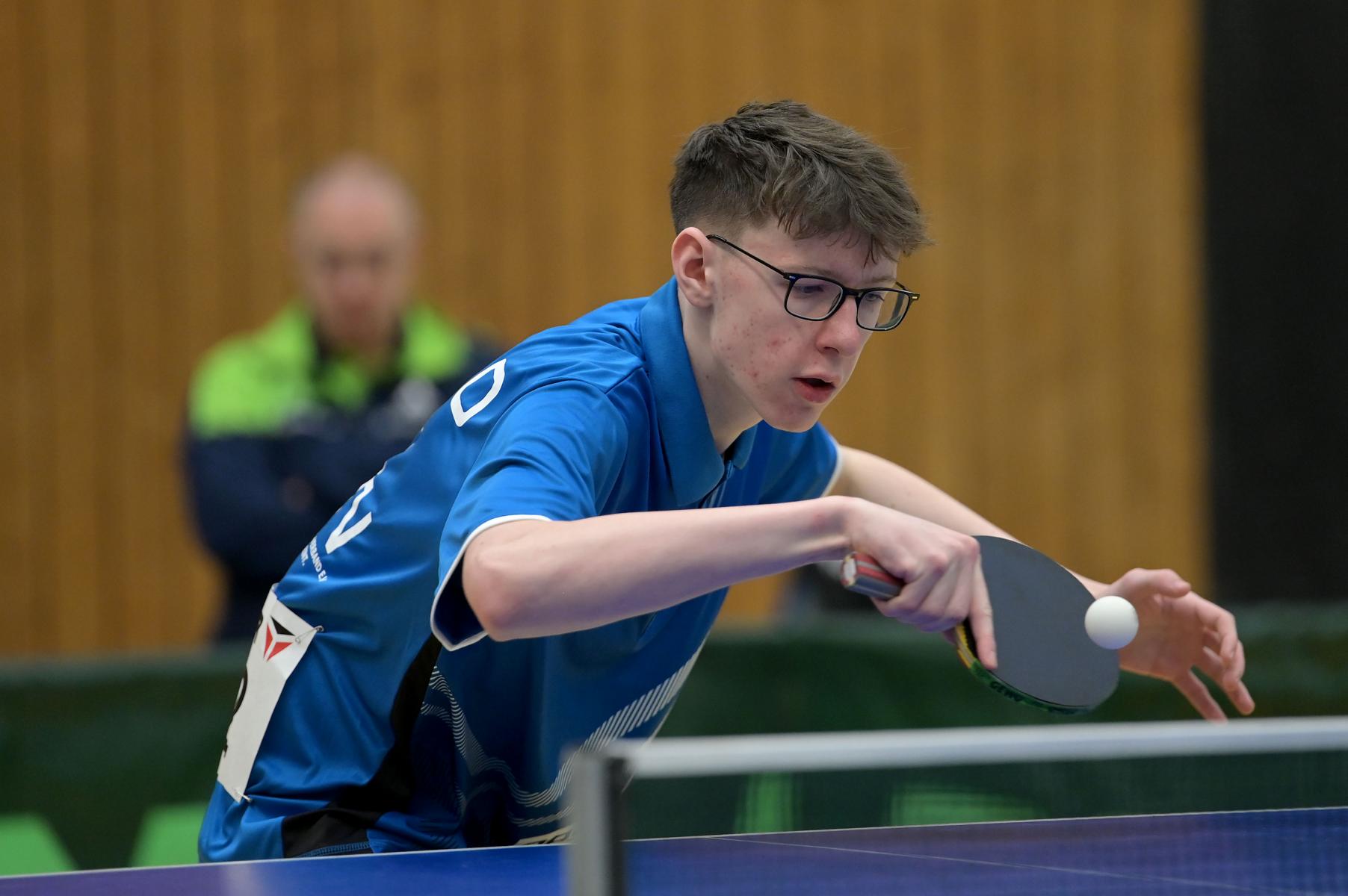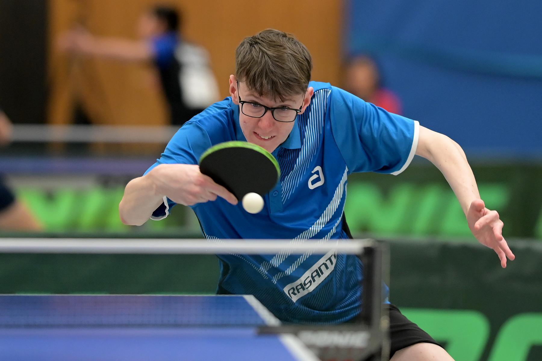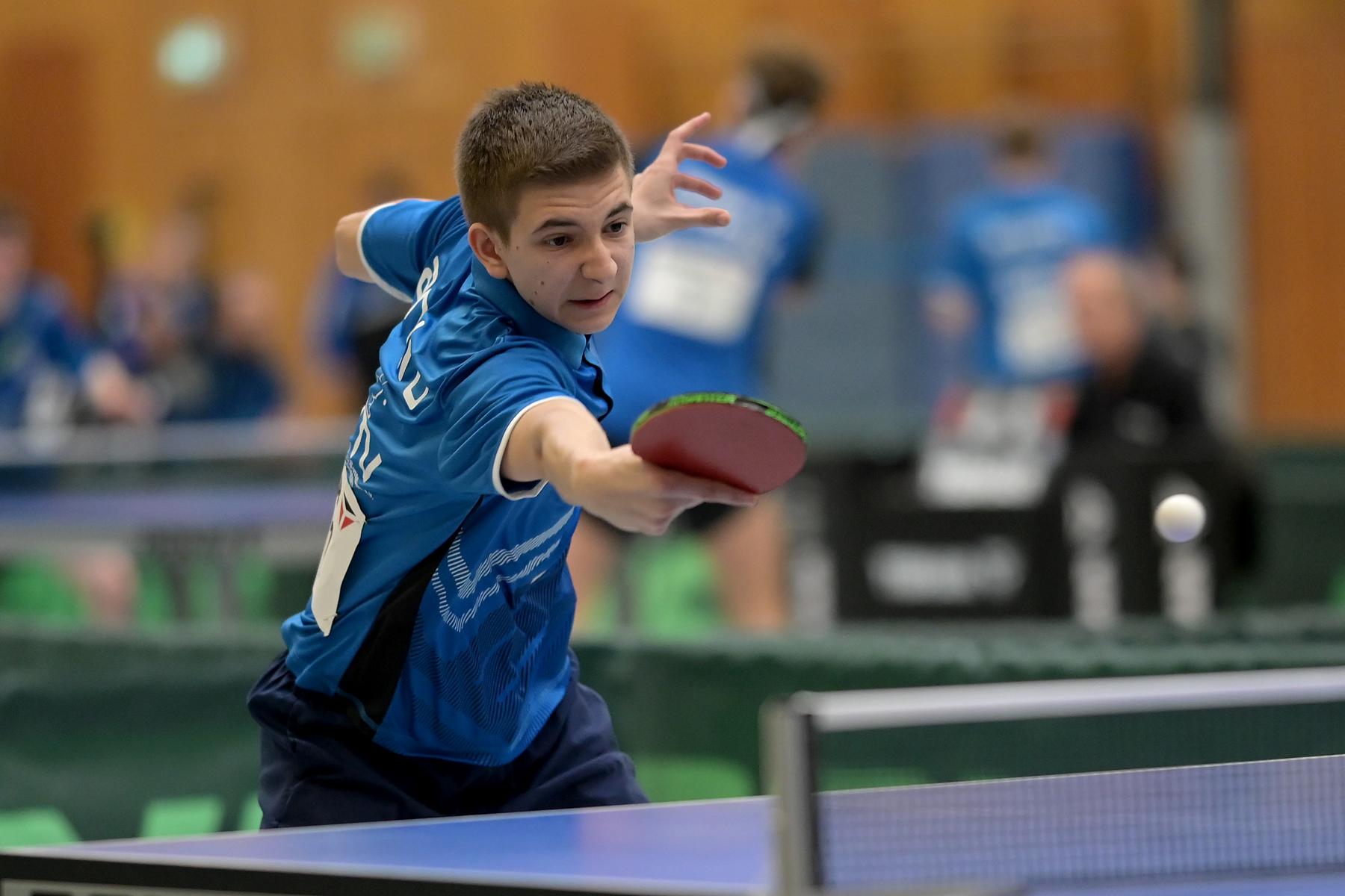 Johann Mahl (FC Schalke 04) legte ein unfassbares Wochenende hin. Nachdem er mit einer 6:1-Bilanz in den zweiten Wettkampftag ging, an dem auf Johann mit den Partien gegen Haspel, Wienke (HETTV) und Hoian (SATTV) noch drei „Brocken“ warteten, bestätigte er eindrucksvoll eine gute Form. Direkt um 9 Uhr spielte er gegen Matej Haspel und lag bereits mit 2:0-Sätzen in Rückstand, doch dann agierte Johann immer druckvoller und sicherer und konnte Matej am Ende im Entscheidungssatz mit 11:9 besiegen. Dieser Sieg gab Johann das nötige Selbstvertrauen, um auch bei den restlichen Partien erfolgreich zu sein und sich mit Platz zwei den verdienten Lohn einzusammeln.