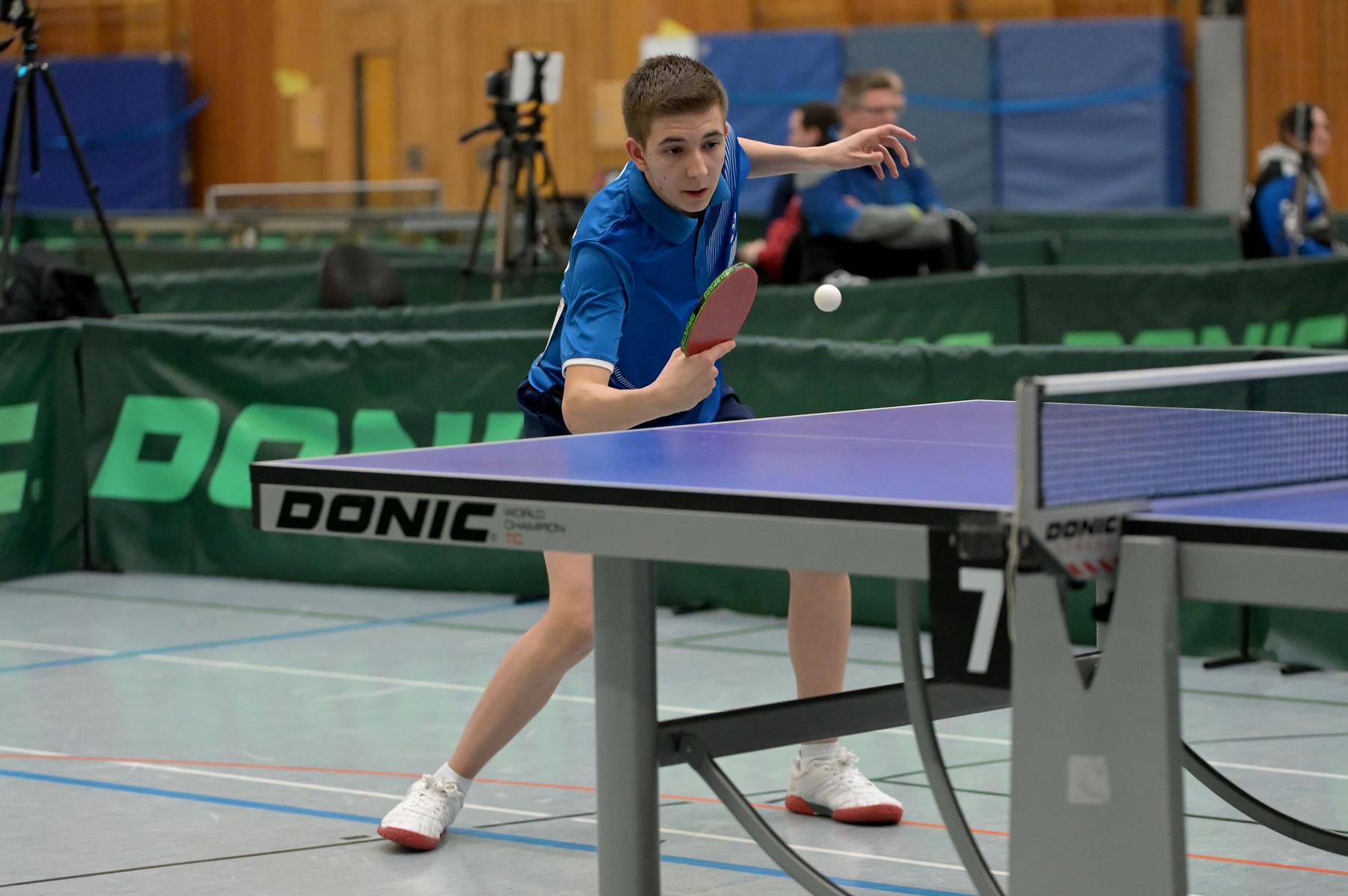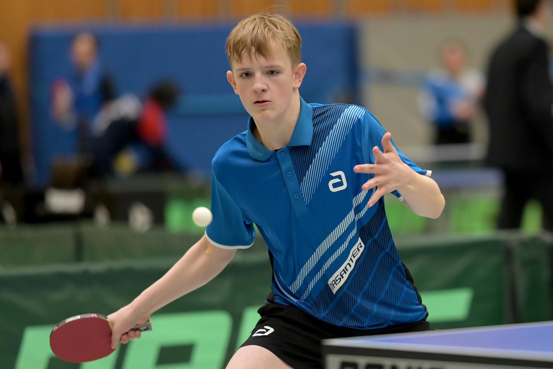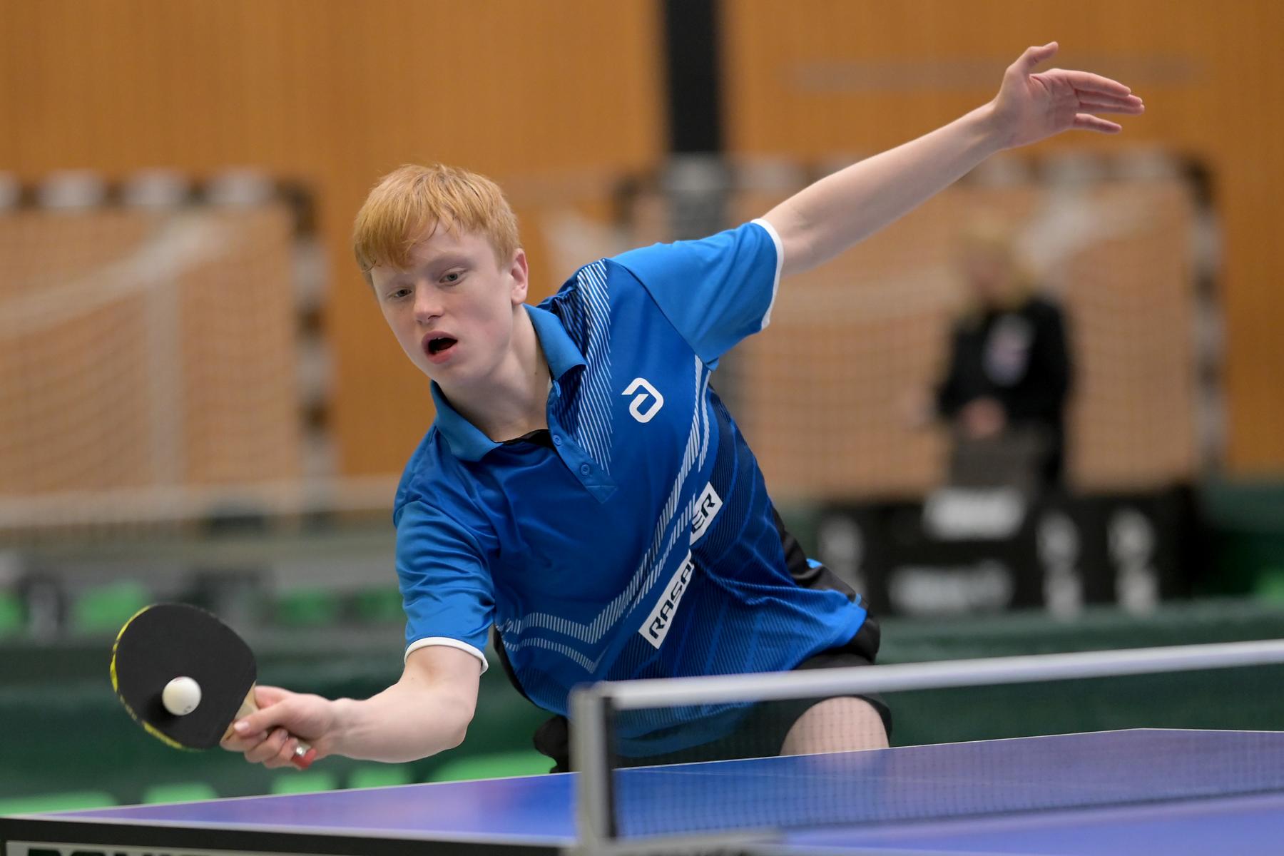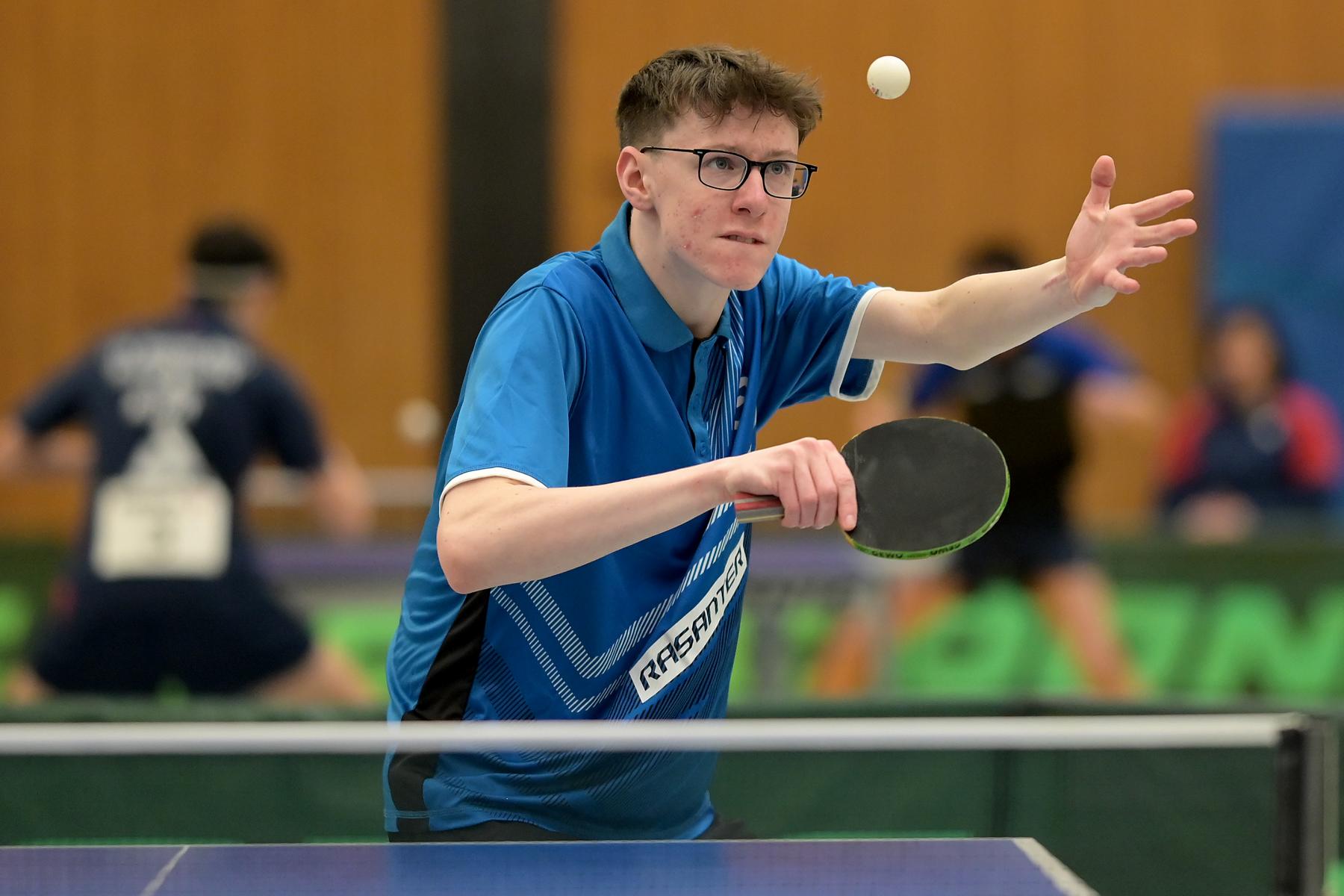 Johann Mahl (FC Schalke 04) legte ein unfassbares Wochenende hin. Nachdem er mit einer 6:1-Bilanz in den zweiten Wettkampftag ging, an dem auf Johann mit den Partien gegen Haspel, Wienke (HETTV) und Hoian (SATTV) noch drei „Brocken“ warteten, bestätigte er eindrucksvoll eine gute Form. Direkt um 9 Uhr spielte er gegen Matej Haspel und lag bereits mit 2:0-Sätzen in Rückstand, doch dann agierte Johann immer druckvoller und sicherer und konnte Matej am Ende im Entscheidungssatz mit 11:9 besiegen. Dieser Sieg gab Johann das nötige Selbstvertrauen, um auch bei den restlichen Partien erfolgreich zu sein und sich mit Platz zwei den verdienten Lohn einzusammeln.