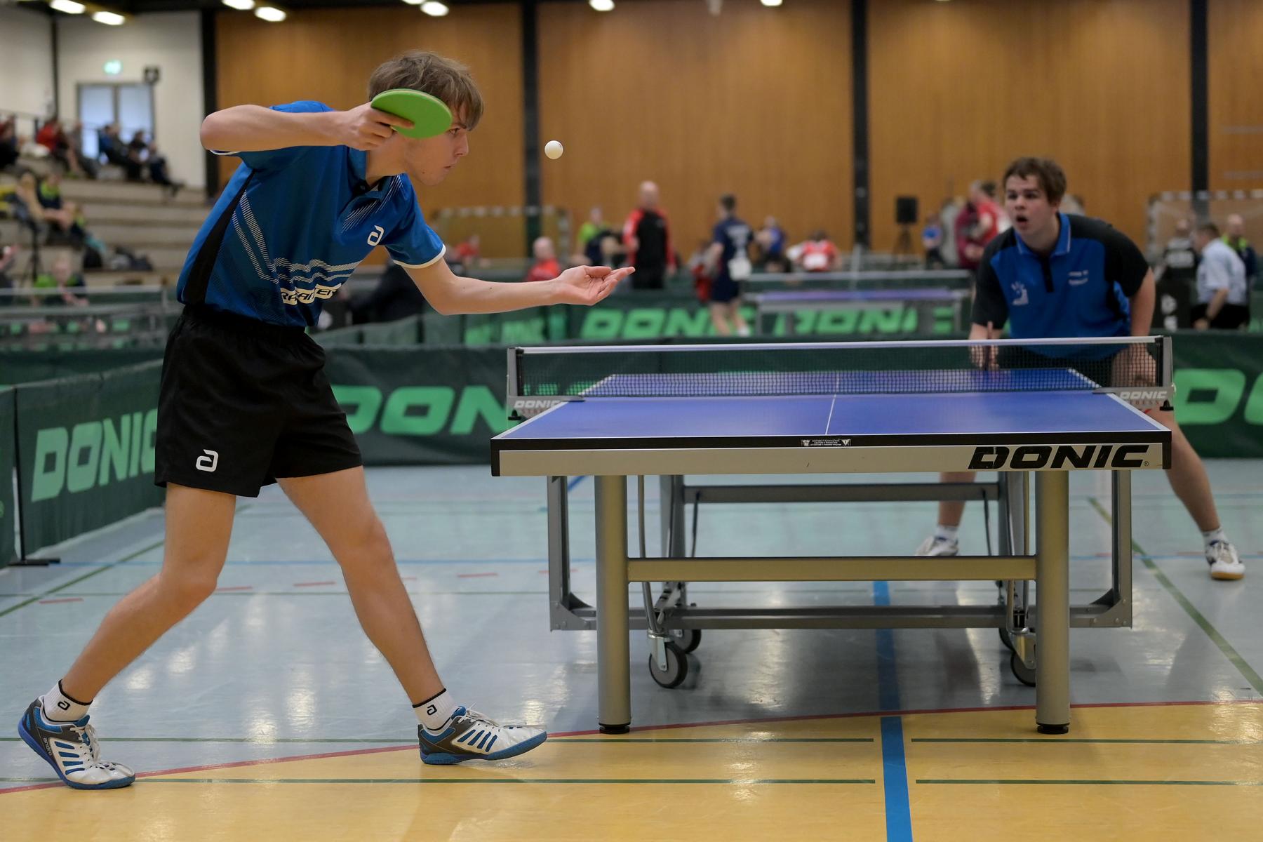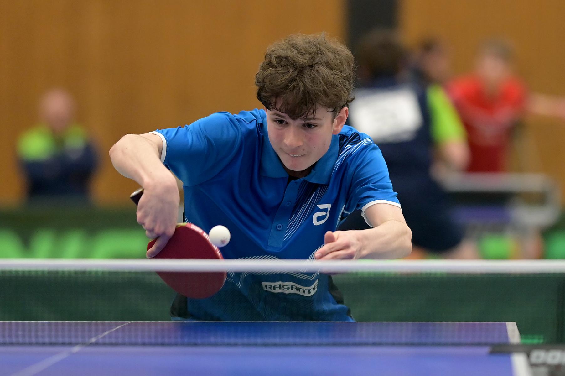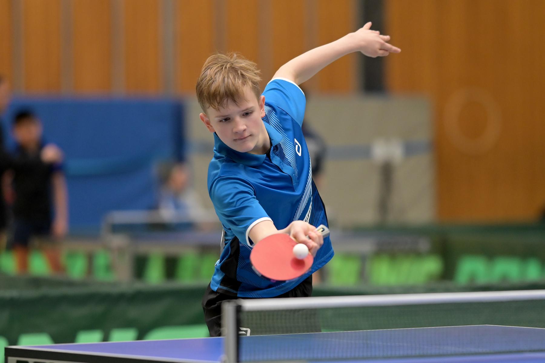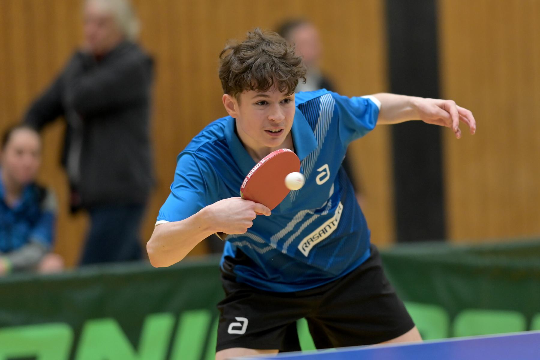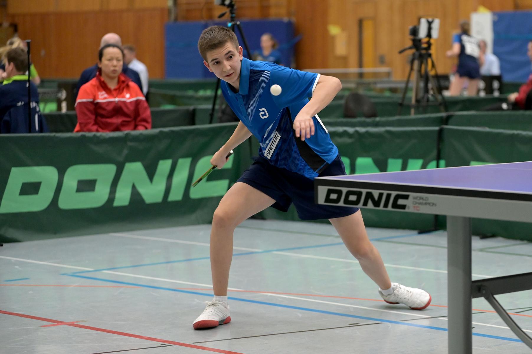Johann Mahl (FC Schalke 04) legte ein unfassbares Wochenende hin. Nachdem er mit einer 6:1-Bilanz in den zweiten Wettkampftag ging, an dem auf Johann mit den Partien gegen Haspel, Wienke (HETTV) und Hoian (SATTV) noch drei „Brocken“ warteten, bestätigte er eindrucksvoll eine gute Form. Direkt um 9 Uhr spielte er gegen Matej Haspel und lag bereits mit 2:0-Sätzen in Rückstand, doch dann agierte Johann immer druckvoller und sicherer und konnte Matej am Ende im Entscheidungssatz mit 11:9 besiegen. Dieser Sieg gab Johann das nötige Selbstvertrauen, um auch bei den restlichen Partien erfolgreich zu sein und sich mit Platz zwei den verdienten Lohn einzusammeln.