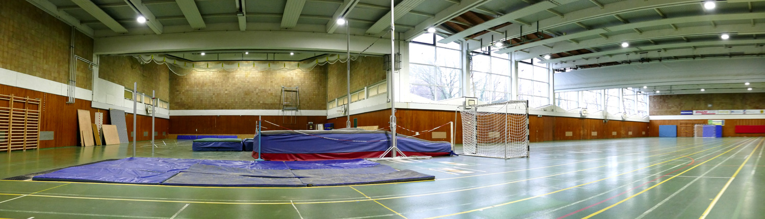 Neben einer Sporthalle für Ballsportarten und leichtathletische Disziplinen ( 60m-Sprint, Weit-, Hoch- und Stabhochsprung, Wurfanlage) werden eine Budohalle für Judo, Aikido u.a. und eine Mehrzweckhalle z.B. für gesundheitsorientierten Sport, Aerobic und Stepaerobic zur Verfügung.